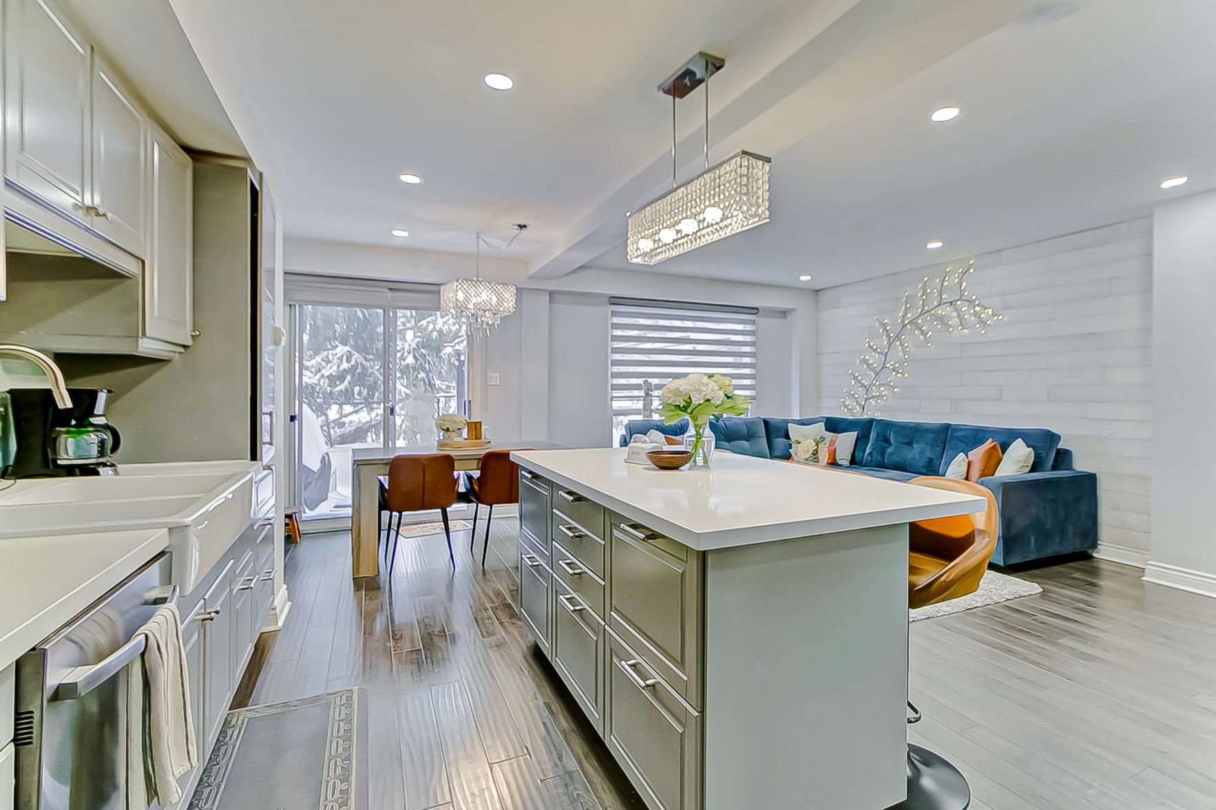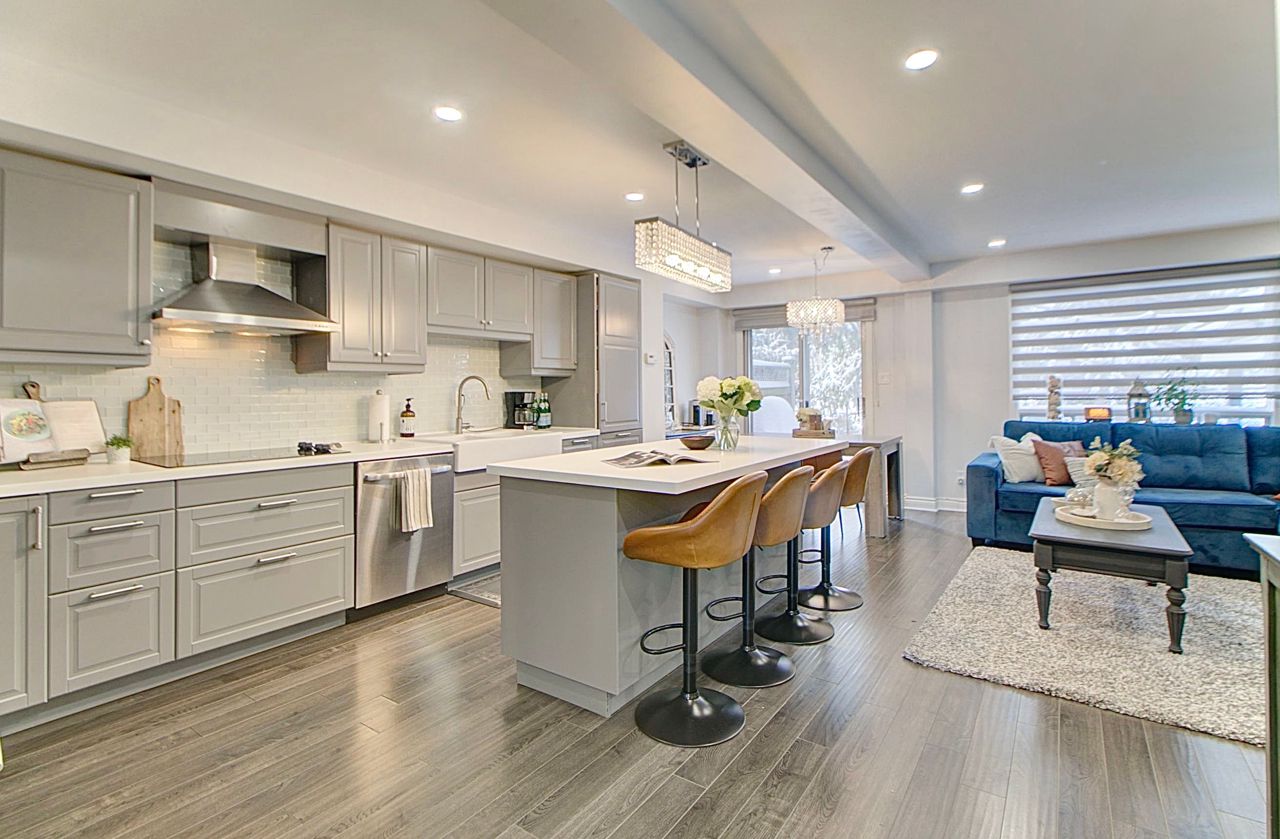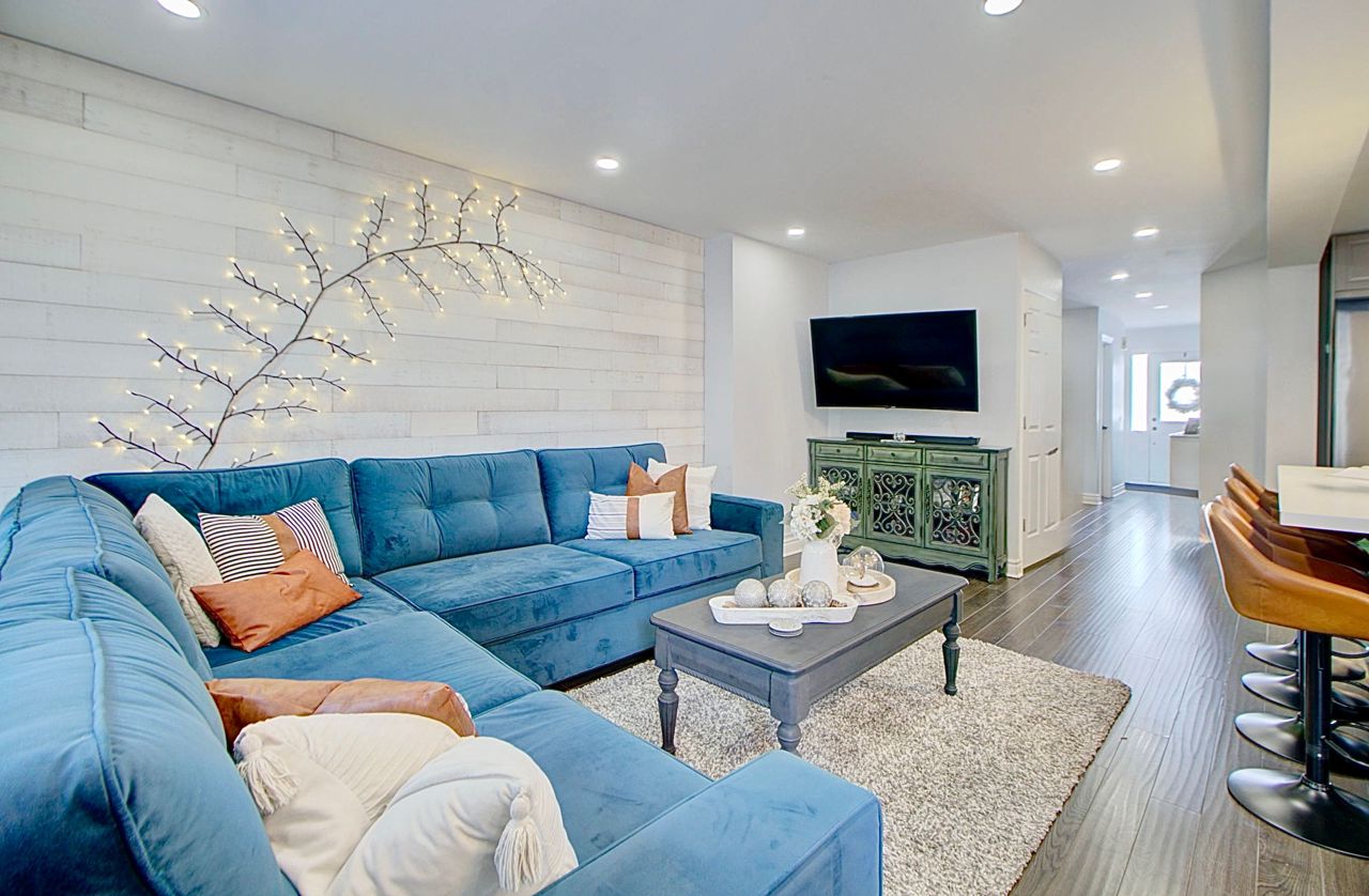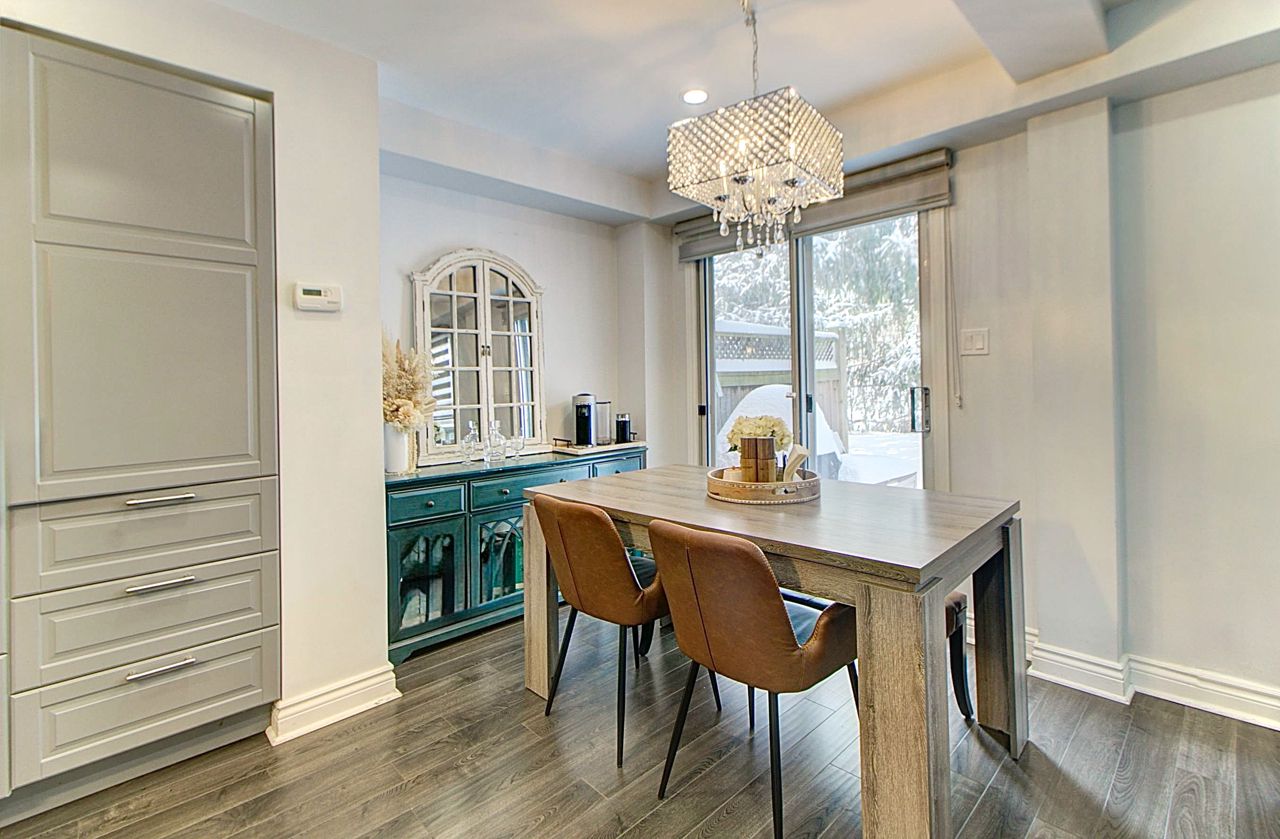 Nestled in the prestigious River Oaks community, this fully renovated end-unit townhome offers the perfect balance of modern elegance and serene living. Backing onto lush trails and greenspace, this home provides a tranquil retreat while being close to everything you need.Step inside to a sun-filled, open-concept design thats ideal for both everyday living and entertaining. The heart of the home is the beautifully appointed kitchen, featuring a large island with quartz countertops, high-end stainless steel appliances, and ample cupboard space. Potlights and neutral finishes throughout create a warm, inviting atmosphere, while modern window coverings add a sleek touch.The private backyard, surrounded by mature trees, offers a peaceful escape for relaxation or outdoor gatherings. Immaculate from top to bottom, this home is entirely carpet-free and meticulously maintained, making it truly move-in ready. This is the perfect opportunity for those looking to enjoy a vibrant community with the convenience of nearby parks, top-rated schools, trails, and amenities. Experience the charm of River Oaks and make this exceptional home yours!