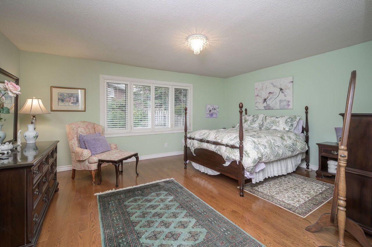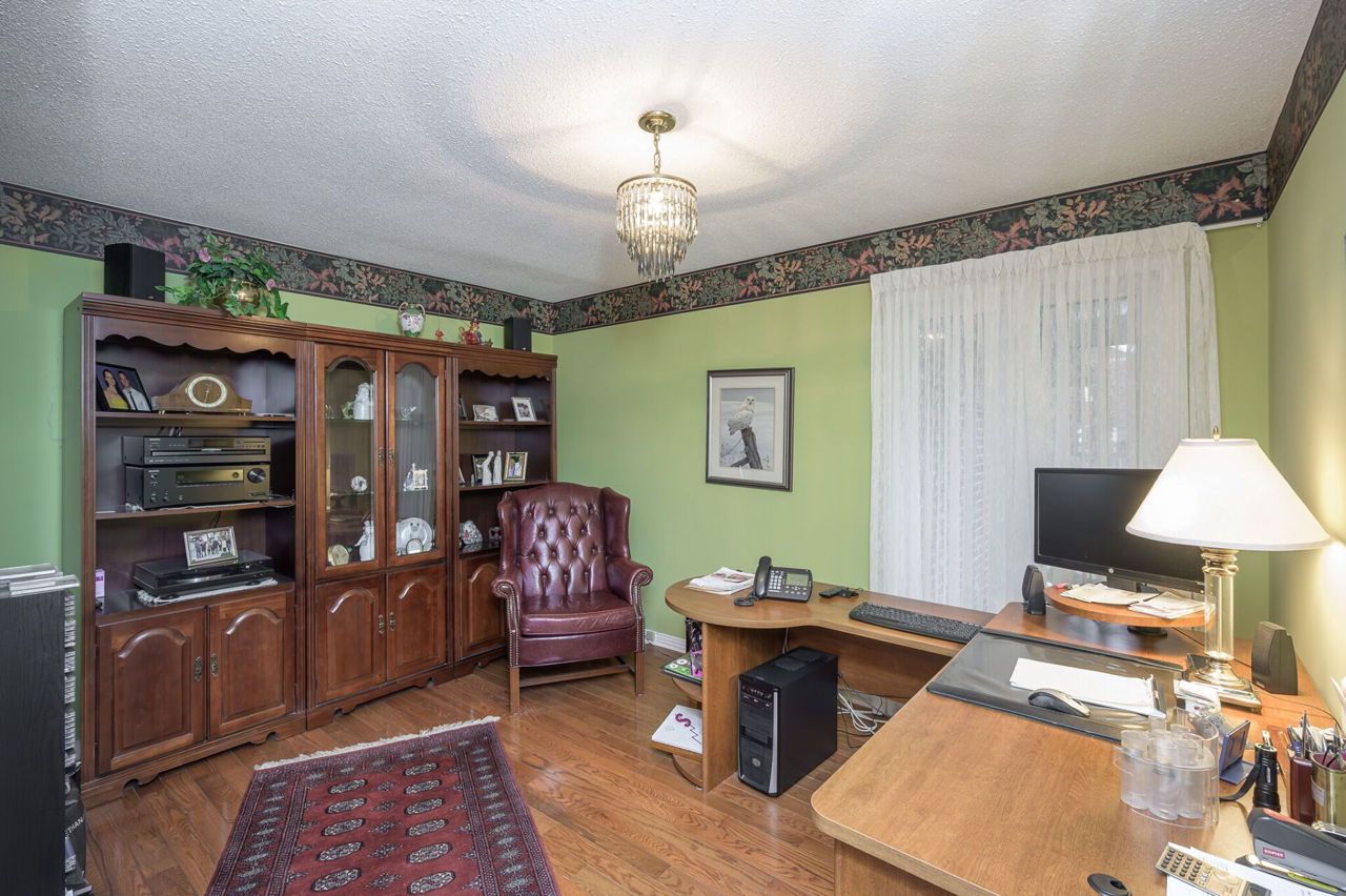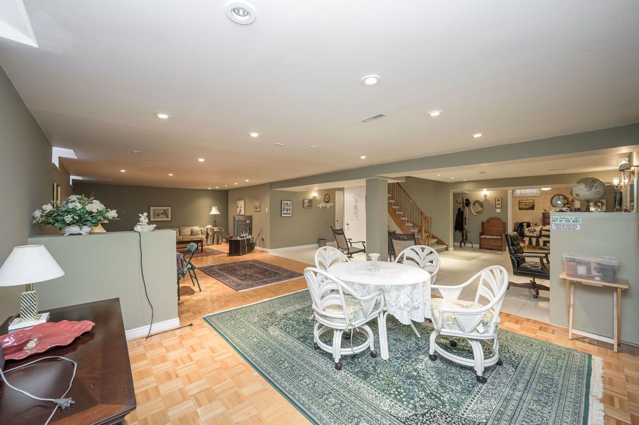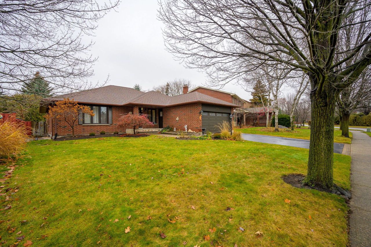 It’s not often that a bungalow becomes available in this sought-after neighbourhood, especially one of this size - 1983 sq ft above ground + fully finished basement. Brick facade with double garage. Dramatic floor plan - vaulted ceiling in the FR & Breakfast area. Spacious L-shaped LR & DR with 2 large picture windows. FR features a brick fireplace with cedar accent stretching up to the vaulted ceiling. Patio doors to garden. Kitchen/Breakfast Area with vaulted ceiling & patio doors. Main floor Den well located near the front entrance, perfect as a home office. Generous Principle Bedroom adjoins the 4-piece Bathroom with air tub and separate shower. Spacious second BR. Main floor Laundry Room. The open winding staircase leads to the fully finished basement which includes a huge RR with gas fireplace, 3rd BR with parquet flooring & 4-piece Bathroom with separate shower & Jacuzzi tub. HW in the main level hallways & BRs. Furnace/AC 2021. Roof, windows replaced. Inground sprinkler.Stainless steel appls: stove, stove hood, fridge; white dishwasher, jenn air grill, washer, dryer, central vac, AGDO + 2 remotes