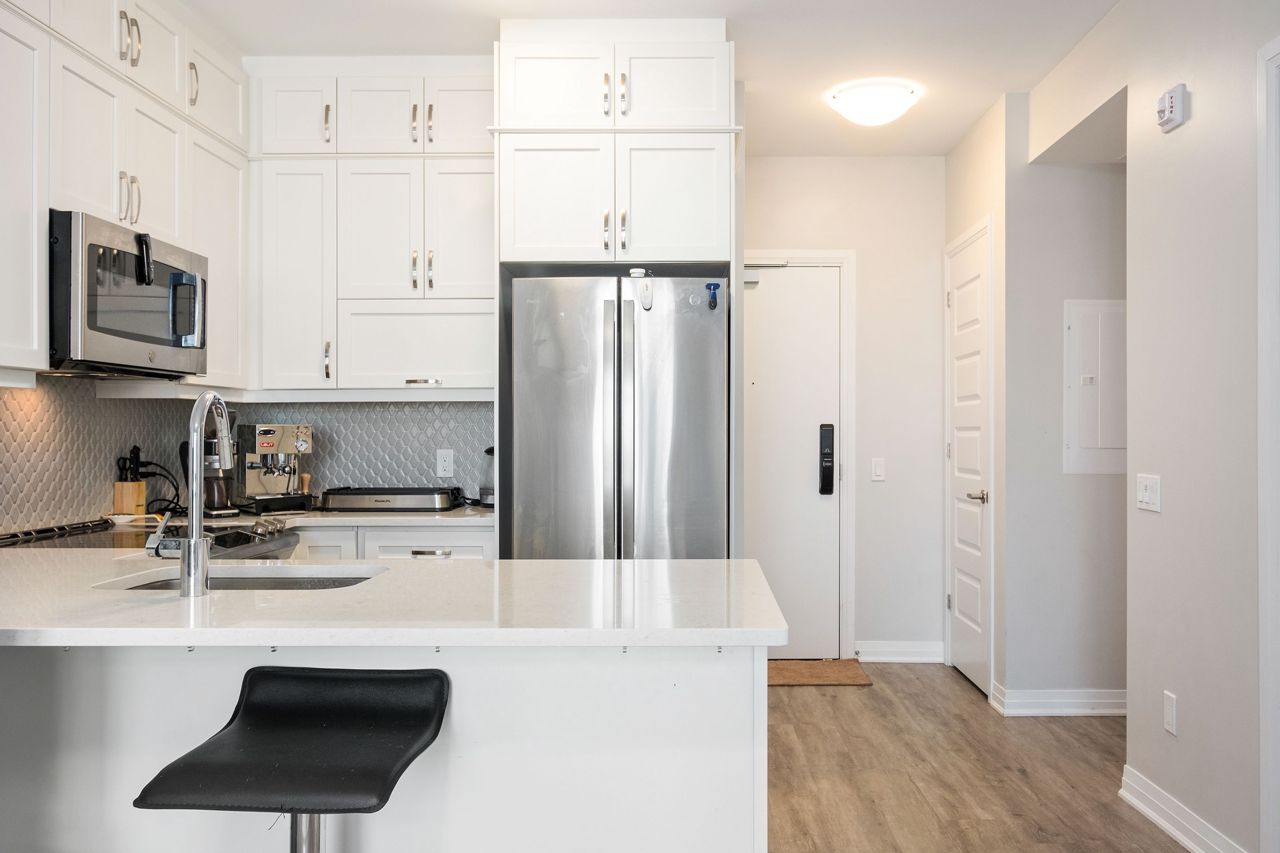 23k in Upgrades!!! Step into modern living at its best with this 1-bedroom + Den condo that's a tech lover's dream. It's packed with smart technology to make your life easier. This condo is practically brand new, just a year old, and it's filled with stylish features like quartz countertops, sleek laminate flooring, and stainless steel appliances that make it easy to maintain. You can also unwind on the spacious rooftop terrace and enjoy stunning views of Oakville. It's the perfect place to relax. This upgraded smart condo offers a convenient and connected lifestyle right in the heart of Oakville. You're within walking distance of major grocery stores, great restaurants, banks, and more. Minutes from 407,QEW and 403. Don't miss out on the chance to live in this modern and convenient smart condo in the town of Oakville.