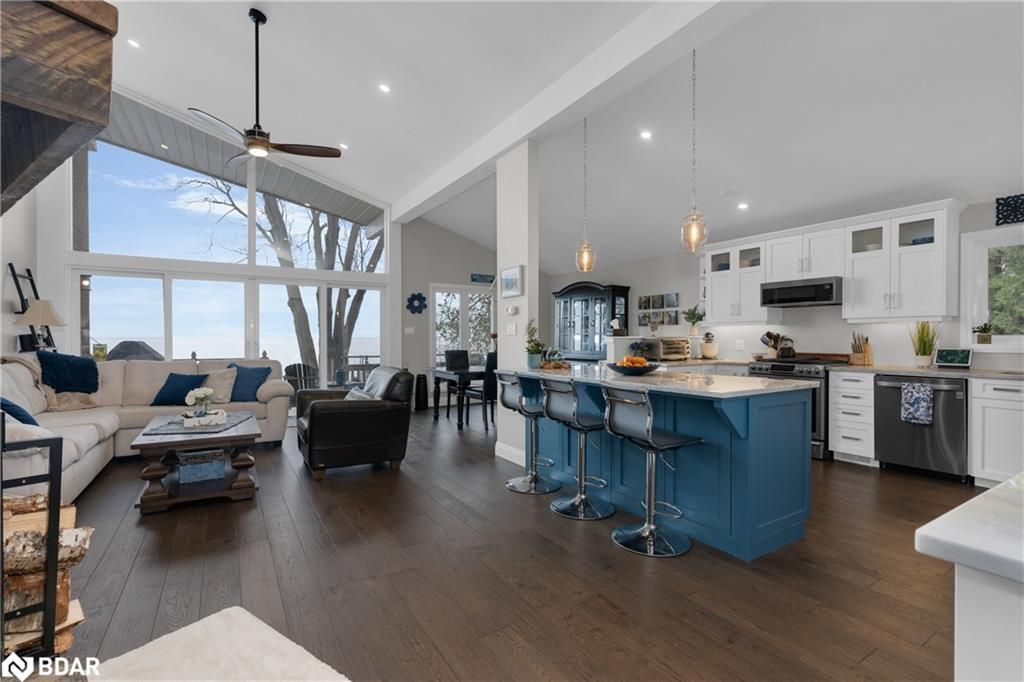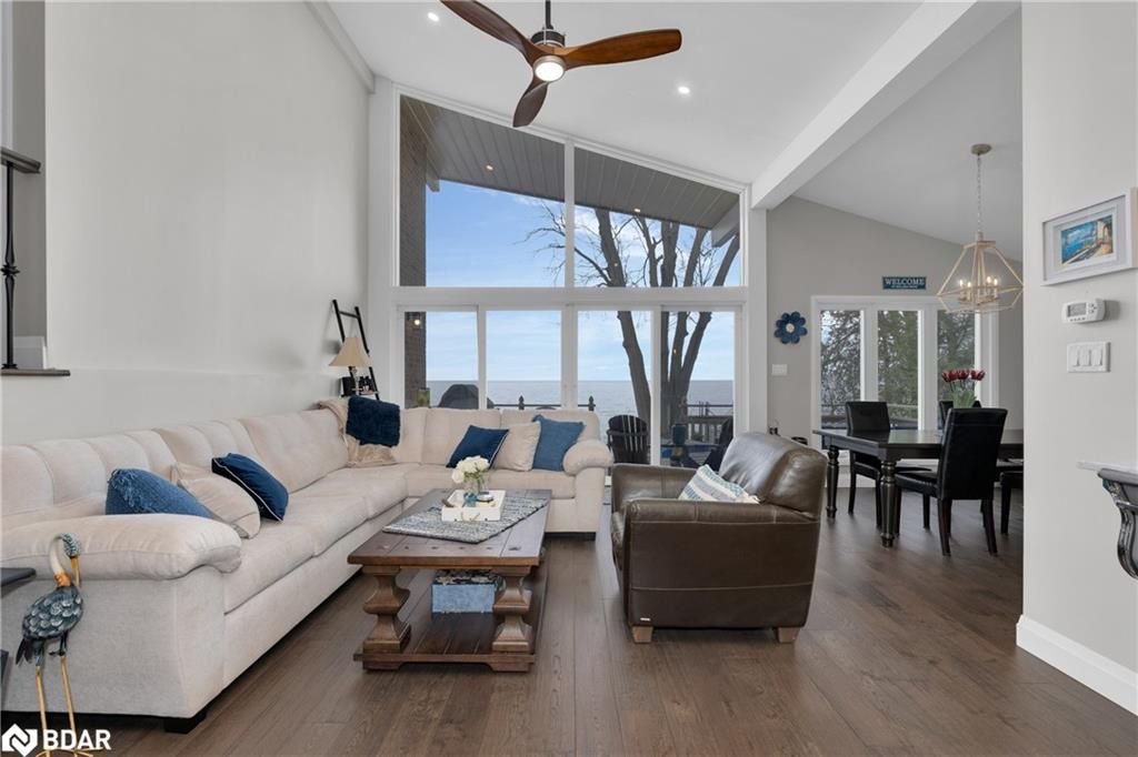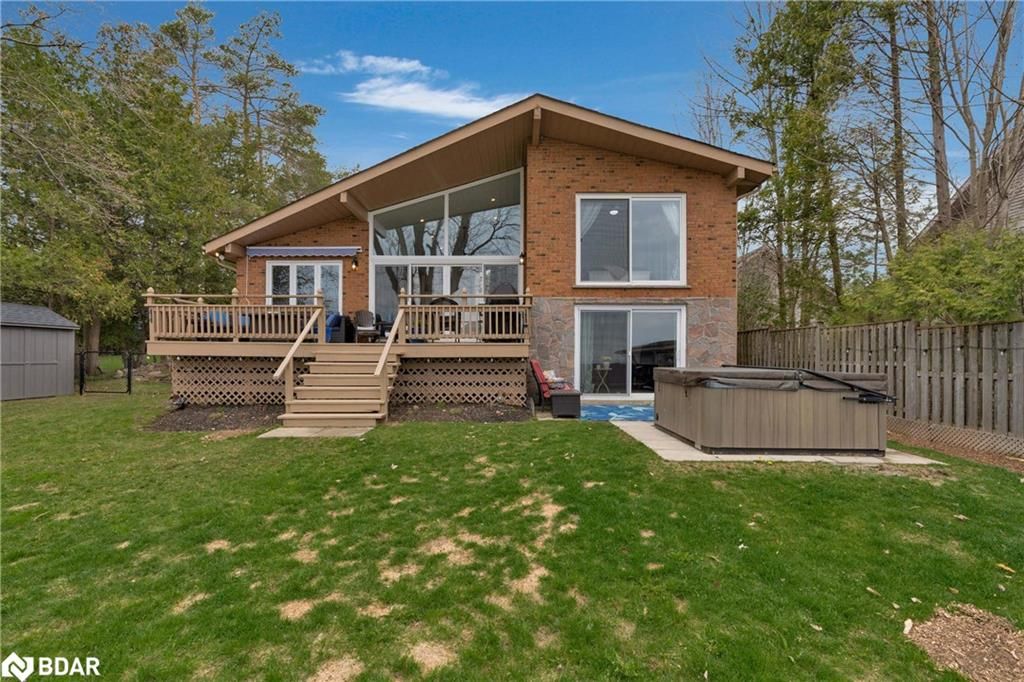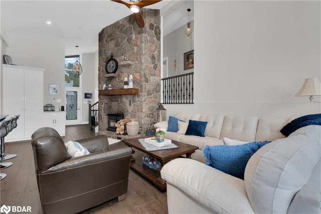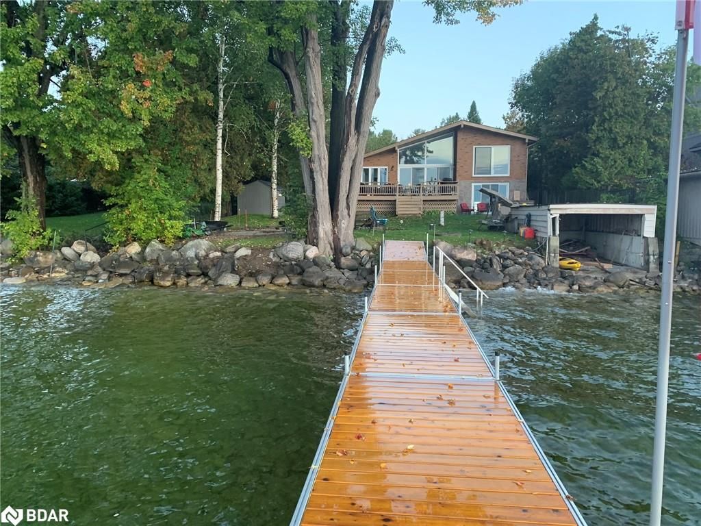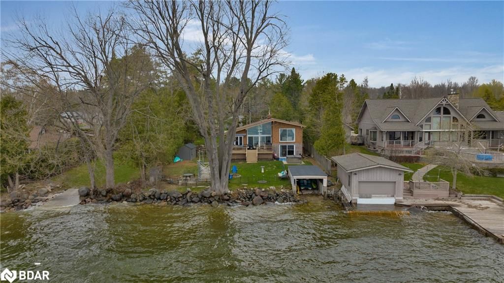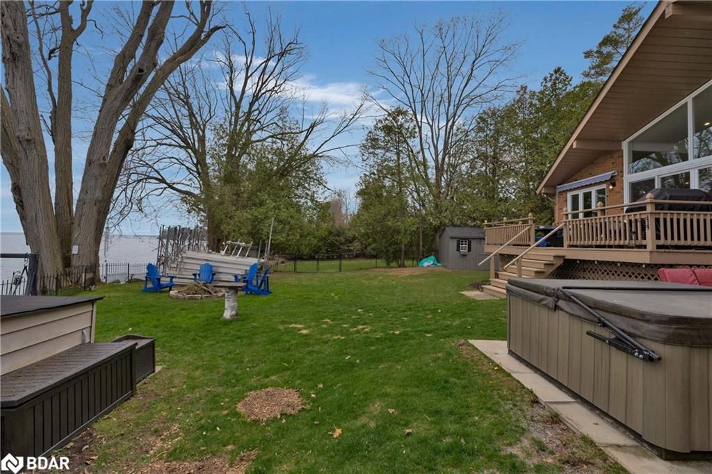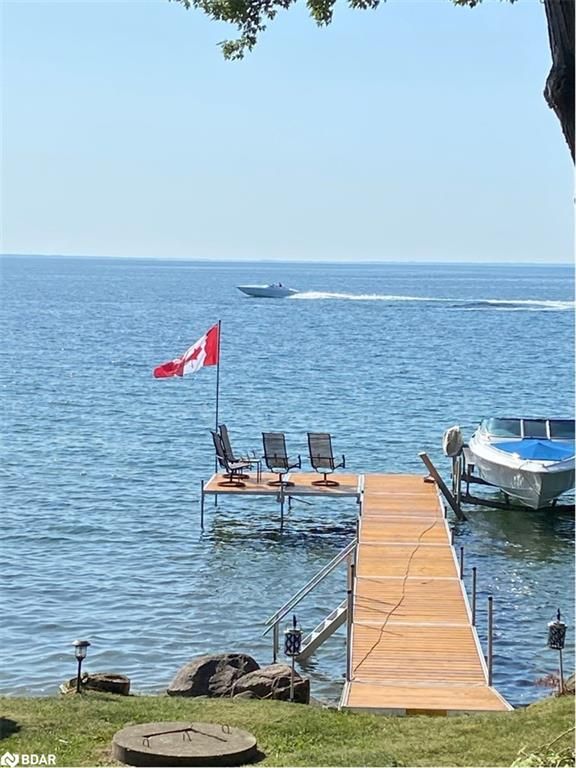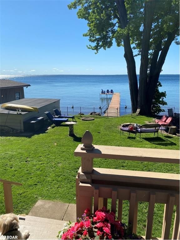 Stunning waterfront property with 75.31 feet of shoreline on beautiful Lake Simcoe. Enjoy breathtaking views from every angle of this 3+1 bedroom sidesplit. This home boasts many recent upgrades including ¾ inch engineered hardwood flooring throughout the entire home, new water purification system, new doors, hardware, handles and custom baseboard. Step inside to a newly renovated entry with a new closet, flooring and entry door. The custom kitchen features double pantry, appliance pullout drawers, island with lighting, quartzite countertops, new fridge, stove, dishwasher & built-in microwave, farmhouse sink with hands-free faucet, and more. Enjoy pot lights throughout, a new wood fireplace insert (2023) in a floor-to-ceiling stone fireplace, and all new light fixtures (2020). The laundry room is equally impressive with new closet, custom cabinetry, high-end faucet, quartzite countertop, and new stackable washer and dryer with steam option. The master bedroom boasts double closets with closet organizer and inside lighting, a new patio door, and ceiling fan. The ensuite bathroom features a professionally installed heated floor, walk-in shower with spa shower, new cabinets, double sink, faucets, toilet, and a lighted mirror with Bluetooth capability. The lower level features a family room with new custom cabinetry including pullout drawers, bar fridge, and quartz countertop, and new pot lights throughout. The office also features custom cabinetry and pot lights. Step outside to the exterior of this home and enjoy the new pad for the hot tub (2021), a hot tub that is about 7 years old, new gardens (2022), a new stone pathway (2021), a double driveway (2021), a new 8 x 10 garden shed (2021), a new cedar/aluminum dock with sitting area (2020), boathouse, and a boat lift added (2021). This home comes complete with a detached 1 car garage, a large deck, and a patio with a hot tub.