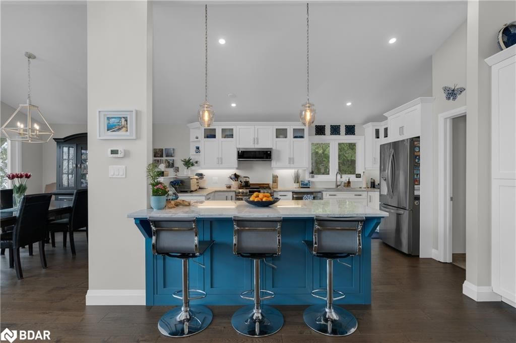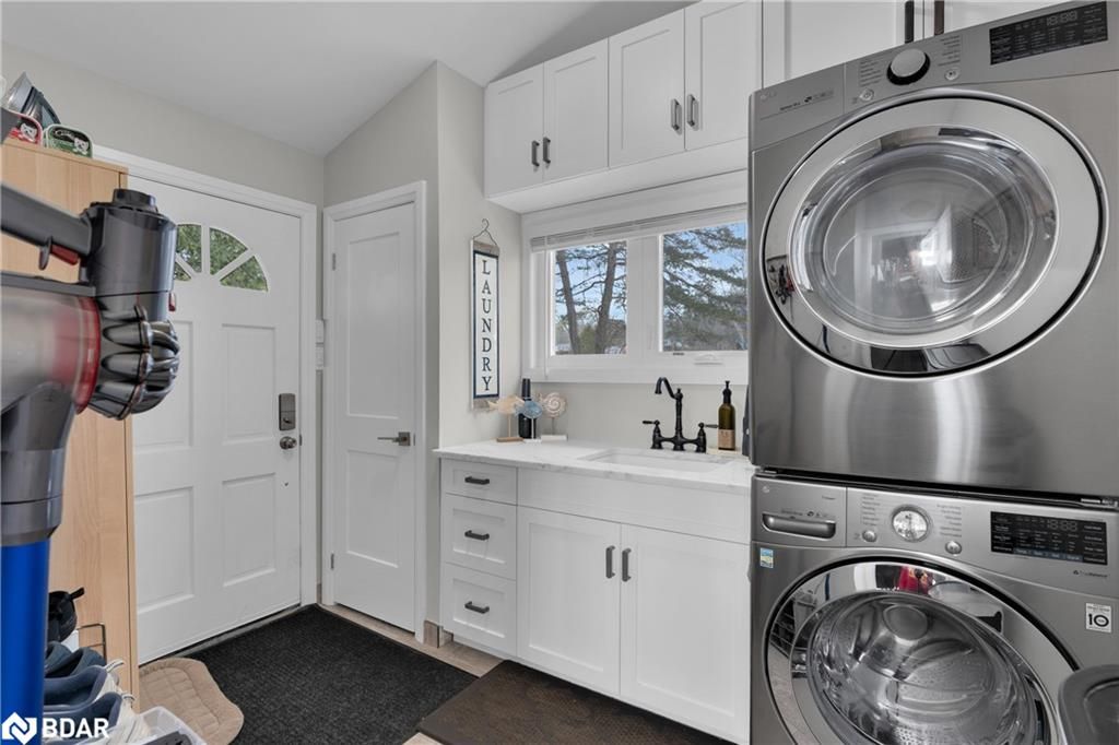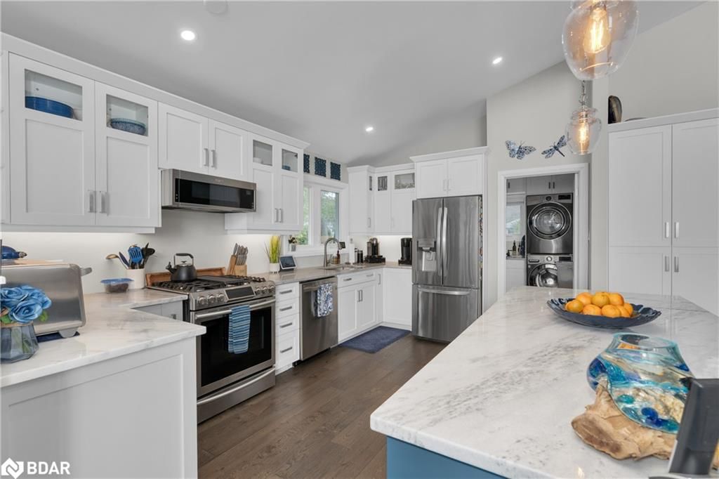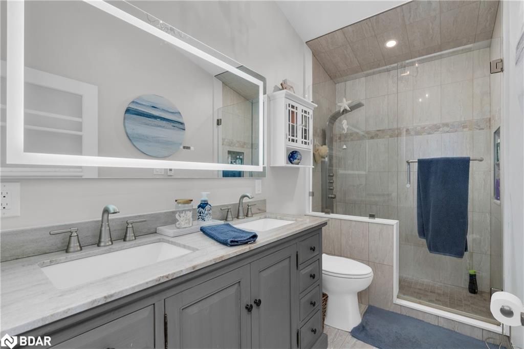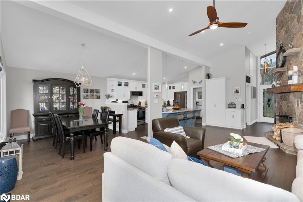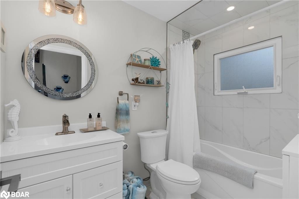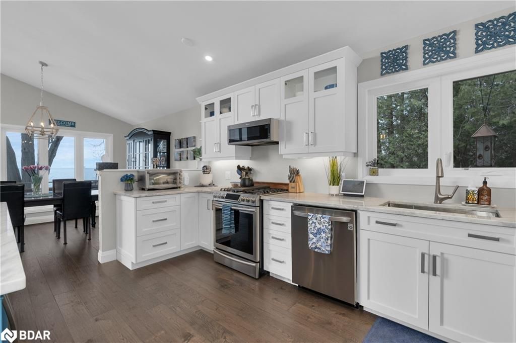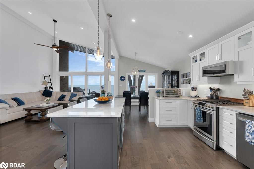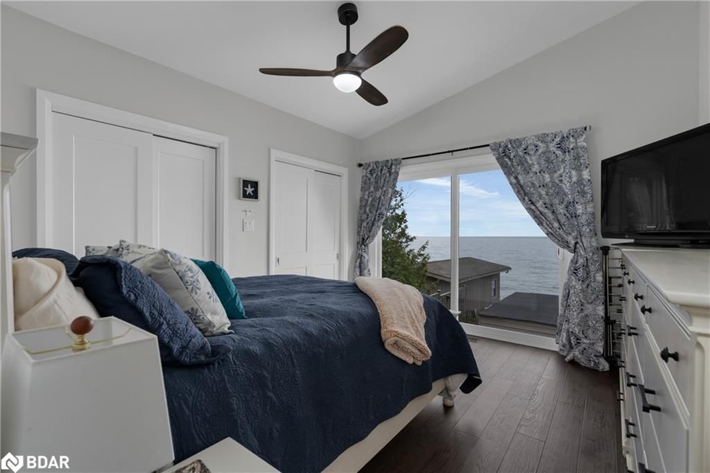Stunning waterfront property with 75.31 feet of shoreline on beautiful Lake Simcoe. Enjoy breathtaking views from every angle of this 3+1 bedroom sidesplit. This home boasts many recent upgrades including ¾ inch engineered hardwood flooring throughout the entire home, new water purification system, new doors, hardware, handles and custom baseboard. Step inside to a newly renovated entry with a new closet, flooring and entry door. The custom kitchen features double pantry, appliance pullout drawers, island with lighting, quartzite countertops, new fridge, stove, dishwasher & built-in microwave, farmhouse sink with hands-free faucet, and more. Enjoy pot lights throughout, a new wood fireplace insert (2023) in a floor-to-ceiling stone fireplace, and all new light fixtures (2020). The laundry room is equally impressive with new closet, custom cabinetry, high-end faucet, quartzite countertop, and new stackable washer and dryer with steam option. The master bedroom boasts double closets with closet organizer and inside lighting, a new patio door, and ceiling fan. The ensuite bathroom features a professionally installed heated floor, walk-in shower with spa shower, new cabinets, double sink, faucets, toilet, and a lighted mirror with Bluetooth capability. The lower level features a family room with new custom cabinetry including pullout drawers, bar fridge, and quartz countertop, and new pot lights throughout. The office also features custom cabinetry and pot lights. Step outside to the exterior of this home and enjoy the new pad for the hot tub (2021), a hot tub that is about 7 years old, new gardens (2022), a new stone pathway (2021), a double driveway (2021), a new 8 x 10 garden shed (2021), a new cedar/aluminum dock with sitting area (2020), boathouse, and a boat lift added (2021). This home comes complete with a detached 1 car garage, a large deck, and a patio with a hot tub.