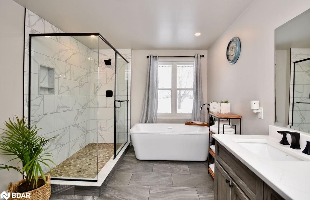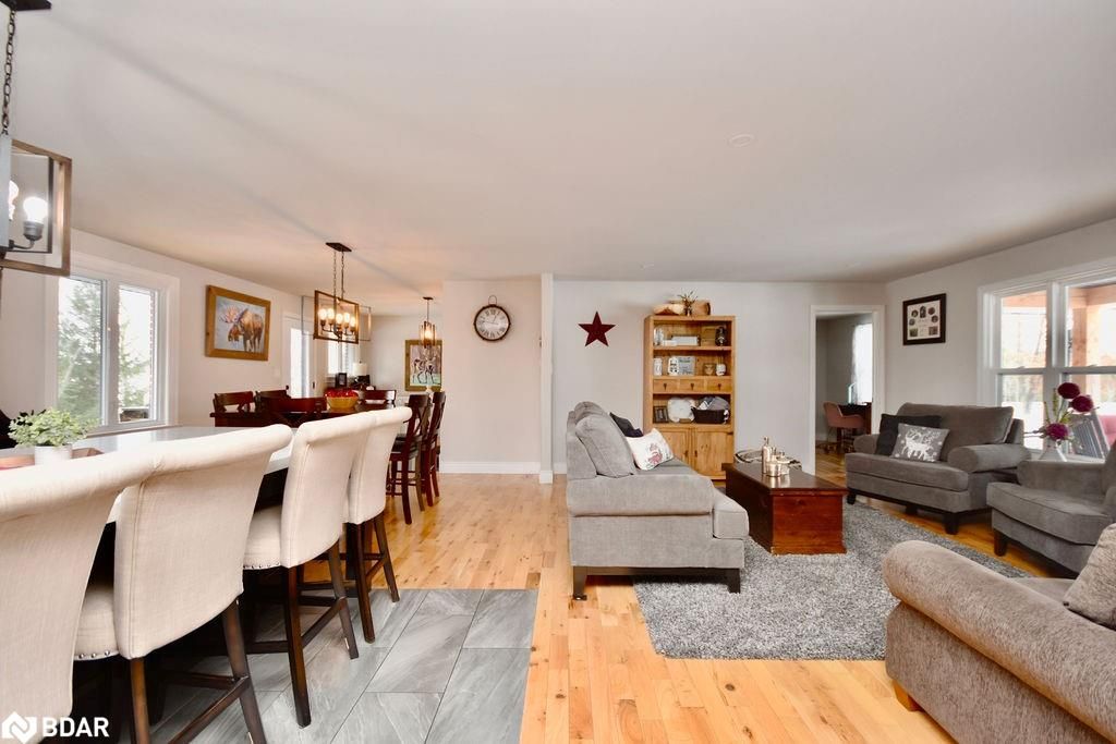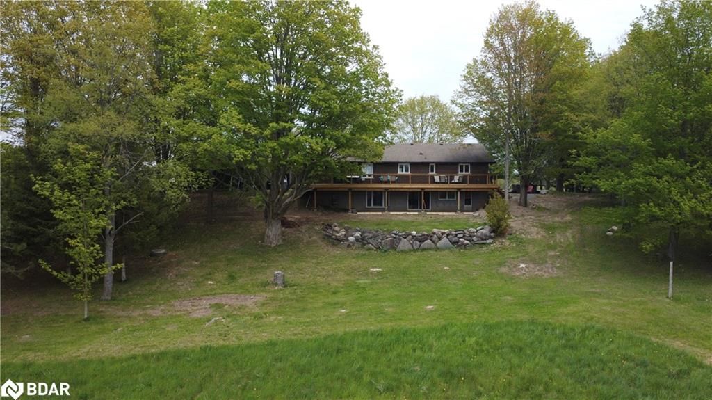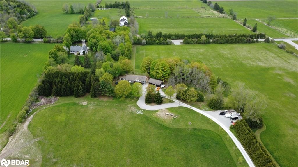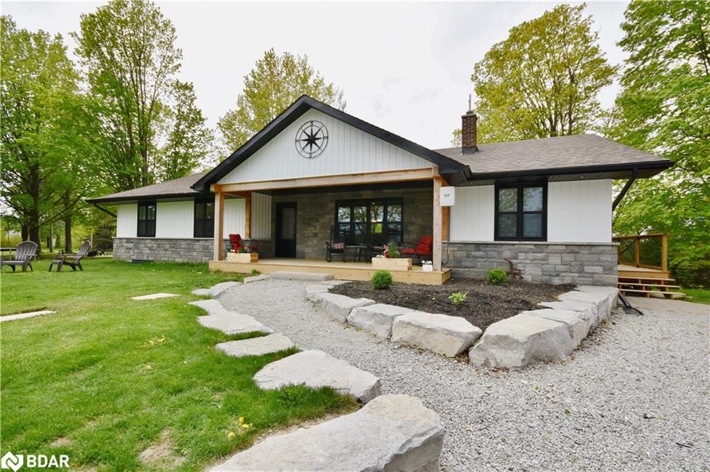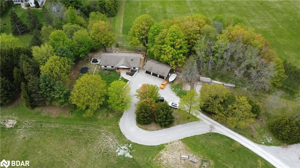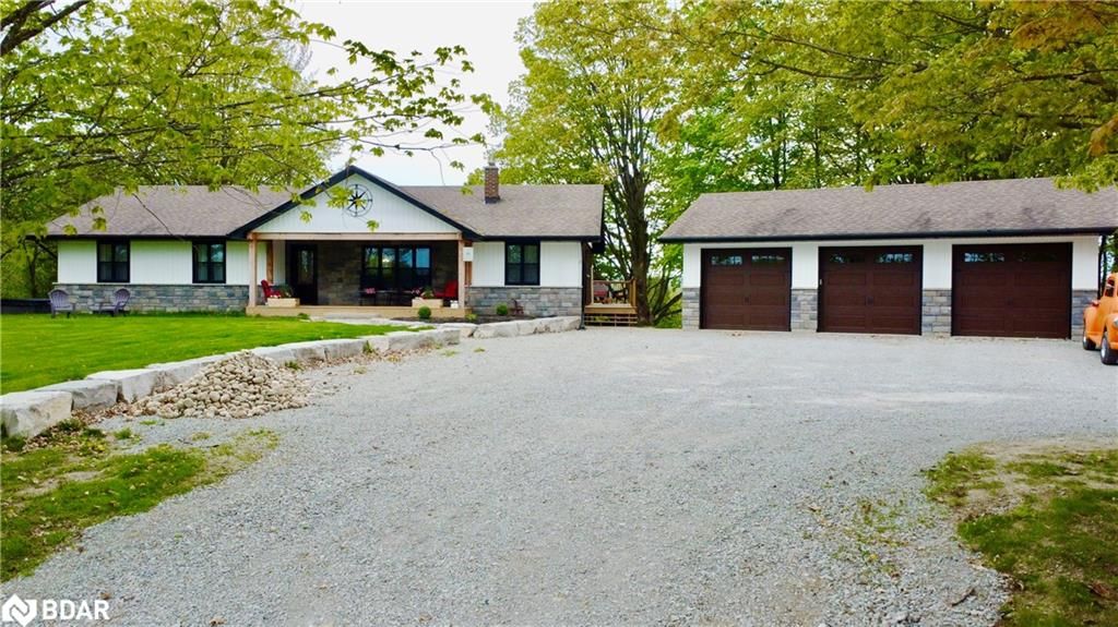 This is the property you have been waiting for! Over 20+ picturesque acres w a professionally renovated, custom bungalow w a sep basement entrance & walk out, a detached 3 car garage, 2 sep driveways & stunning views from all sides! This property welcomes you w a beautiful tree lined driveway that leads you to this modern home w a front porch perfect for enjoying your morning coffee while overlooking the 59x116ft pond! Almost everything in this home has been updated in the last 2 yrs! So many possibilities w 3+2 bedrooms & sep basement entrance there is room for the whole family, your small business or anything you could possibly want! The o/c main flr feat a custom kit, heated flrs, quartz counters, high end appliances & a w/o to a 930sq wrap-around deck overlooking the property! Gorgeous hardwood throughout the rest of the main incl the Primary bedroom suite w huge w/i closet & elegant 3 piece ensuite w custom glass shower & heated flrs! 2 more spacious bedrooms, a luxurious main bath w heated flrs, custom glass shower & stand alone tub, a convenient main flr laundry rm & mud room all w heated flrs & another side entrance to the wrap-around deck complete the main flr! The bright lower level features a sep entrance, as well as a walkout, a huge rec rm, 2 more great size bedrooms, above grade windows, spray foam insulation, new luxurious carpet & lots of storage! Don't forget that 24x36 ft insulated 3 car garage/shop or the 50x60ft parking pad w room for all your toys! Great inlaw potential!! Tens of thousands spent on stone & landscaping, hot tub, fire pit & man made pond (approx 6ft deep) great for swimming, all surrounded by mature trees! Updates incl, water treatment 2021, new siding, front dr & windows, furnace 2020, A/C 2021 & more! Min to Coldwater, 10 min to Orillia, easy HWY access & only 25 min to Barrie! This property offers the best of both worlds, close access to all amenities w the peace & quiet of country living complete w high speed internet!