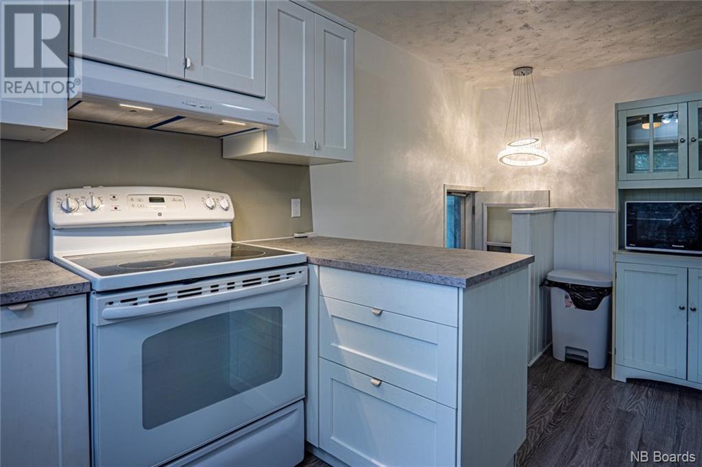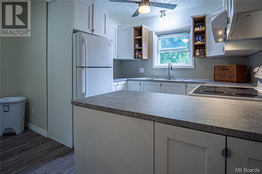 Beautiful renovated Bungalow located in the heart of Oromocto West. This house has had a huge makeover in the last year and is located within 5 mins walk to a daycare. Electrical panel was changed from fuse to breakers in 2021, Plumbing updated from copper to Pex 2023 New roof in 2021, siding 2023, flooring changed through out main floor 2023, Brand New Kitchen that just got installed, new paint on main floor, light fixtures and so much more. This 3 bedrooms 1 and a half bathroom is inviting and so much bigger then it looks. Enter into the living room where you can find a closet for storage and a beautiful bay window bringing tons of natural light. Walk past the living room to find the dinning room, this room used to be a bedroom and could potentially be turned back. Left into the hallway where you can find 2 bedrooms at the end of the hallway and the bathroom midway. Walk back towards the front of the house to find this gorgeous kitchen. Go Down the stairs toward the semi finished basement where the bathroom which also got renovated. The Remainder of the basement is ready for your imagination and creative spirit. Laundry room is also in the basement as has a soaker sink. Bedroom in basement is not Egress. Through the side door is a gigantic attached storage perfect for all your outdoor sport equipment or to have your own work shop. Measurements to be verified by buyer. (id:22211)