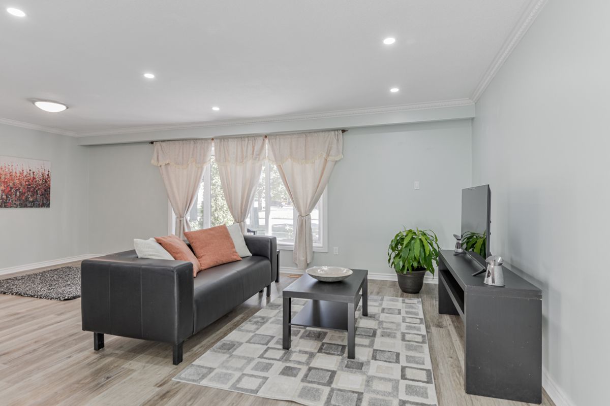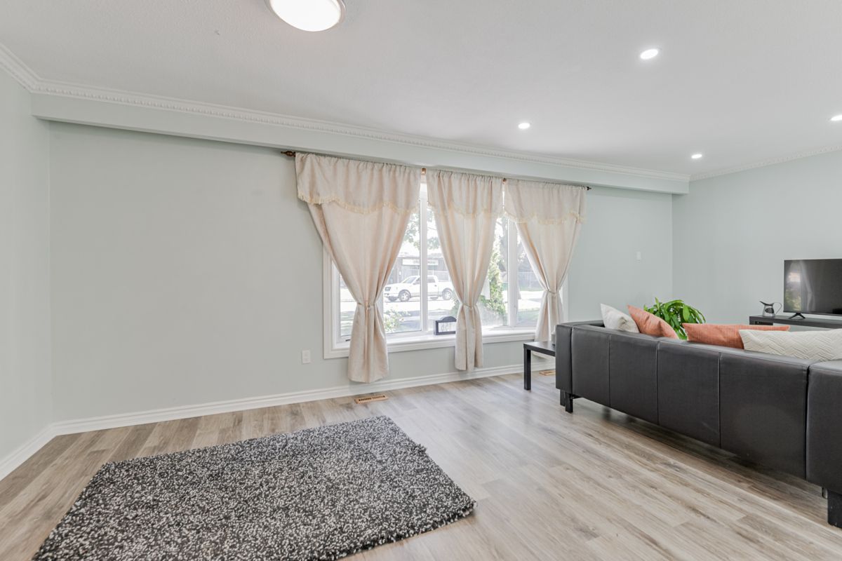 Four level Back-split House in lakeview Community. Main and Upper Floor only This Home Features New Kitchen with Quartz Counter top and Island with Breakfast Bar , Open Dining and Living room with Pot Lights and Bay Window . 3 Bedrooms with walkout to Huge Composite Deck Overlooking Treed Backyard New Laminate Floors Throughout both levels .New Exhaust Fans in Washroom,New Thermostat.Freshly painted throughout, Beautiful open Backyard with Huge deck and Gazebo, 2 Sheds and Pear and Apple Trees .Minutes to Hwy 401 and Go Station , Short walk to Lakeview Park and Lake Ontario Six Newer Appliances Separate Laundry Room !Parking for 2-3 CarsUse Of Fridge , Stove, Washer, Dryer, B/I Dishwasher , B/I Microwave Oven 2 Storage Sheds.