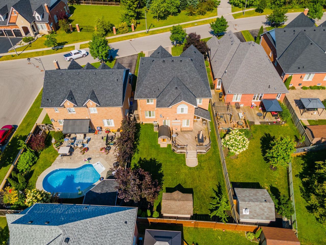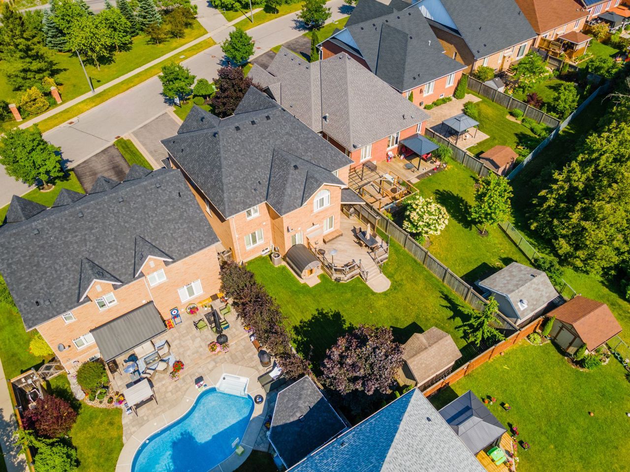 Welcome to this beautiful detached 2-storey all brick home located in the enclave of Harrowsmith Ravine Estates, premium lot backing onto greenspace on a quiet, family-friendly court in North Oshawa! Fabulous Floor Plan With Over 3500 sqft, 5 bdtms, 4 bath, Loaded With Superior Upgrades, Gourmet Custom Kitchen Boasting lots of cabinets, Granite Counters, Built-In Double Ovens, Island & Walk Out to Private Deck. Main Level With Gleaming Hardwood Floors & Stairs. Large Family Room With Gas Fireplace Formal Living & Dining Area Main Floor Laundry With 2nd Set Of Stairs, Garage Access. The Master Is A True Retreat Oversized With Spa Like En-Suite, His And Hers Sinks, Glass Shower & Jacuzzi Soaker Tub, Make-Up Vanity Walk In Closet With Organizers. 2 & 3rd Bedroom With Jack 'n Jill Bathroom, 4th & 5th Bedroom With Jack 'n Jill Bathroom. Easily make A In-Law Suite In Basement With 2nd Set Of Stairs & Lots Of Windows. Furnace 2019, A/C 2019, Roof 2020.9 ft Ceilings, Hardwood Floors, Each Bedroom Has Bathroom 2 Staircases, 8x10 Shed, Kitchen Aid B/I appliances, Wall Oven, Microwave, Gas Cook Top, Washer, Dryer, ELF's, Heater & Tiles On Floor In Garage, Closet Organizers, shutters