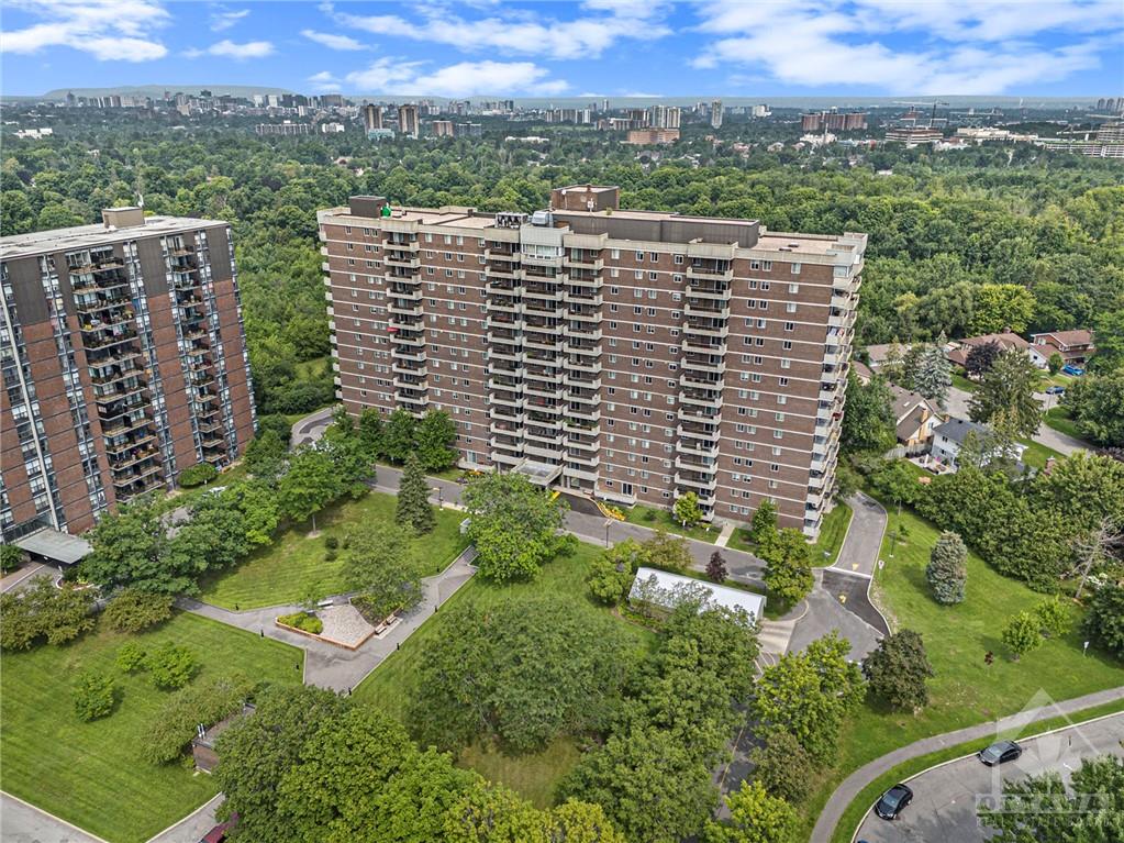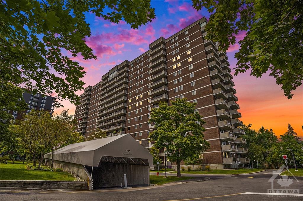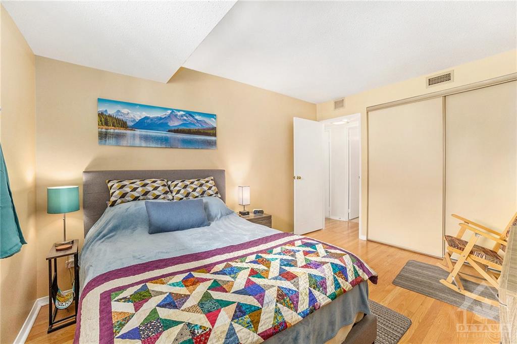 One of the nicest condo buildings in Ottawa. Beautiful solid oak floors throughout. Walk out from your condo to an inviting green park like setting in front or trails at back without ever having to wait for an elevator!!! This condo is spacious and a must see with a separate dining room, a large living room and a spacious bedroom. The neighbourhood is fabulous, bordering Alta Vista, within walking distance to the Ottawa General Hospital. It offers in-unit laundry and a comfortable patio, perfect for soaking in the beautiful scenery. With its south-facing exposure, you'll enjoy plenty of sunlight and benefit from low heating costs. The property includes underground parking and a separate storage locker and secure bike storage. The building's amenities are exceptional, offering residents a luxurious lifestyle with a fitness center and social lounge. Don’t miss out on this opportunity. Schedule your private appointment today before its sold.