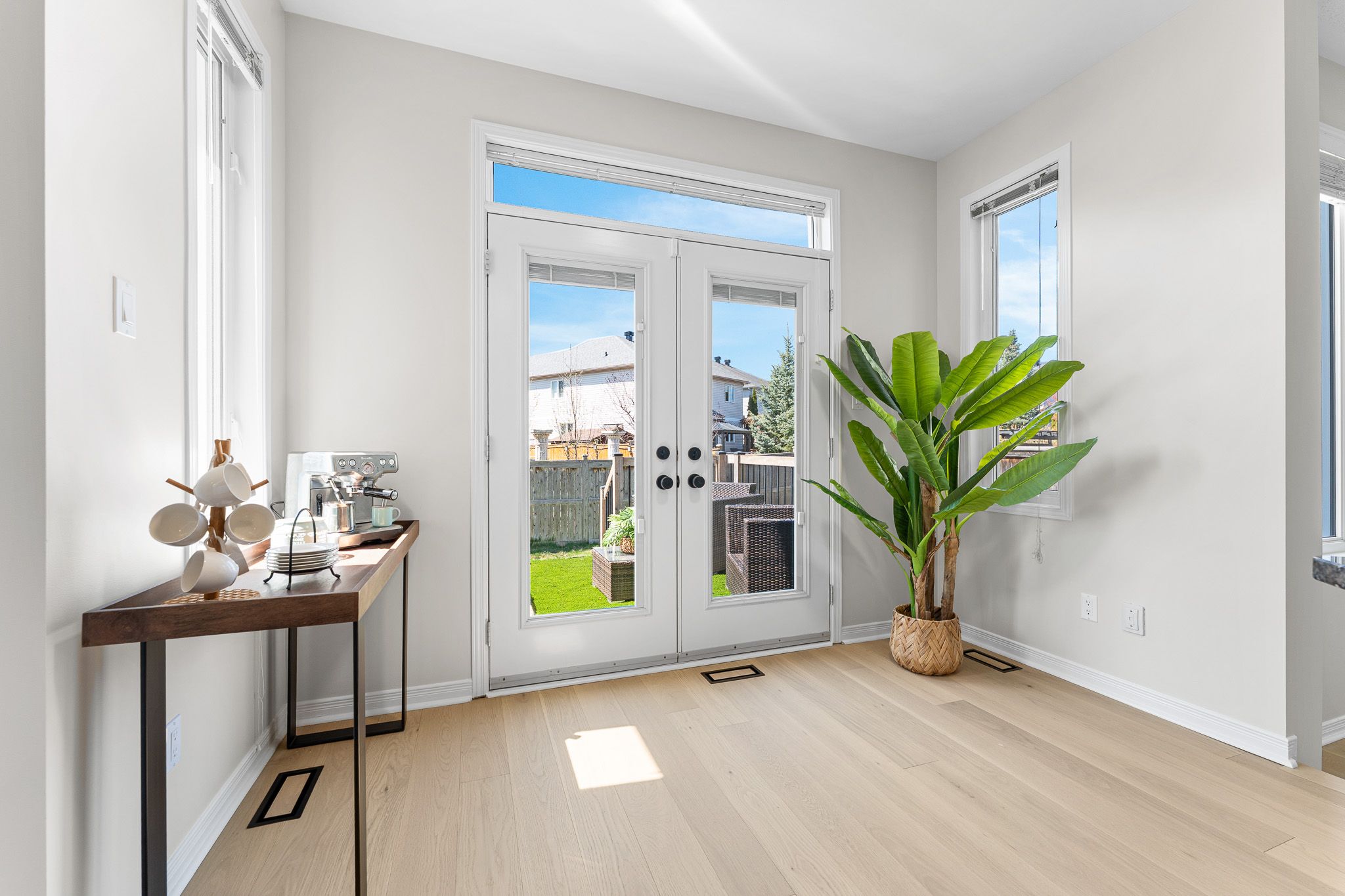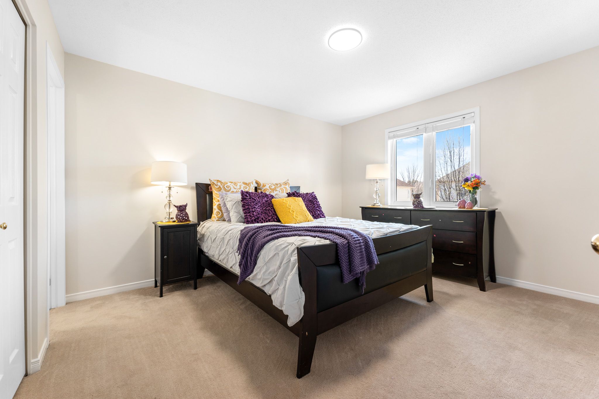 Welcome to 209 Allgrove Way. Nestled on a quiet, family-friendly street, this beautiful home is just steps from a park with splash pad, skating rink, and a walking path that leads to two elementary schools. Featuring 4 bedrooms and 4 bathrooms (including two ensuite baths), and offering an exceptional layout with a main floor office featuring abundant natural light from many windows, & a versatile upper-level loft. The main level showcases fresh hardwood and tile flooring, along with a newly installed staircase that serves as a focal point on the main floor. Chef's kitchen includes granite countertops, a breakfast bar, and patio doors that open onto a cedar deck overlooking the fenced backyard. The inviting family room centers around a warm gas fireplace, while the large mudroom adds functionality. Upstairs, the elegant primary suite boasts a three-sided fireplace, a serene sitting area, vanity, walk-in closet, and a luxurious 5-piece ensuite. A flexible upper loft space easily transitions from a play area to a cozy retreat for family downtime. Completing the second level is a full 4 piece bathroom, and three generously sized secondary bedrooms, one of which offers a 4-piece ensuite. Recent updates include: hardwood and tile on the main floor (2025), hardwood staircase & banister (2025), full interior paint (2025), light fixtures (2025), powder room vanity & mirror (2025), roof (2022), furnace and central air (2020).