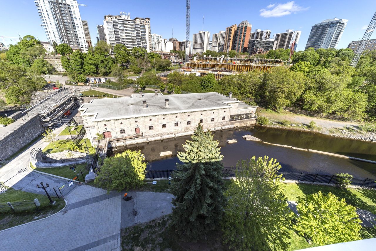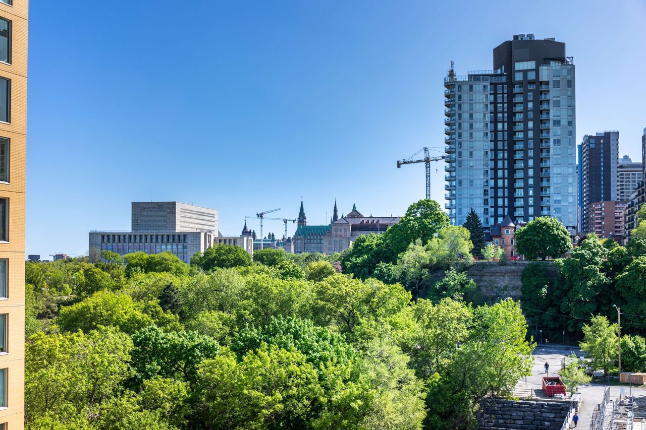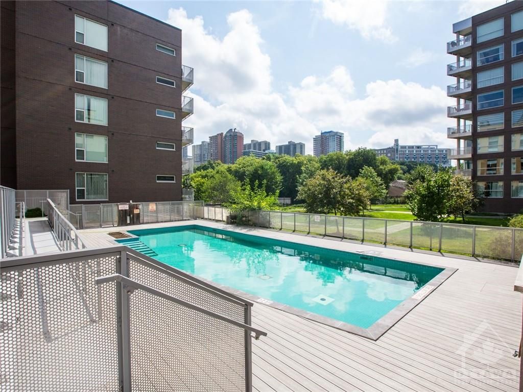 Discover urban luxury at 300A Lett St, Ottawa! This stunning condo in LeBreton Flats offers breathtaking views of downtown, the Ottawa River, and the Peace Tower from its private balcony. Featuring modern design with floor-to-ceiling windows, a sleek kitchen with granite counters, and in-suite laundry, this 1-bedroom, 1-bath retreat is perfect for professionals or couples. Enjoy premium amenities: an outdoor pool, fitness center, and rooftop terrace w BBQs. Steps from LRT, restaurants, and the river, its Ottawa's first LEED-certified gem. Bike or jog along the Ottawa river paths, watch Bluesfest from your balcony, or walk over to a Preston St cafe. Tons to enjoy in this vibrant downtown location! Includes underground parking and storage locker.