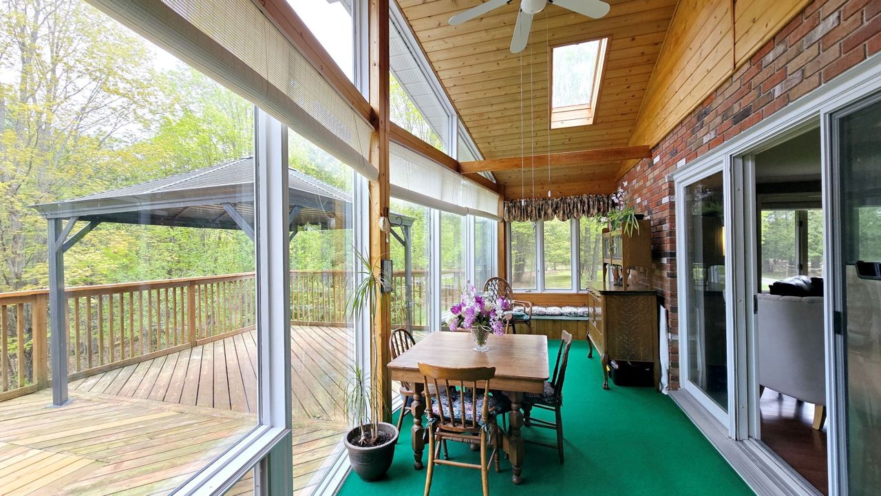 下層設 walk-out出口及車庫通道(混凝土底板下鋪設保溫層提升舒適度),家庭房的walk-out出口通向陽光房下方的儲物區並連接戶外,另有2間臥室(現1間用作儲藏室),帶淋浴的浴室,獨立洗衣房(含冷藏室),寬敞工作間及車庫入口處的步入式儲物間。這處物業完美融合鄉村風情與觸手可及的都市便利。您可盡情探索森林步道,或在帶閣樓和電力設施的17x25英尺原木穀倉(適合飼養家畜實現 hobby farm夢想/倉儲/創意工坊/小型創業)中發掘無限可能。2019年更新丙烷供暖係統及中央空調,車庫屋頂約2013年更換,主屋頂約2015年翻新。真正的隱藏瑰寶!速行動!