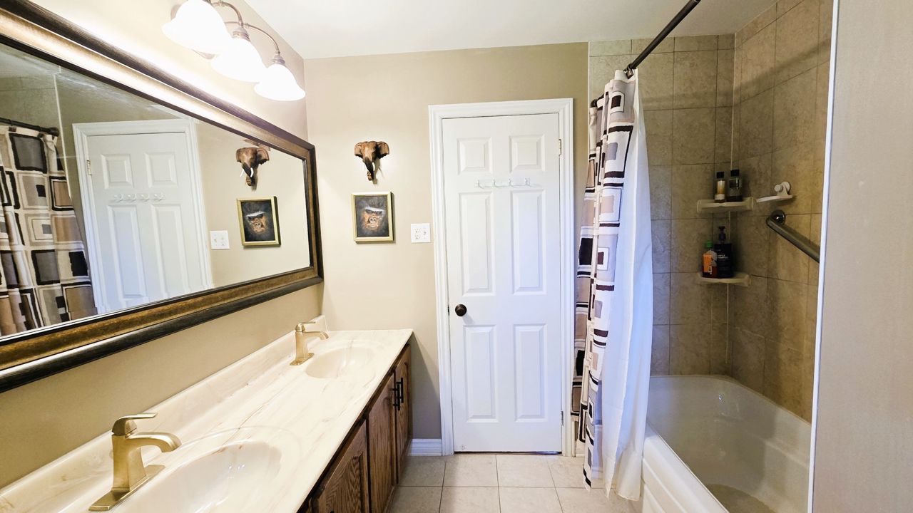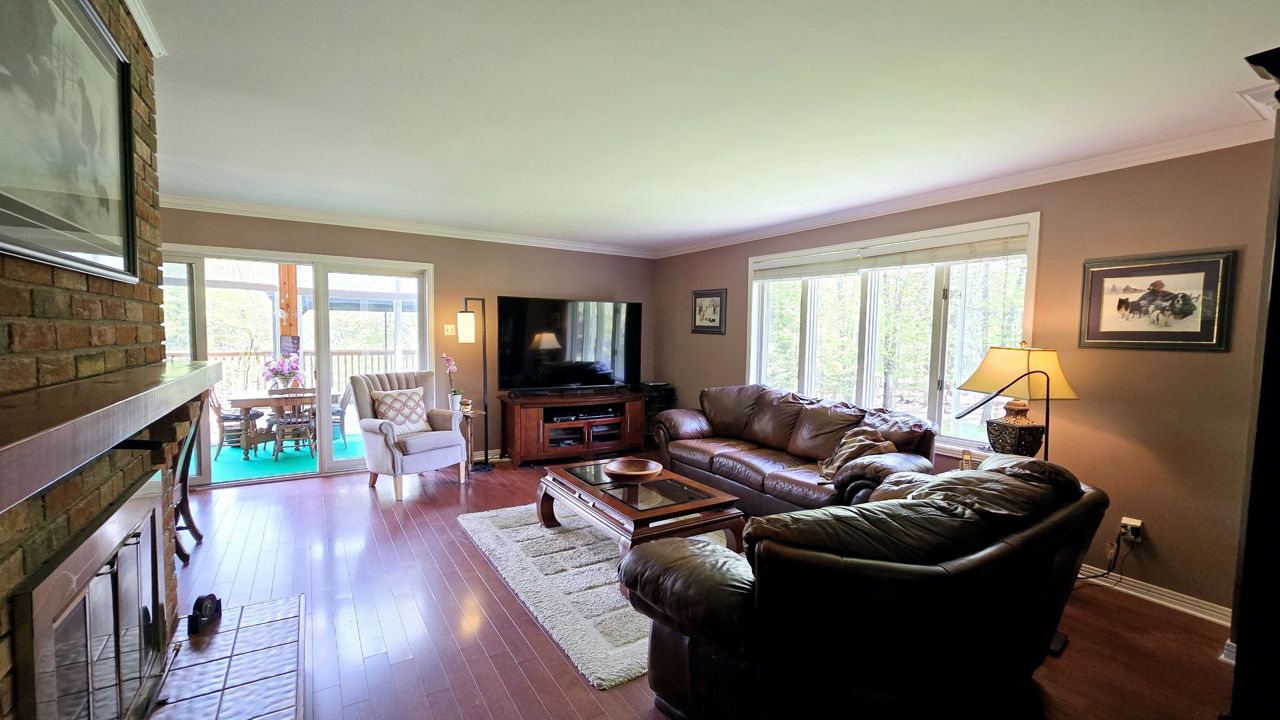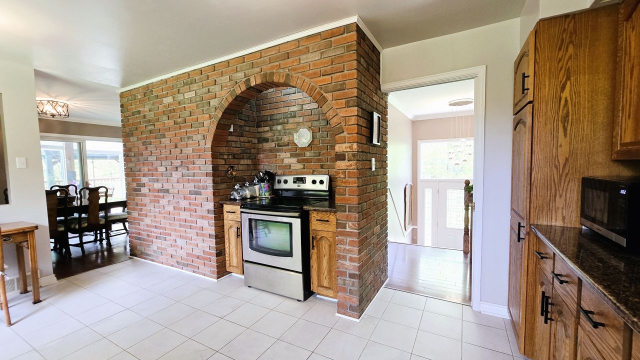 一棟迷人的磚木混搭風格2+2臥2衛錯層平房與這片絕佳土地相得益彰:配備帶10英尺挑高頂棚的雙車位加熱車庫(含地下室便捷通道),可俯瞰露台和側院的陽光房適合小憩,兩座磚砌壁爐,鋪著實木複合地板的寬敞客廳與餐廳,配有通往陽光房的玻璃推拉門——陽光房擁有教堂式挑高天花板和整面落地窗,是用餐、放鬆或啜飲晨咖啡欣賞自然美景的完美角落;橡木實木打造的精致廚房配磚砌主題牆,帶步入式衣帽間和超大儲物櫃的主臥,以及配備雙台盆的雅致主浴室。