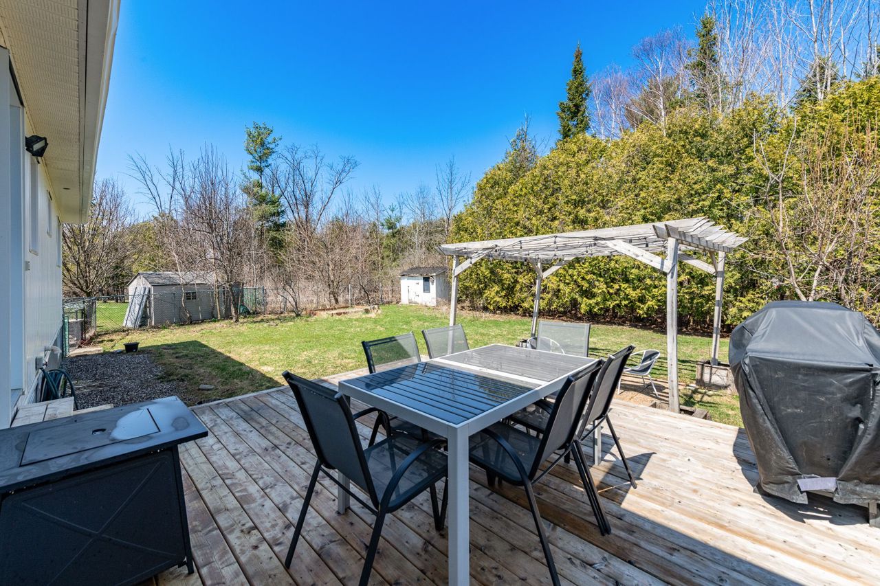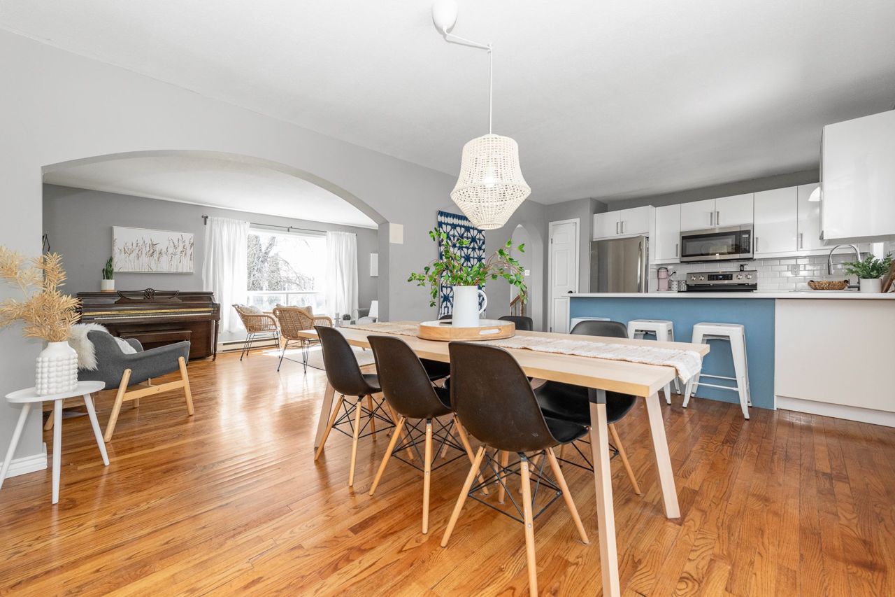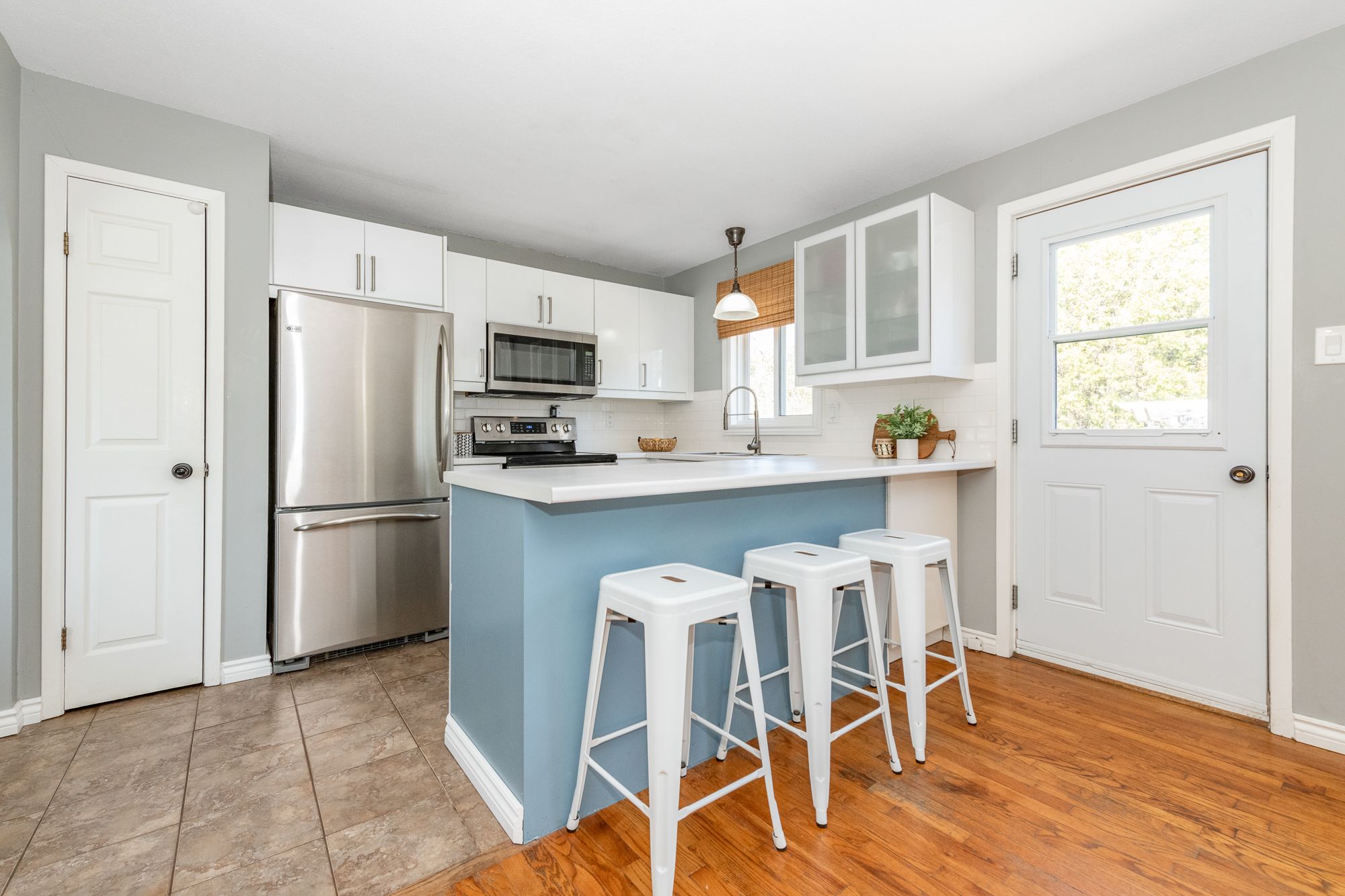 Single Raised Bungalow with 2 bdrms up and 2 down. Spacious and bright open concept main floor layout. Hardwood floors throughout. Irregular pie shaped lot with large private backyard. Updated Kitchen, spacious lower level family room. Situated in a mature neighbourhood in Stittsville, this home has easy access to shopping, transit, schools, parks and schools. Utilities: Yearly Totals for 2024: Water $1285 Hydro $1704 Gas $1258 ROOF 2018, Deck 2020, Some Windows 2025, Kitchen Update 2018. Home has electric baseboard heating as well as a heat pump that was installed in 2020(see invoice in attachments) and is used as a heating and a/c source. Gutters just cleaned