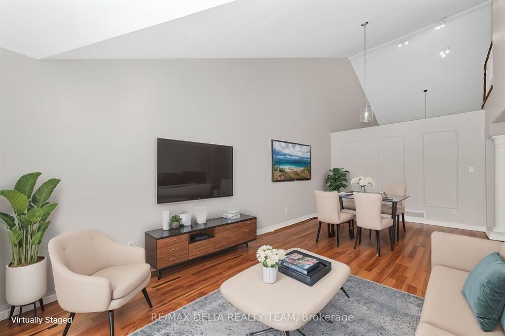 Stunning and Spacious 3-Bedroom, 3-Bath Bungaloft in Prestigious Stonebridge. Welcome to this beautifully designed 3-bedroom, 3-bathroom bungaloft that seamlessly blends modern features with timeless comfort. With its bright, open layout and generous living spaces, this home offers the perfect setting for both relaxation and entertaining. The main living and dining areas are adorned with elegant hardwood and ceramic flooring, adding warmth and sophistication throughout. The gourmet kitchen is a chefs dream, complete with a large center island, walk-in pantry, and abundant counter space ideal for meal prep or casual dining. The adjacent family room serves as the heart of the home, featuring soaring vaulted ceilings and a cozy gas fireplace that creates a welcoming, airy ambiance. Retreat to the spacious primary suite, which boasts a private ensuite and walk-in closet for ultimate convenience. Upstairs, the versatile loft offers additional living space perfect as a home office, guest suite, teenage retreat, or in-law setup. Set in the highly sought-after Stonebridge golf course community, this home is just minutes from parks, shopping, and everyday amenities. Rarely offered and thoughtfully designed, this bungaloft is a unique opportunity to enjoy refined suburban living. Some photos Virtually Staged. 24hr Irrevocable.