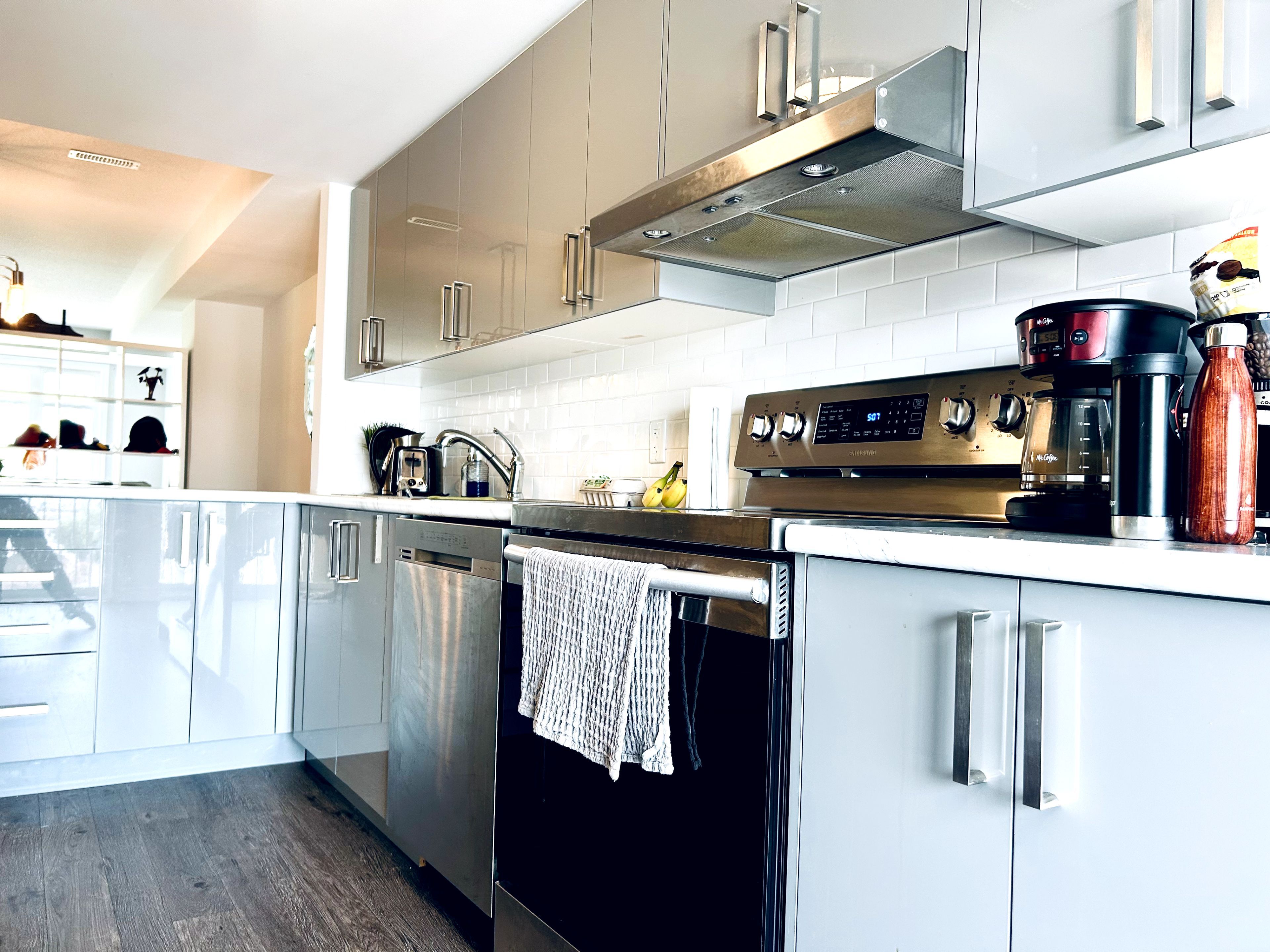 Find a rare upper-level unit, located in an enviable, rebuilt stacked condominium in 2020, everything is newer, and it has better soundproofing, boasting over 1,400 sqft of living space. Follow the stairs to a bright main floor, where you can entertain in an open living area. The space features three great-condition stainless steel appliances, a double sink, ample counter space, and modern-looking cabinetry. Enjoy morning tea/coffee in an adjacent breakfast area with a private balcony. Quiet den is a hidden gem on the main floor, suits your WFH. Upstairs, a master bedroom features a large closet and a full ensuite bathroom. Down the hall, past the facility room, washer & dryer, a second bedroom with a wall-to-wall closet, and an additional ensuite. Surface, visitor, and street parking. Discover endless walkable amenities such as the Marketplace, grocery stores, restaurants, Starbucks, and a gym. Enjoy nearby great elementary, secondary schools, playground, and fast transit stops. Pet(s) limited and non-smokers. All Utilities are paid by the tenant. Recently furnace was maintained. The carpet will be professionally cleaned before the new tenants move in.