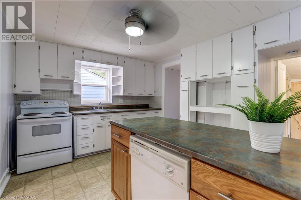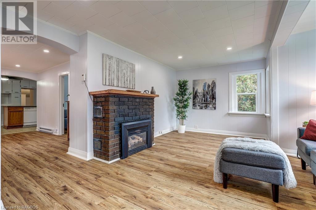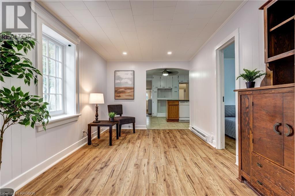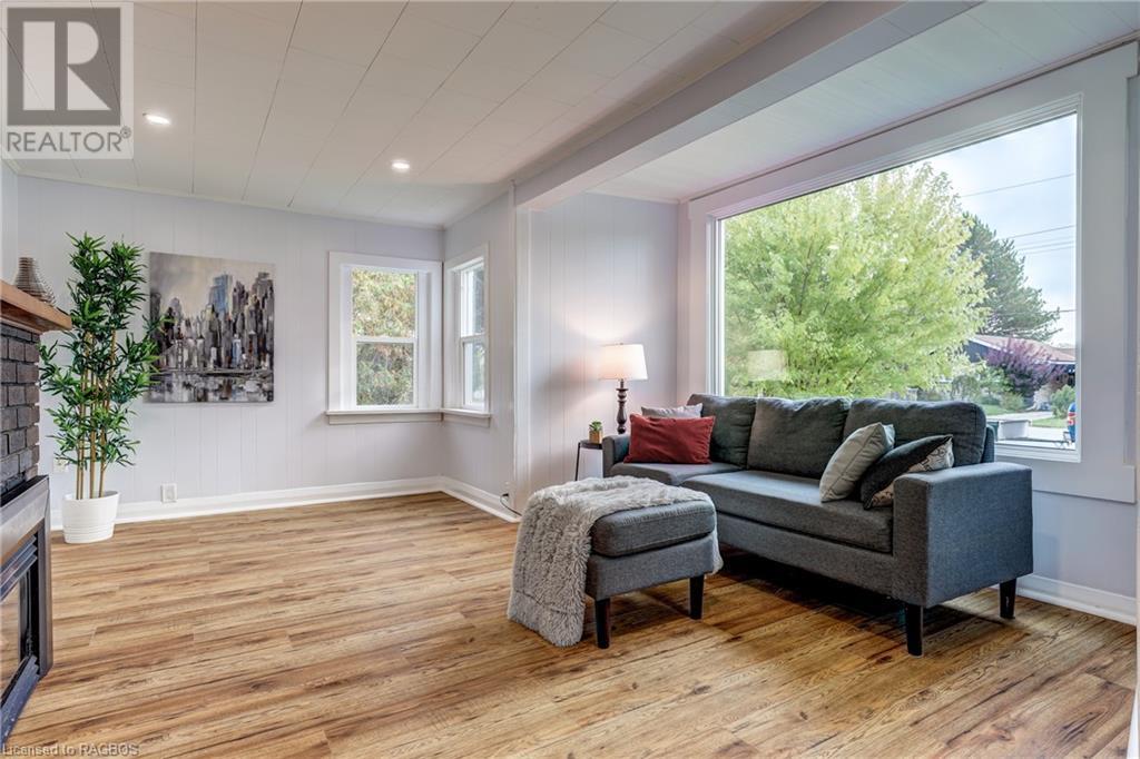 This home today might be the best bang for your buck in the current market and is completely move-in ready! Located in a beautiful location, with a generous size lot, with views of Georgian bay. The home is priced to move, loaded with updates, and is in a great location right across from Georgian Bay close to the marina, kelso beach, legacy ridge, and about 5 minutes from the downtown core of Owen Sound. As you arrive at this home you can see the curb appeal is on point with the brand new siding on the home and the shop and shingles on both roofs replaced in the last 2 years. As you enter the home you will find all new flooring in the majority of the home, fresh paint, new baseboard heaters, and the majority of windows here have been replaced. The living room is cozy with a large picture window letting in lots of light and a natural gas fire place. There are 2 bedrooms, and space for a dinning room table. The four piece bath has a new toilet, and tub surround. The shop is a huge bonus for space to put your toys, lawn mower and snow blower. There are even stairs that go up to the attic for additional storage. (id:22211)