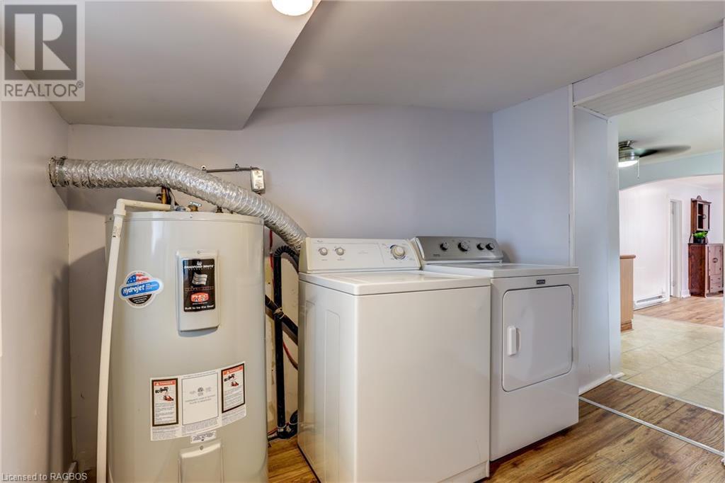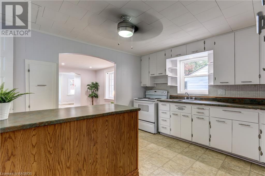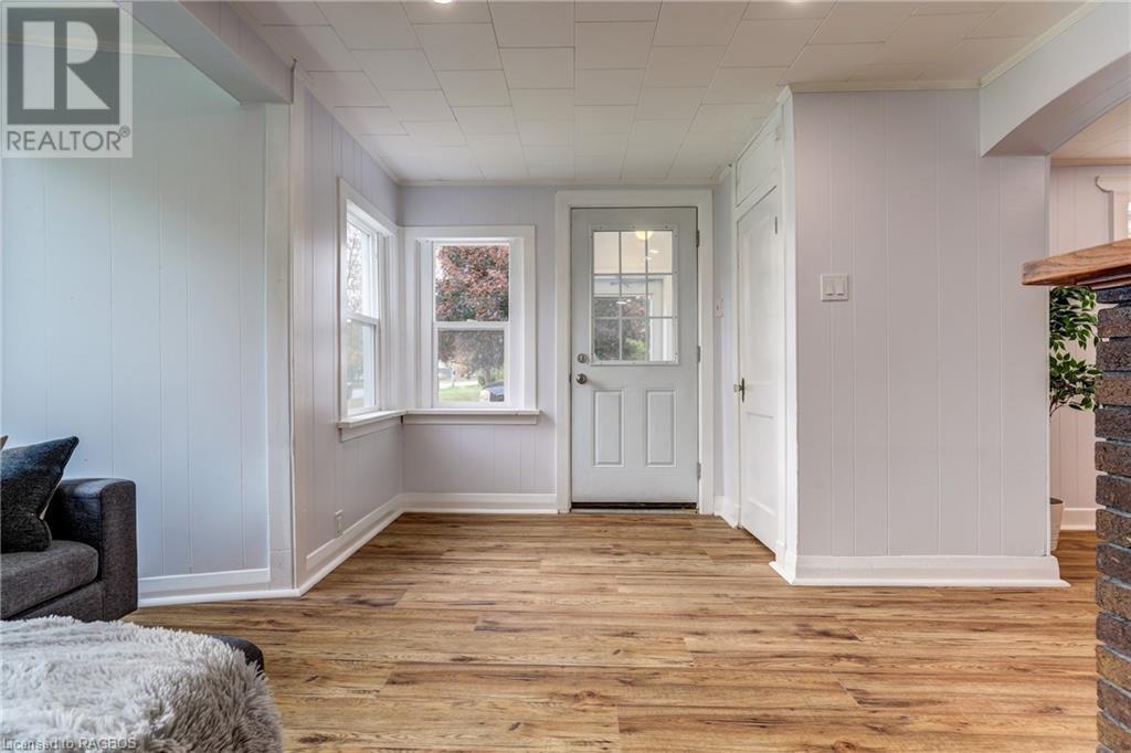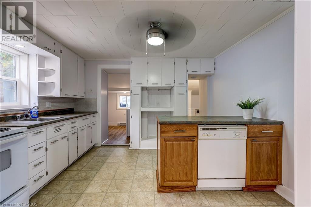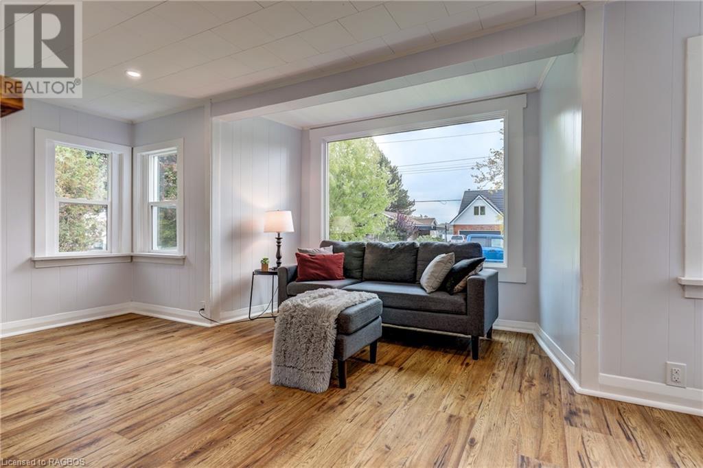 This home today might be the best bang for your buck in the current market and is completely move-in ready! Located in a beautiful location, with a generous size lot, with views of Georgian bay. The home is priced to move, loaded with updates, and is in a great location right across from Georgian Bay close to the marina, kelso beach, legacy ridge, and about 5 minutes from the downtown core of Owen Sound. As you arrive at this home you can see the curb appeal is on point with the brand new siding on the home and the shop and shingles on both roofs replaced in the last 2 years. As you enter the home you will find all new flooring in the majority of the home, fresh paint, new baseboard heaters, and the majority of windows here have been replaced. The living room is cozy with a large picture window letting in lots of light and a natural gas fire place. There are 2 bedrooms, and space for a dinning room table. The four piece bath has a new toilet, and tub surround. The shop is a huge bonus for space to put your toys, lawn mower and snow blower. There are even stairs that go up to the attic for additional storage. (id:22211)