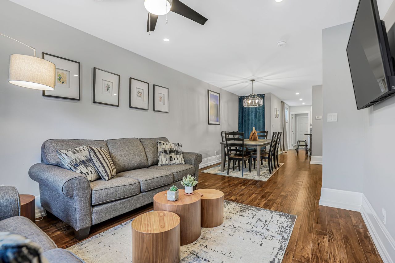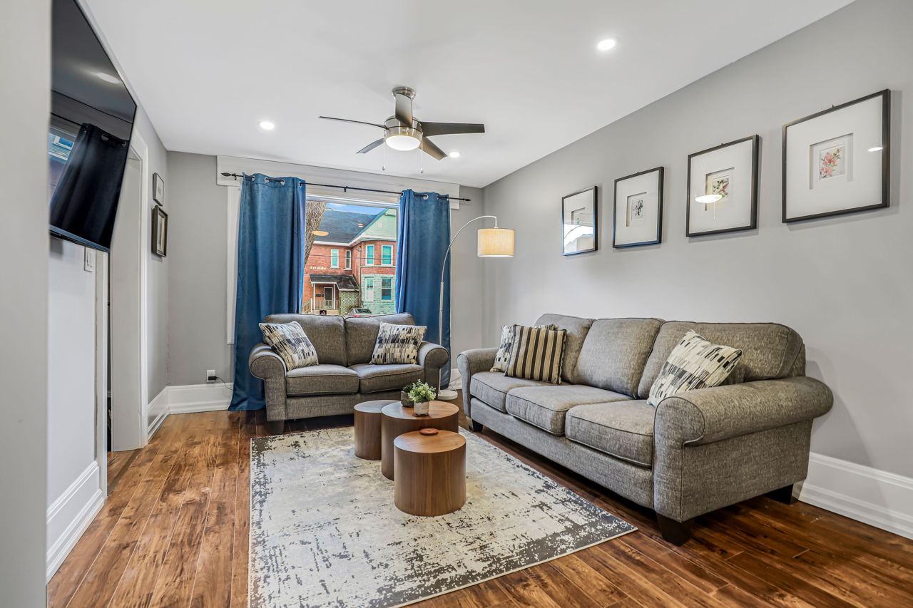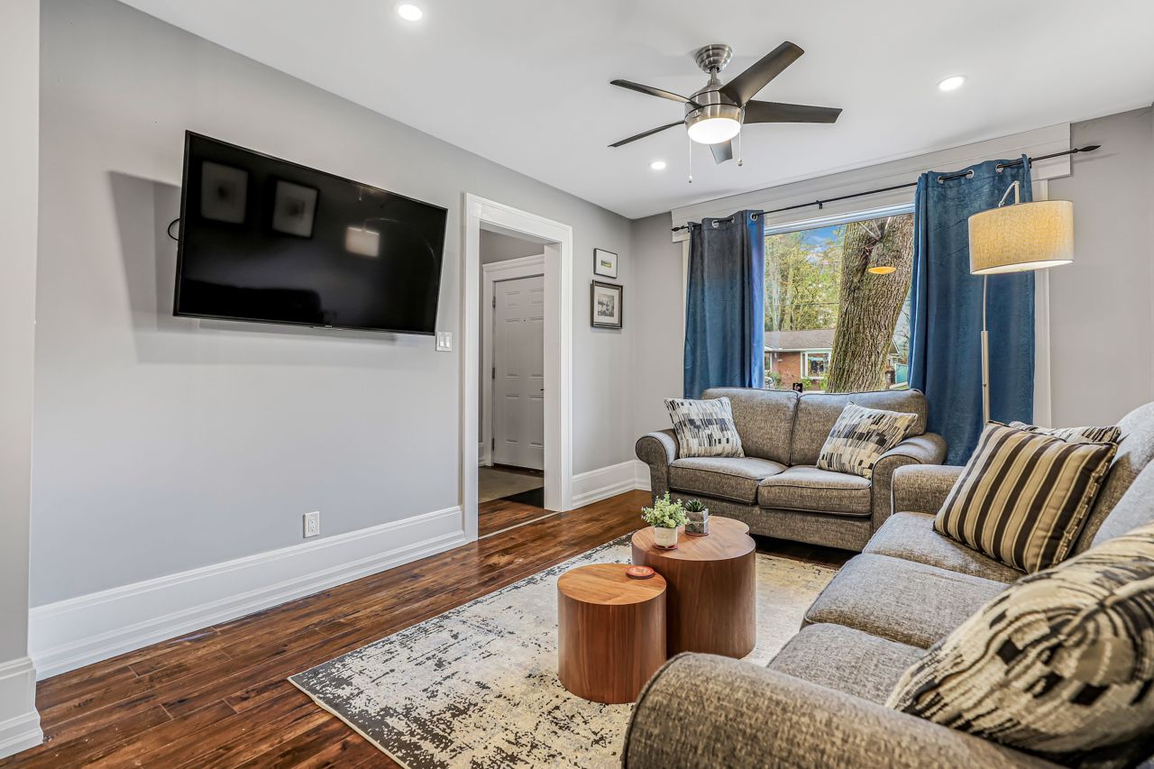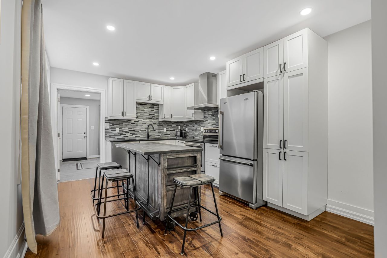 Welcome to 362 11th Street West, a beautifully renovated townhouse in one of Owen Sounds most walkable and convenient neighbourhoods, just west of the harbour. Priced under $400,000, this move-in-ready home offers the perfect blend of charm, style, and urban living. Inside, you'll find a thoughtfully designed layout featuring custom oak stairs, hand-scraped flooring, modern finishes, and pot lights throughout. The spacious living and dining areas flow seamlessly into a stylish kitchen with a distressed oak island and stainless steel appliances. A handy mudroom adds convenience with a two-piece bath, main floor laundry, and access to the backyard. Upstairs, enjoy three bright bedrooms and a beautifully updated four-piece bathroom with a glass shower and crisp white vanity. Outside, relax on the covered front porch or make use of boulevard parking and rear access with potential for more. With all major updates complete including windows, doors, roof, and furnace this is an excellent opportunity to own a turn-key home in the heart of Owen Sound.