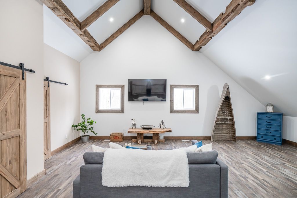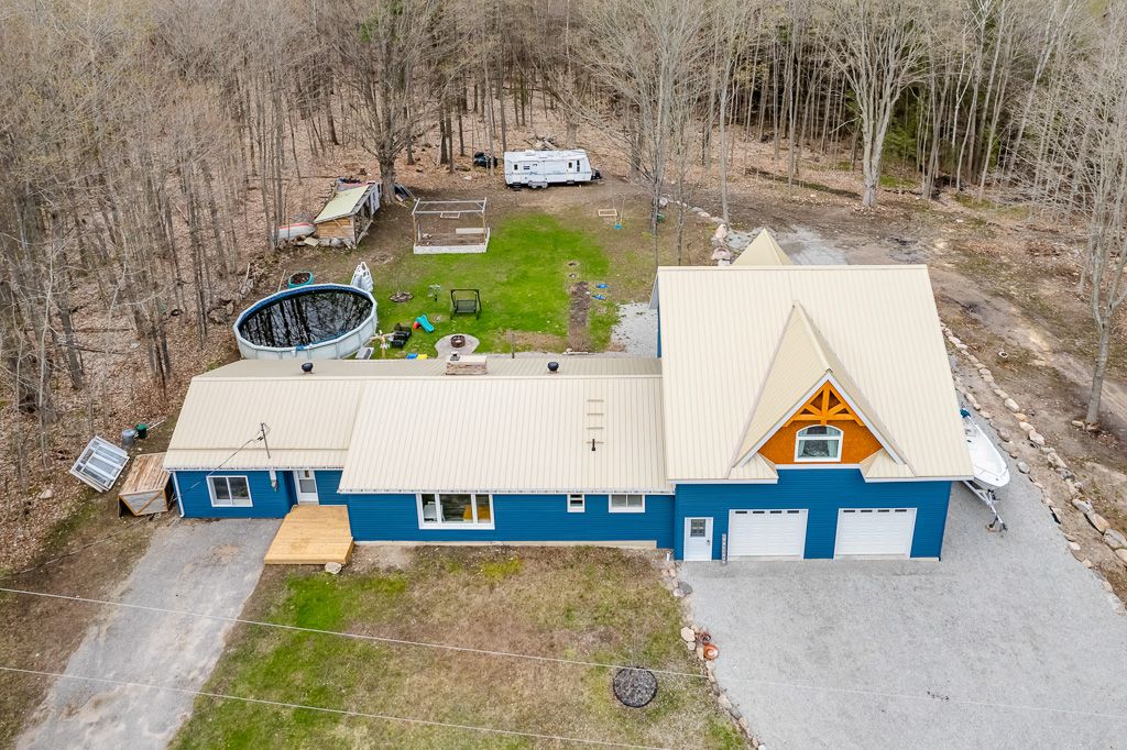 28' x 36' INSUL, HEATED, GARAGE/SHOP FITS 4 VEHICLES! This Fabulous Bung w/Loft on Just Over 1 Acre Has So Much To Offer! The Orig Home Feat Bright, Open Concept Living w/Walkout To The Backyard; Wood Burning FP; 2 Bdrms, Mud Room & a Full Bath. Enjoy Added Convenience of 2 Driveways on Each Side of The House. Completed in The Spring of 2022, the Addition of the Garage/Shop Included a New Furnace for The Home & a Loft Above Currently Used as The Primary Suite Adding Approx 1000 Sq Ft To The Living Area. This Spectacular Loft Features: a 5pc Ensuite; Walkin Closet; Cathedral Ceilings; Custom Trim & Beams Elevating This Home To The Next Level. You Will Love the Functionality of The Garage with it's Back Garage Door For Drive Thru Ability; Loads of Storage & Work Areas; 12' Ceilings; & Remote Garage Dr Openers for All 3 Doors. With House Positioned On The North Side of The Property, There Could Be Many Opportunities For The Unused Portion of The Land. A Unique Property!Tv & Mounting Bracket - Primary Suite, Bbq