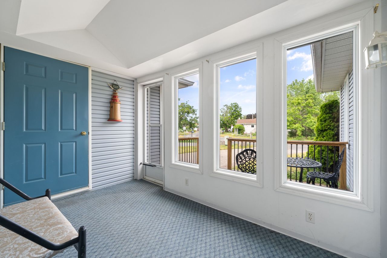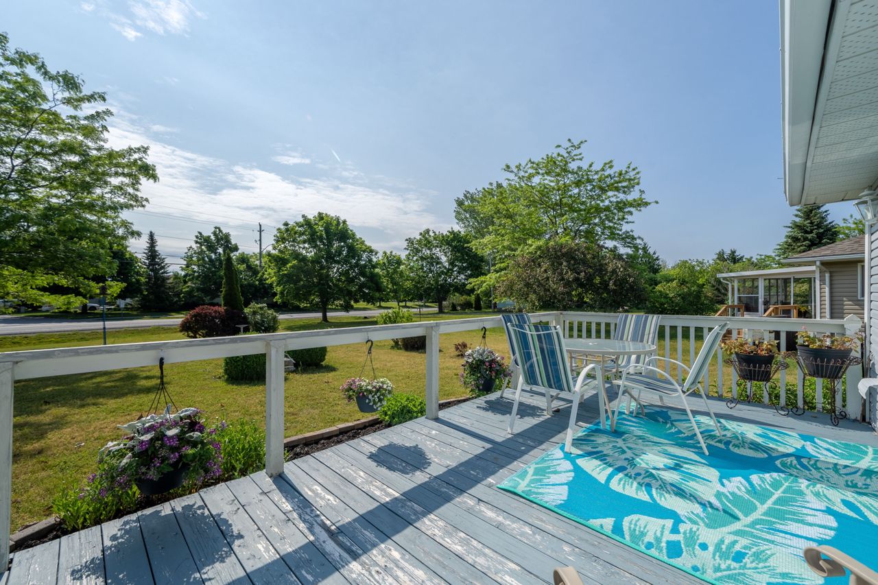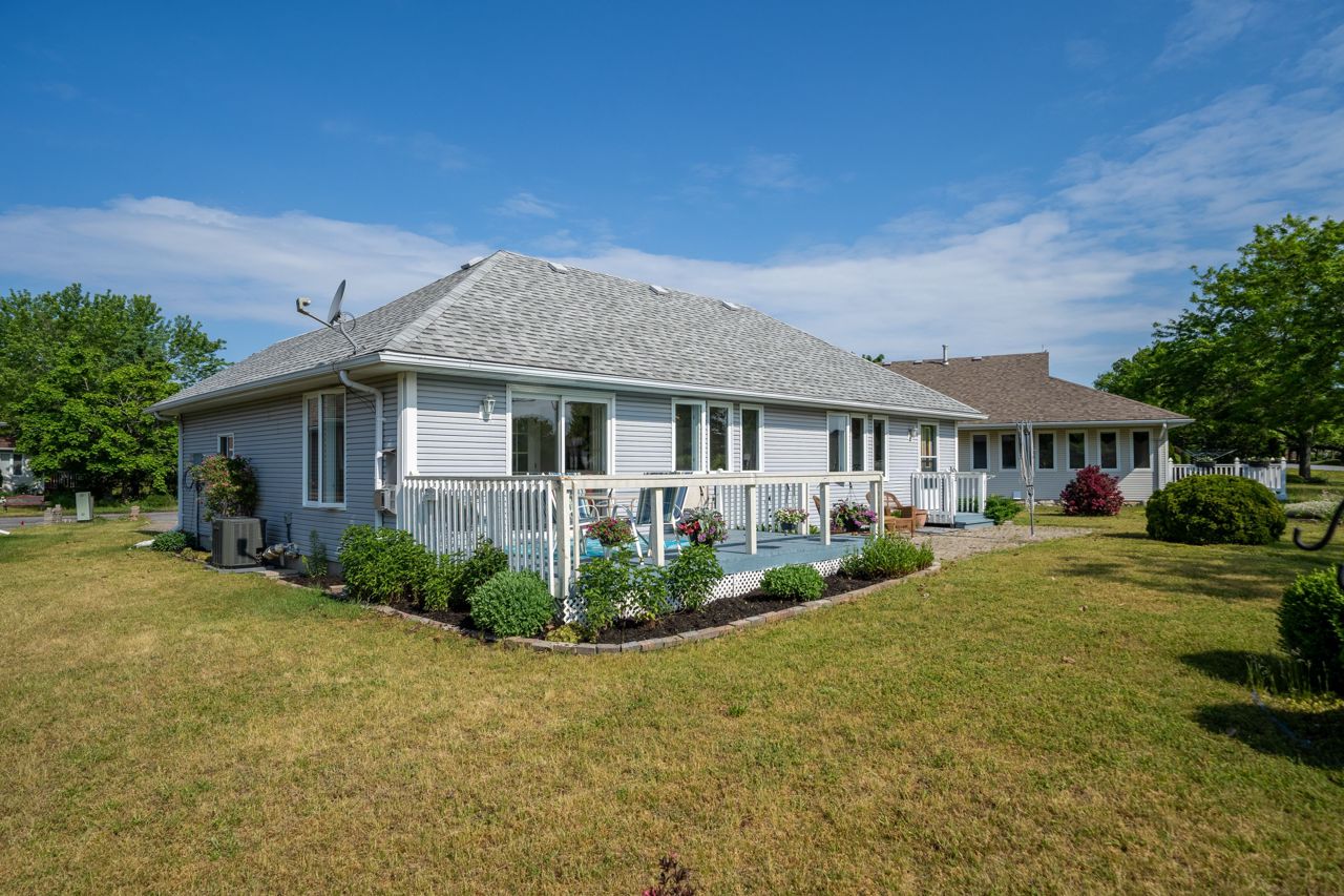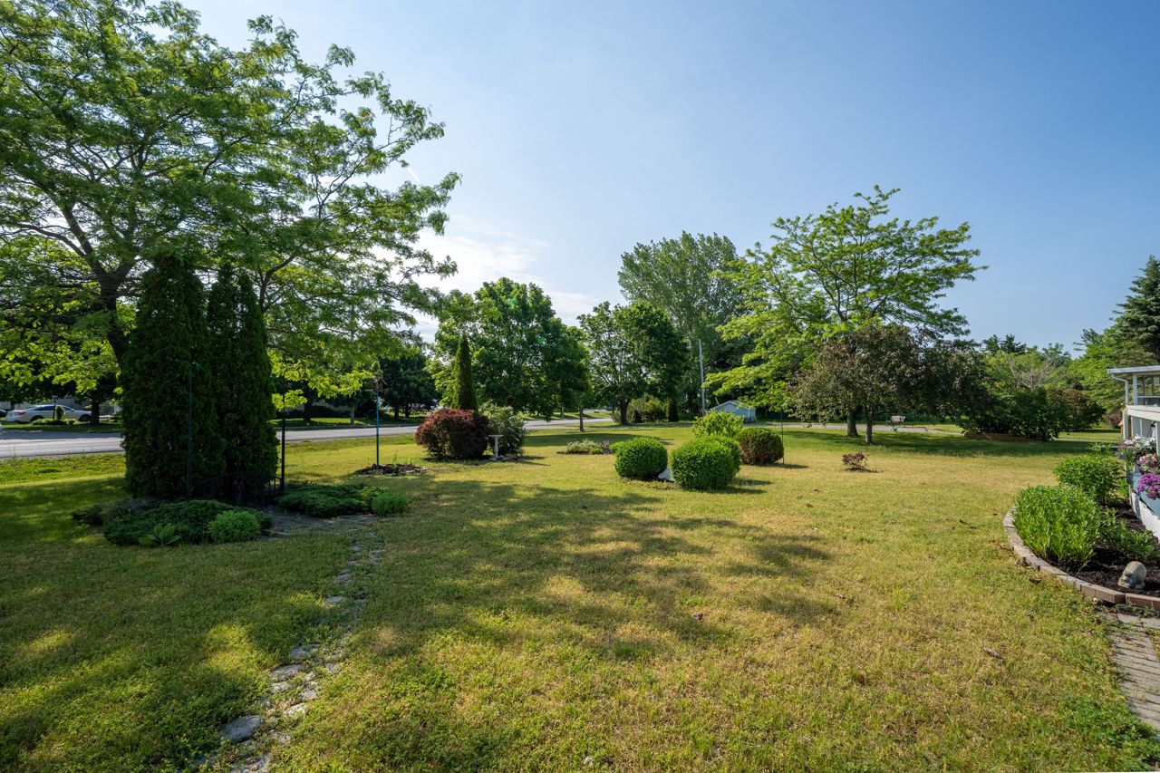EXIT TO THE COUNTY! TO THE ADULT LIFESTYLE COMMUNITY OF WELLINGTON ON THE LAKE. This home sits on land lease with a deep premium pie-shaped lot with seasonal views of Lake Ontario. It has 2 large bedrooms with walk-in closets, 2 generous size bathrooms, 2 living rooms and a gas fireplace, plus an enclosed sun porch and front and back deck. If you are ready to downsize and join an active community, this may be for you. You can be as busy as you want to be, join as many clubs as you want to, enjoy the heated pool and club house amenities. Wellington Golf Club is an easy stroll, as is the Millennium Trail which will take you right into the Village of Wellington.