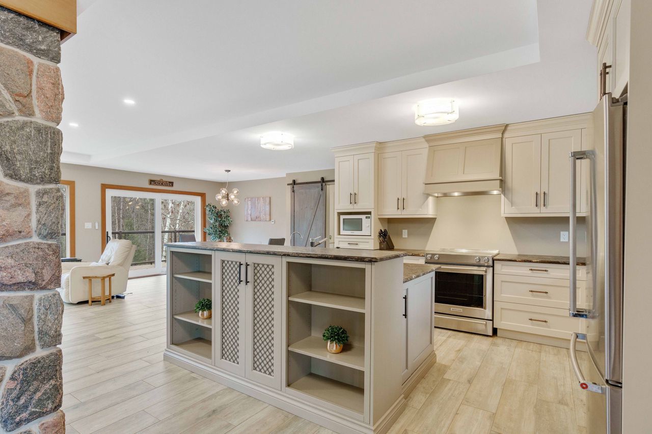 發現現代舒適與自然美景完美融合的迷人湖畔度假勝地。這處獨特的房產坐落在超過 3 英畝的私人、茂密的森林土地上,提供寧靜的隱居之地,距離城鎮和主要高速公路僅幾分鍾路程,非常適合家庭、周末度假者,或任何渴望更慢節奏生活,同時又不想離一切太遠的群體。您將擁有超過 200 英尺的湖岸線,可以欣賞到令人歎為觀止的 28 公裏水道,每天醒來都能看到如明信片般的景色。平靜、深邃的水域(超過 20 英尺!)非常適合遊泳、槳板、皮劃艇、獨木舟,或跳上您的浮動船隻進行輕鬆的巡遊。一個 24' x 16' 的大型碼頭已準備好迎接您的湖畔探險,由於 10 公裏/小時的限速和受保護的海岸線,河流對岸沒有開發,您的寧靜感將長久停留。內部的房屋已完全重新設計,采用一流的材料,確保持久的品質和安心。兩層樓的落地窗讓整個空間充滿自然光線,並享有開闊的河景,周圍的鬆樹和杉樹營造出完全的私密性,無需窗簾。享受整個區域的輻射地暖和自動空調,全年舒適宜人。距離迷人的 Washago 村莊僅 2 公裏,您可以步行或騎自行車欣賞風景如畫的加拿大東西海岸步道,到達商店、公園和船場。安靜的死胡同路讓您感覺像真正的逃離,但您仍然距離 Orelia 和 Gravenhurst 的餐飲、娛樂和購物場所很近。無論您是在尋找一年四季的住所、周末度假勝地,還是開始新篇章的寧靜場所,這處獨一無二的房產在隱私、自然和現代豪華之間實現了完美的平衡。 (圖片顯示房屋已布置好。)