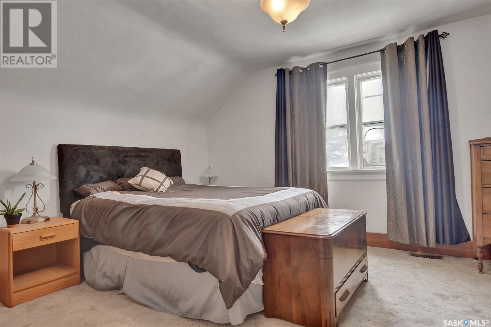 At 96 years young this one and a half storey piece of history is ready for a new family to call it home. It has a fantastic location close to downtown Regina, Wascana Park, schools, and transit. Step inside and you will instantly notice how spacious the main floor is. The original porch was opened up giving you a large living room, dining area and flex space that won't leave you feeling cramped. The kitchen has oak cabinets for storage and it includes the fridge, stove, and built-in dishwasher. A unique feature of this character home is the main floor den and the 3 piece bathroom. On the second level there are two ample sized bedrooms and an additional 3 piece bathroom. Plus, the primary bedroom has a surprising amount of built-in storage and closet space. Laundry and extra storage room can be found in the basement. The rear yard is fully fenced with a deck and garden area. The rear gate swings open to provide access to the two car concrete parking pad. The shingles were replaced in 2009. (id:22211)