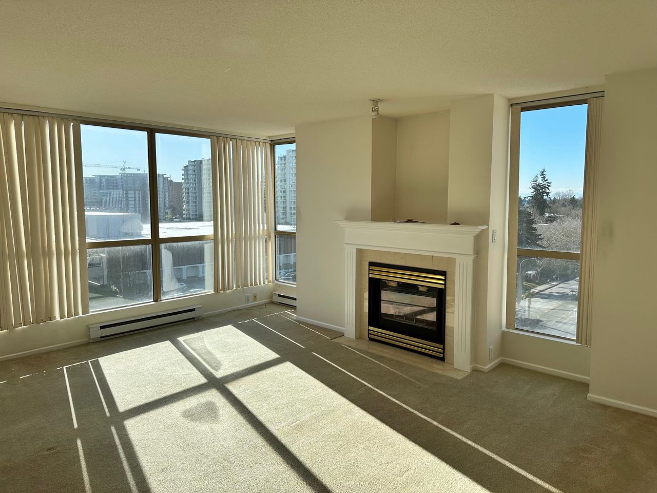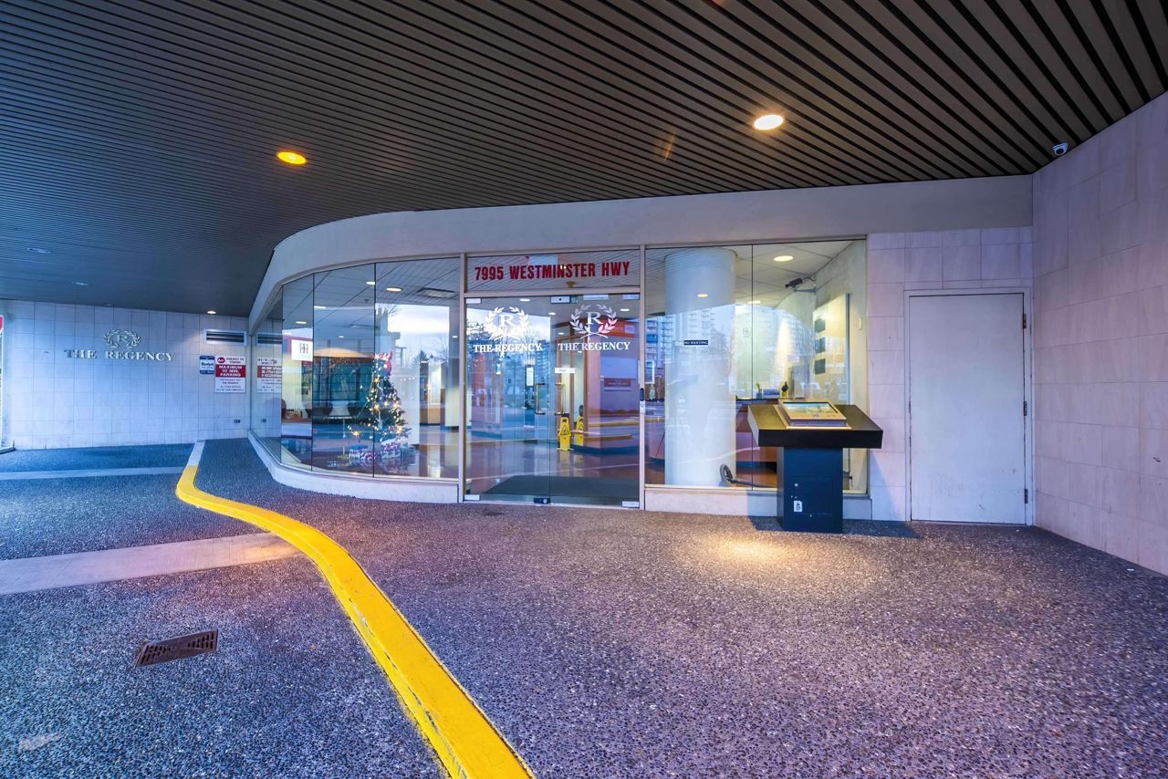 The Regency tower at No. 3 Road & Westminster Hwy. Most convenient location in Richmond close to all the shopping, services, community Centre and Skytrain. This 6th floor VERY SPACIOUS (1073 square feet) 2 bedroom, 2 full bath condo is in clean and move-in shape. Corner unit, open floor plan, floor to ceiling windows. Low Strata Fee of only $339.35. Two large bedrooms, two full bathrooms, 2 secured parking spots, in-suite laundry, gas fireplace. South, east and west views on the 6th floor where you are above the neighboring buildings. The Regency offers on site Concierge service and a large community room available to residents for meetings and functions. Immediate occupancy is possible. Investors can choose their own tenant at market rent. Compare and you will see great value here!
