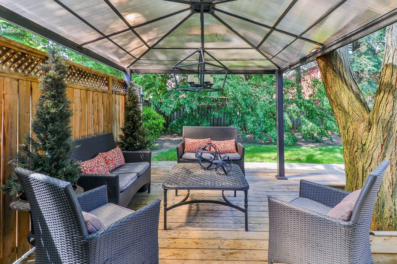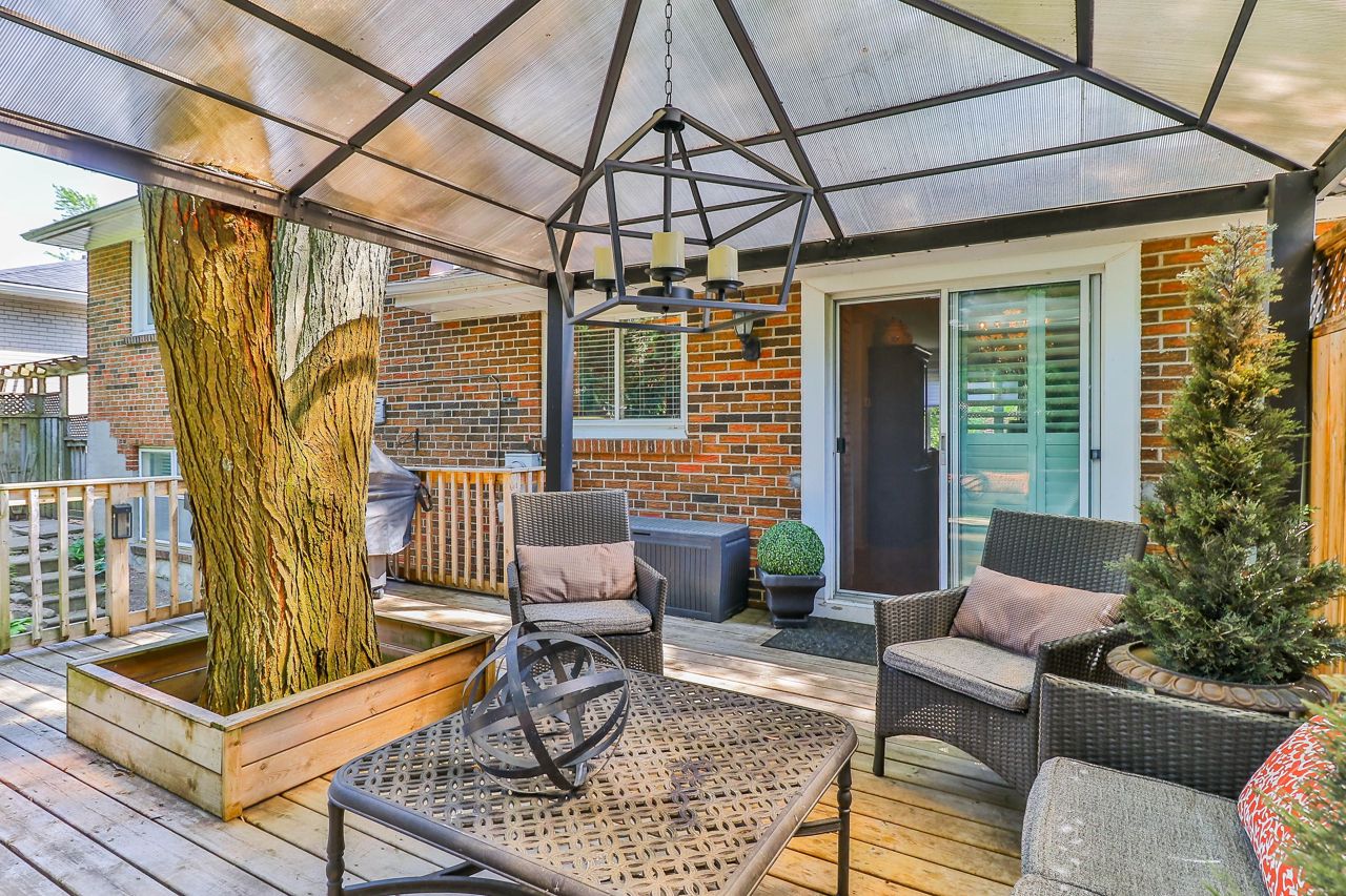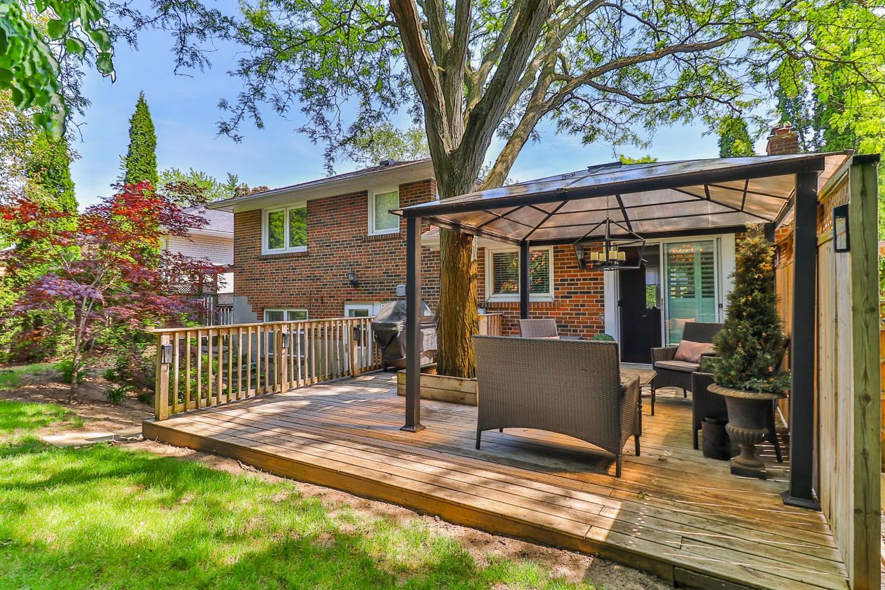 This beautiful, well maintained home located in the Mill Pond area close to schools, parks and steps to Yonge street is a must see. Home is nestled on a mature lot with a backyard oasis and a fenced in yard. Yard professionally maintained and trees pruned and inspected. Move right in to this 3 bedroom plus den, 2 bathroom home. The den is currently used as a work from home space and has a 3 piece ensuite and walk-out to yard. Hardwood floors throughout. Stainless steel appliances, stone counter top and pot lights in the upgraded kitchen. Roof was replaced 2018. New Furnace this year. Chimney and rain/liner caps replaced August 2021. Basement is finished with hardwood and surround sound speakers.Existing fridge, stove, B/I dishwasher 2018, B/I microwave. Clothes washer and dryer 2018, B/I bookcase in office. Gazebo, shed. Gas fireplace. Gas line to the stove. All electrical light fixtures. All blinds.