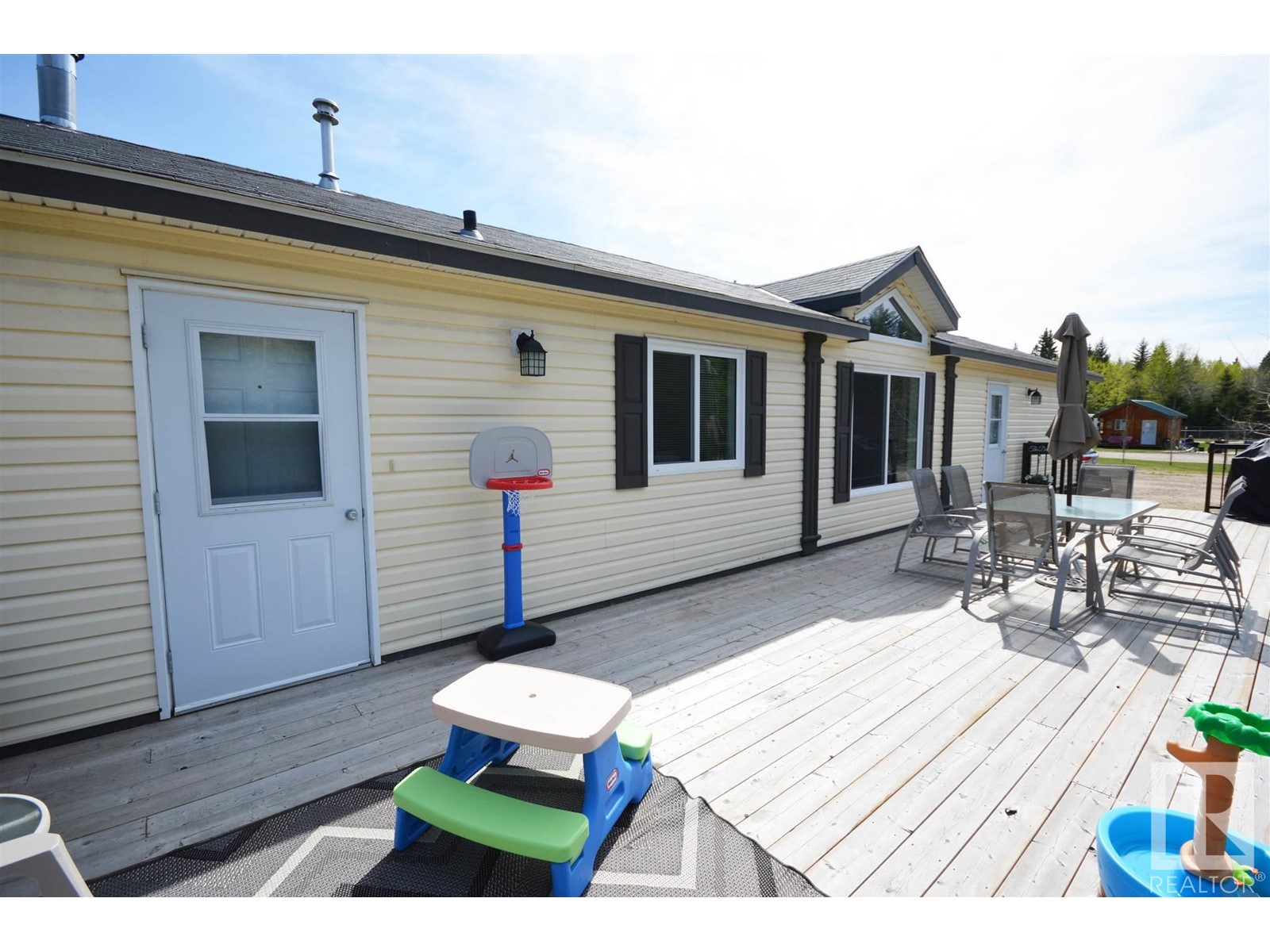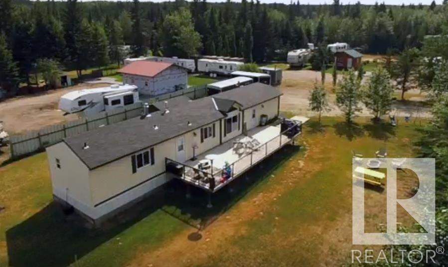 Enjoy Quiet, Relaxing Surroundings at Crane Lake! A winner for the beginner! This great home on half an acre features a bright open living room with vaulted ceiling, built in entertainment unit and laminate flooring. The modern designed kitchen has tons of dark rich cabinetry, pantry, skylights and good sized dining area with built in hutch. 3 bedrooms and 2 baths including a master suite with larger closet, make-up vanity/ desk and 4 pc ensuite with soaker tub and extra storage. The massive deck with no maintenance railings overlooks the nicely landscaped yard with mature trees, patio, shed and extra parking. Corner lot is right across from lake public access for boating, fishing, swimming and so much more. This area is made for enjoyment with quadding/ snowmobiling trails galore. Half way between Bonnyville and Cold Lake! Looking for a peaceful, private place to call your own? This price will MOVE you! (id:22211)