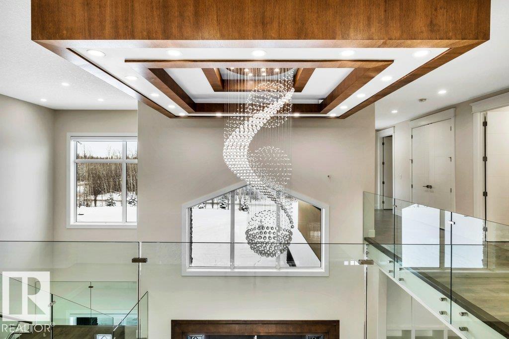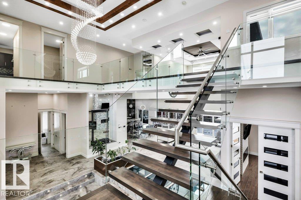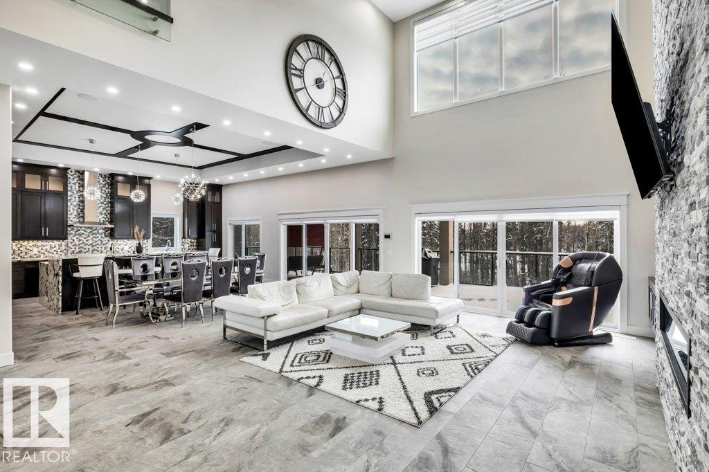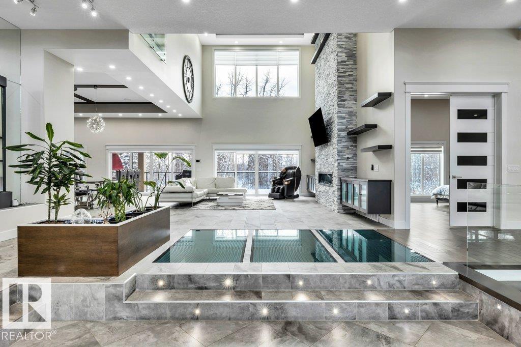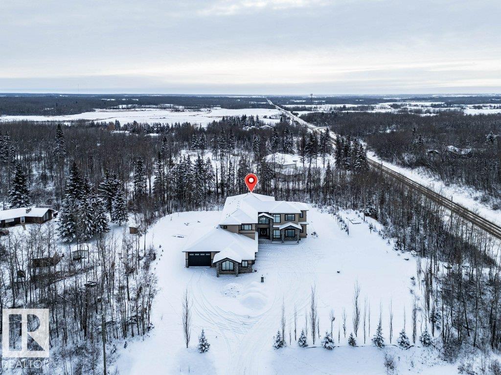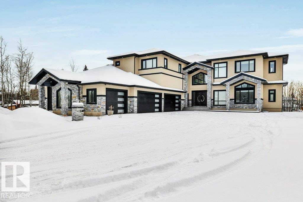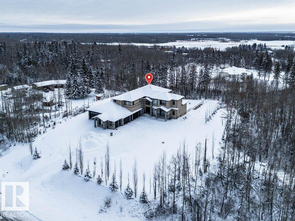This STUNNING CUSTOM-BUILT MANSION boasts 5667+2780 sqft of living space, 5+1 bdrms, 9 baths, FULLY finished WALKOUT bsmnt & 5GATT, all situated on over 2.1 acres minutes Sherwood Park. One-of-a-kind glass floor welcomes you at the foyer leading to the main floor w/ IN-FLOOR HEAT, vaulted ceilings & exquisite details! Floor to ceiling quartz feature wall w/ fireplace in the adjacent family rm! Enjoy your dream ISLAND KITCHEN w/ WOLF appliances, granite counters & maple cabinets. ENJOY THE GREEN VIEW & the HUGE TREE-LINED backyard. The main floor is completed w/ the formal living rm, FIRST MASTER w/ ensuite, laundry & 2 pce bath. The modern glass & wood staircase brings you to the upper level w/ SECOND MASTER feat stunning 6 pce ensuite. 3 add bdrms each w/ their own ensuite & WIC & 2nd laundry finish the upper level. The WALKOUT BASEMENT w/ IN-FLOOR HEAT holds 1 bdrm w/ ensuite, flex rm, theatre, bar, 2 pce bath & HUGE rec space. NEWLY REPLACED SEPTIC TANK MOTOR, WELL SYSTEM & WATER SOFTENER from 2023!