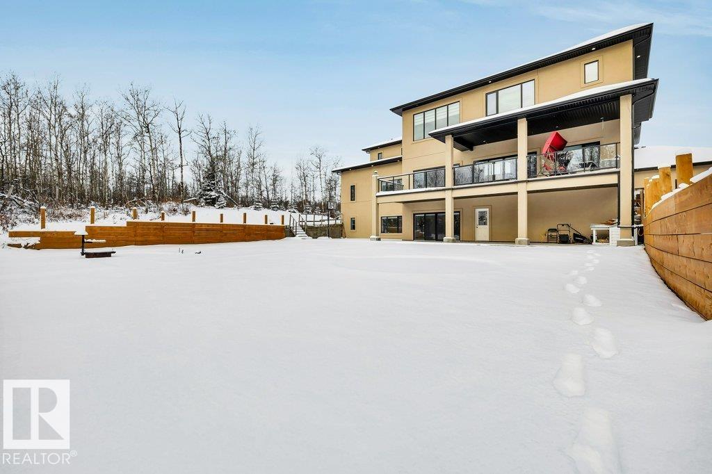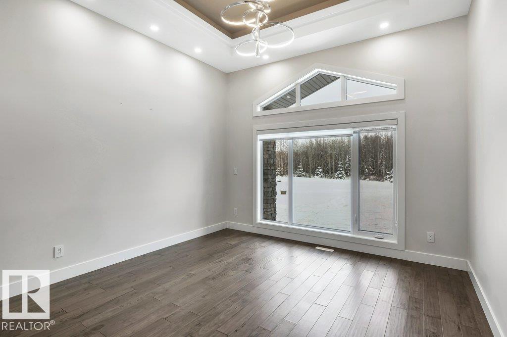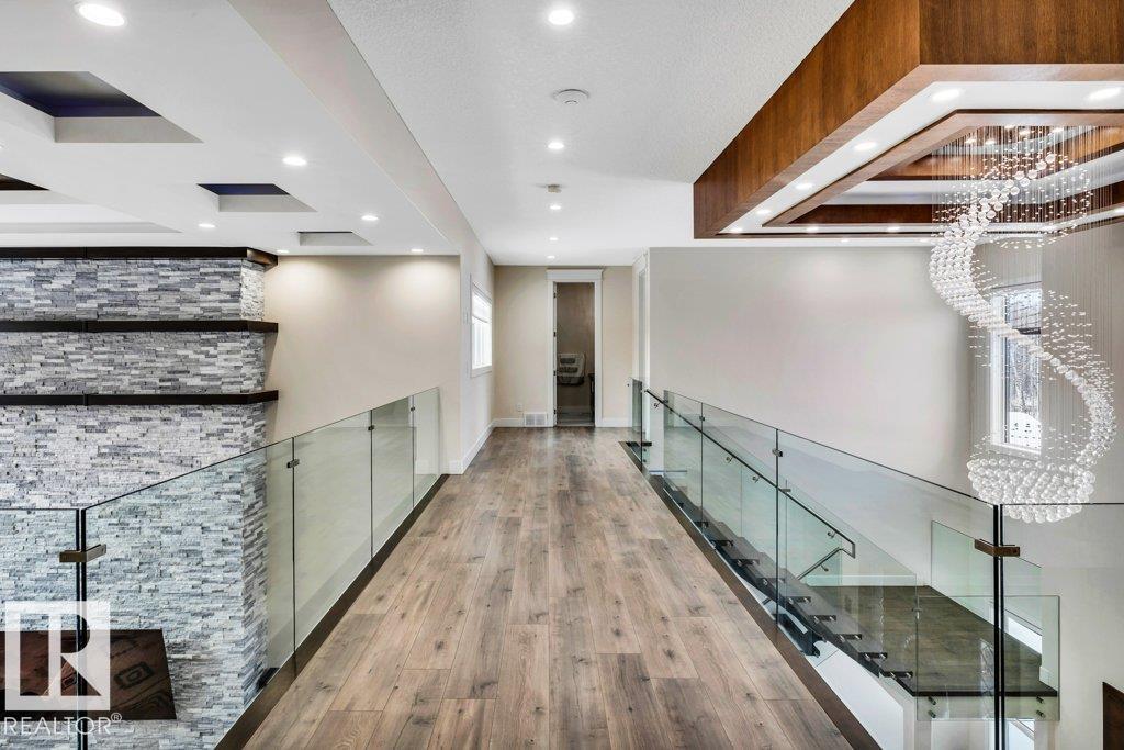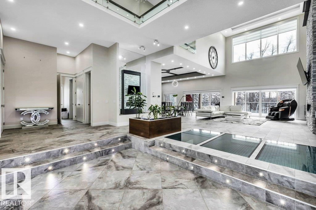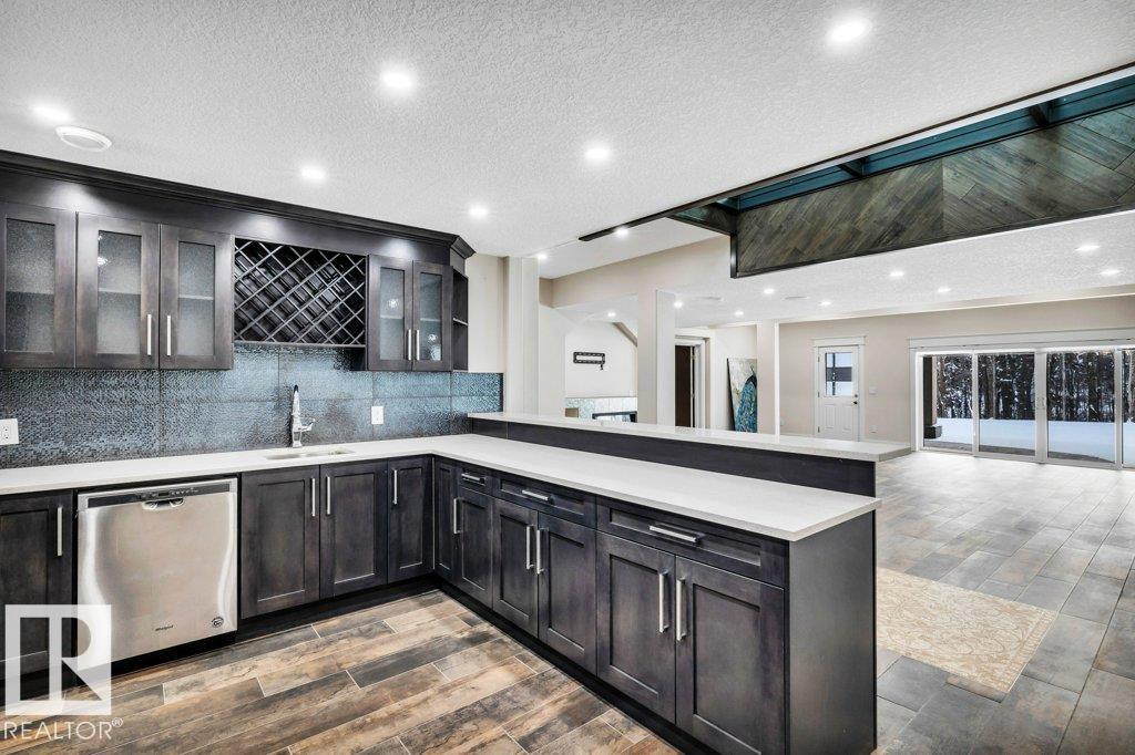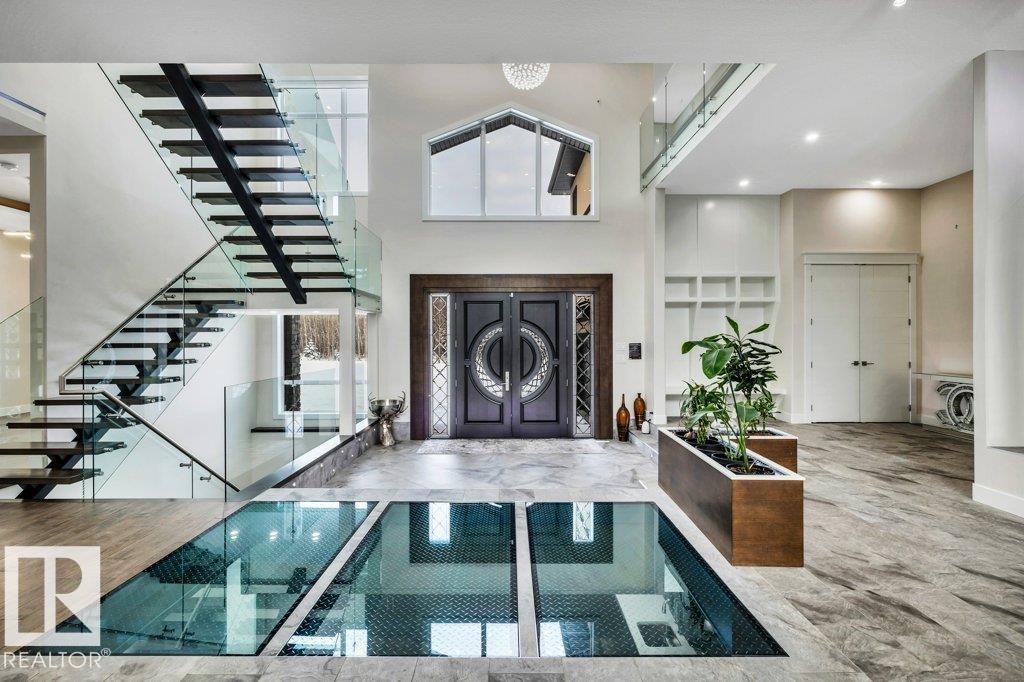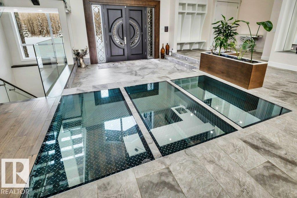 This STUNNING CUSTOM-BUILT MANSION boasts 5667+2780 sqft of living space, 5+1 bdrms, 9 baths, FULLY finished WALKOUT bsmnt & 5GATT, all situated on over 2.1 acres minutes Sherwood Park. One-of-a-kind glass floor welcomes you at the foyer leading to the main floor w/ IN-FLOOR HEAT, vaulted ceilings & exquisite details! Floor to ceiling quartz feature wall w/ fireplace in the adjacent family rm! Enjoy your dream ISLAND KITCHEN w/ WOLF appliances, granite counters & maple cabinets. ENJOY THE GREEN VIEW & the HUGE TREE-LINED backyard. The main floor is completed w/ the formal living rm, FIRST MASTER w/ ensuite, laundry & 2 pce bath. The modern glass & wood staircase brings you to the upper level w/ SECOND MASTER feat stunning 6 pce ensuite. 3 add bdrms each w/ their own ensuite & WIC & 2nd laundry finish the upper level. The WALKOUT BASEMENT w/ IN-FLOOR HEAT holds 1 bdrm w/ ensuite, flex rm, theatre, bar, 2 pce bath & HUGE rec space. NEWLY REPLACED SEPTIC TANK MOTOR, WELL SYSTEM & WATER SOFTENER from 2023!