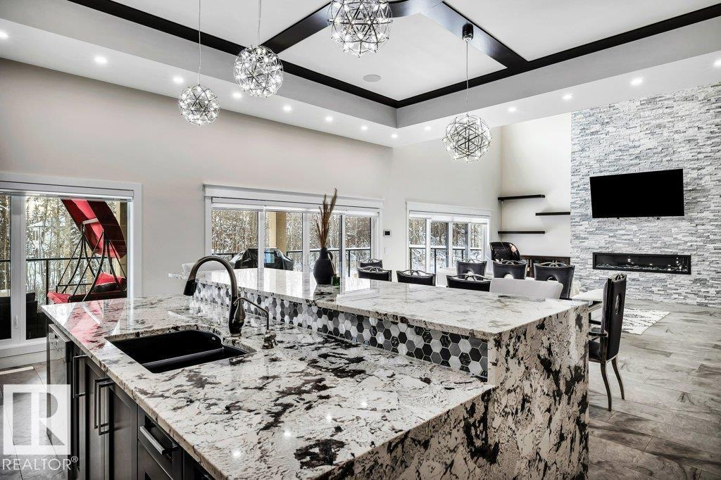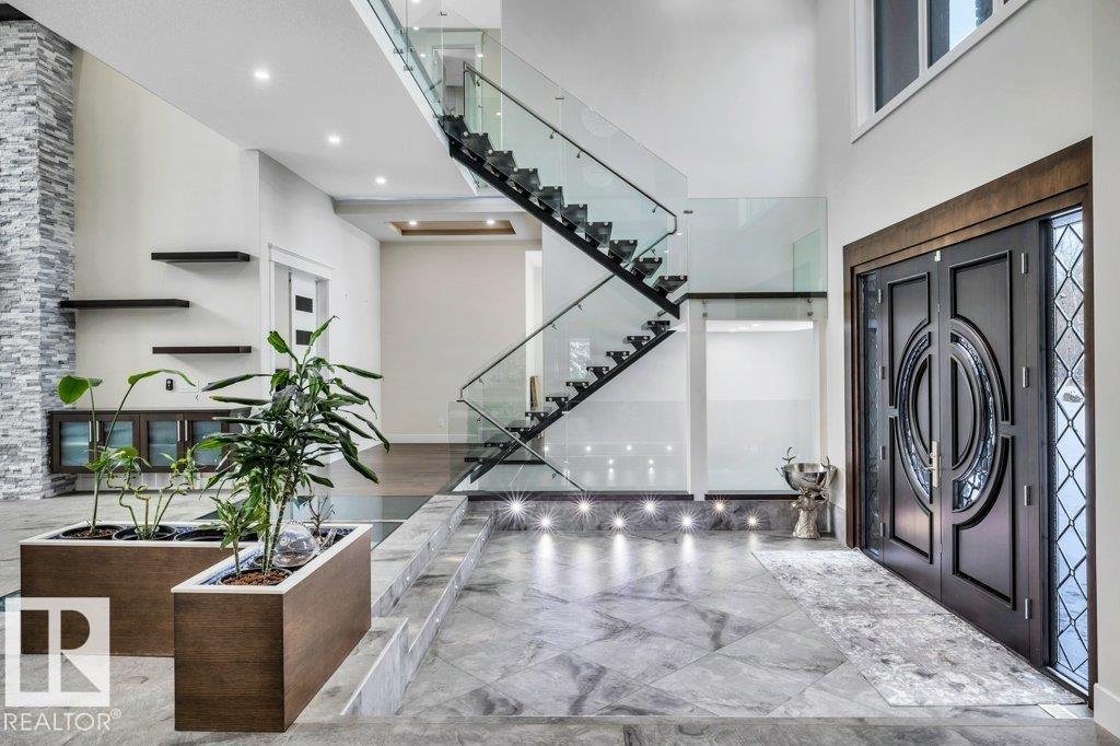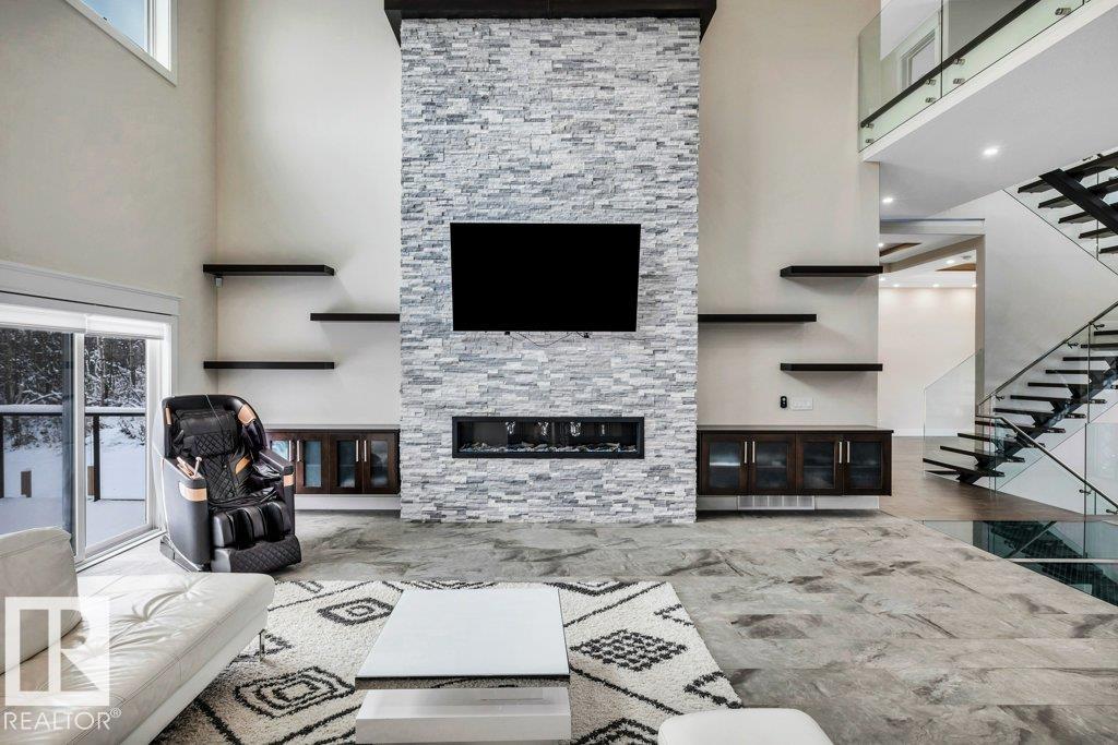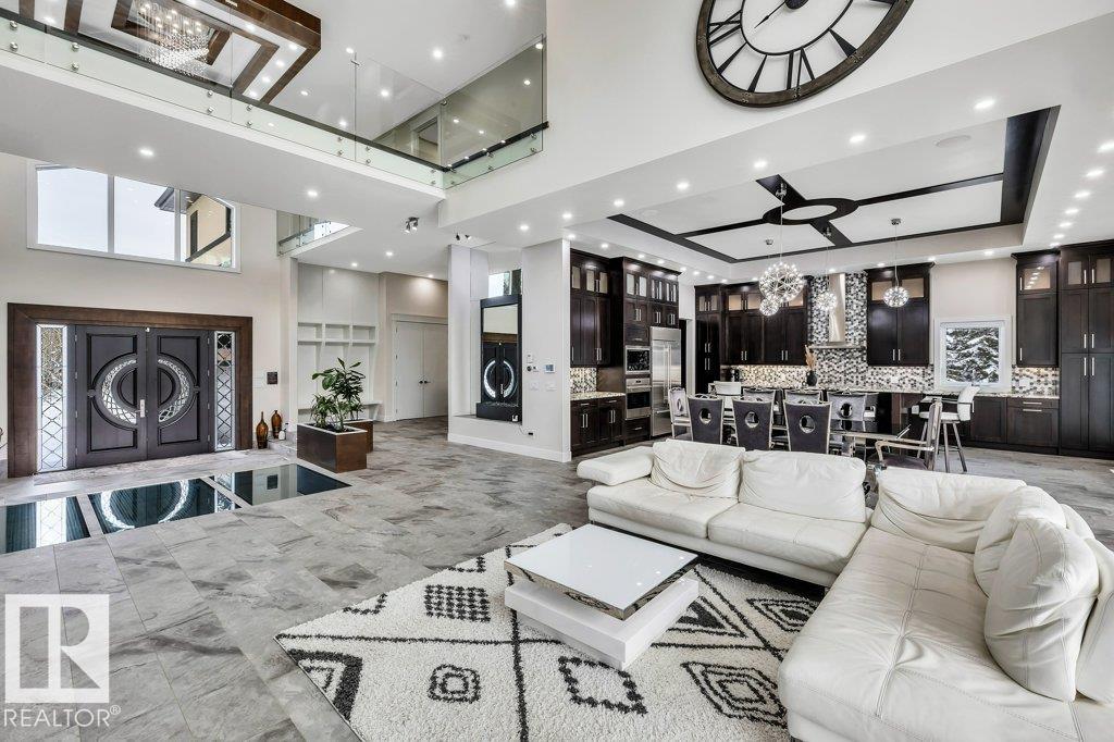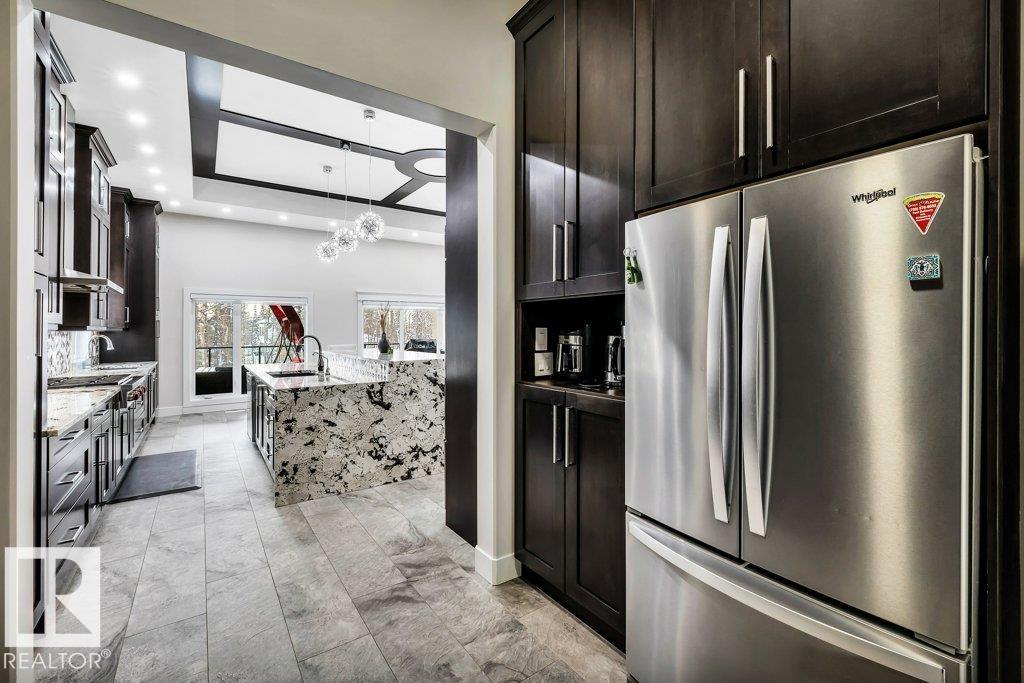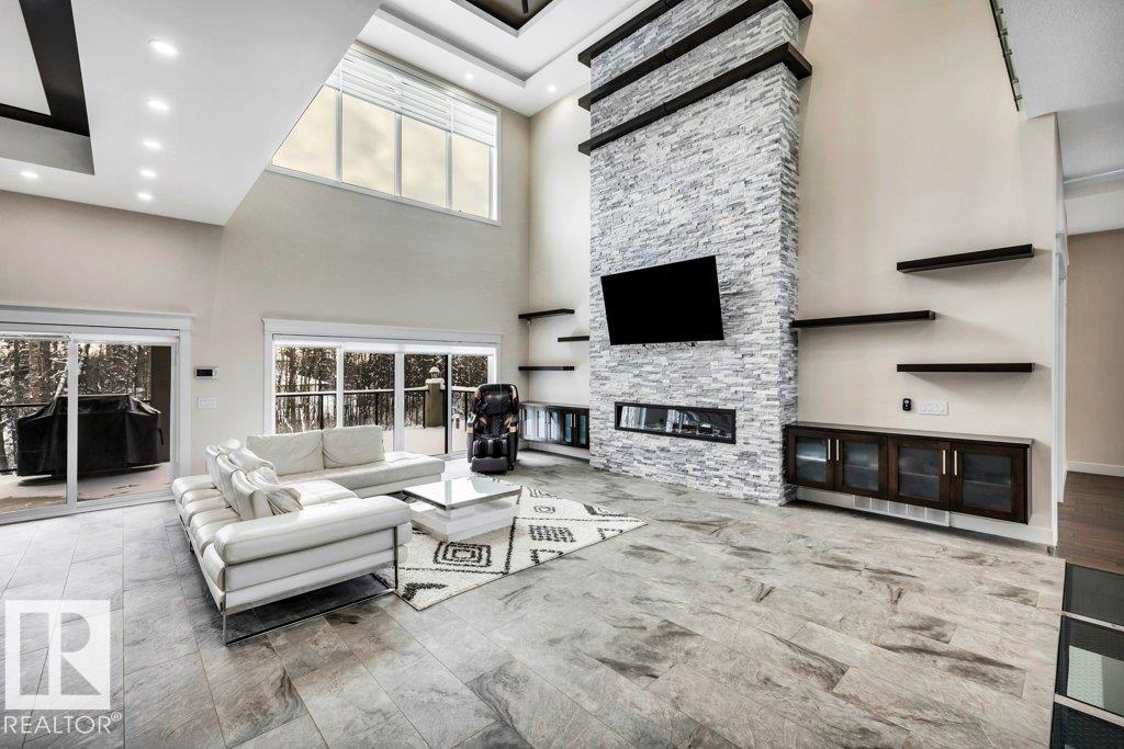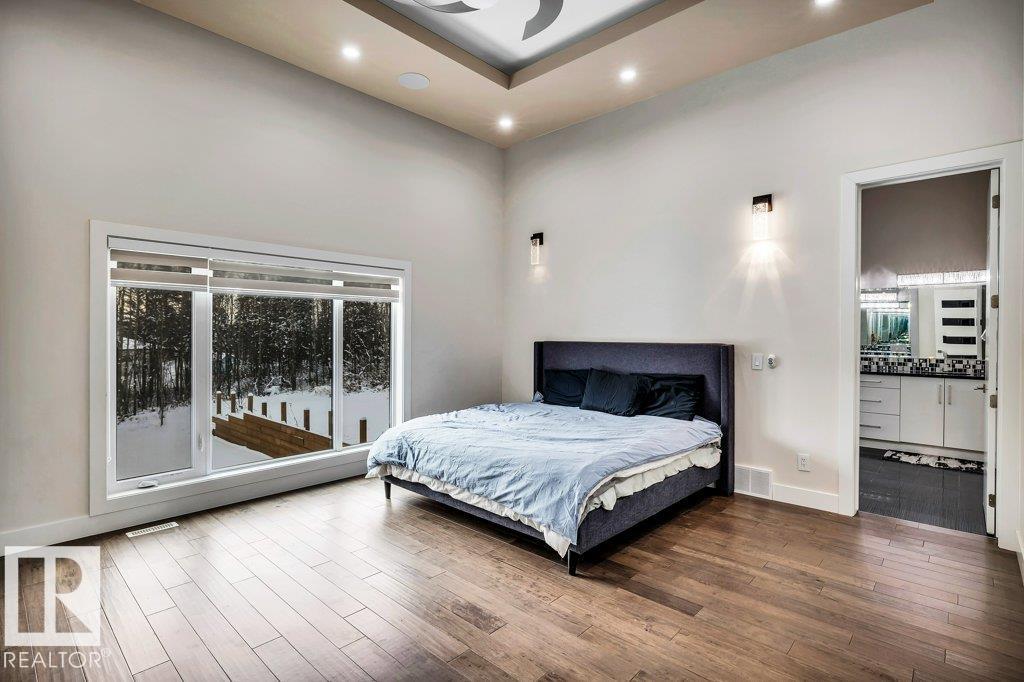 This STUNNING CUSTOM-BUILT MANSION boasts 5667+2780 sqft of living space, 5+1 bdrms, 9 baths, FULLY finished WALKOUT bsmnt & 5GATT, all situated on over 2.1 acres minutes Sherwood Park. One-of-a-kind glass floor welcomes you at the foyer leading to the main floor w/ IN-FLOOR HEAT, vaulted ceilings & exquisite details! Floor to ceiling quartz feature wall w/ fireplace in the adjacent family rm! Enjoy your dream ISLAND KITCHEN w/ WOLF appliances, granite counters & maple cabinets. ENJOY THE GREEN VIEW & the HUGE TREE-LINED backyard. The main floor is completed w/ the formal living rm, FIRST MASTER w/ ensuite, laundry & 2 pce bath. The modern glass & wood staircase brings you to the upper level w/ SECOND MASTER feat stunning 6 pce ensuite. 3 add bdrms each w/ their own ensuite & WIC & 2nd laundry finish the upper level. The WALKOUT BASEMENT w/ IN-FLOOR HEAT holds 1 bdrm w/ ensuite, flex rm, theatre, bar, 2 pce bath & HUGE rec space. NEWLY REPLACED SEPTIC TANK MOTOR, WELL SYSTEM & WATER SOFTENER from 2023!