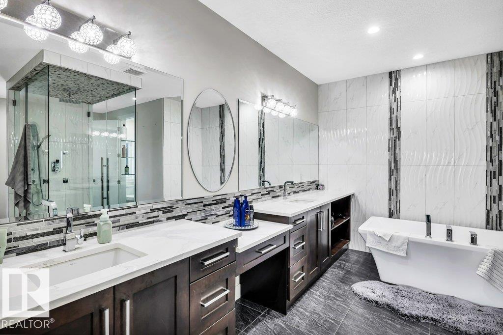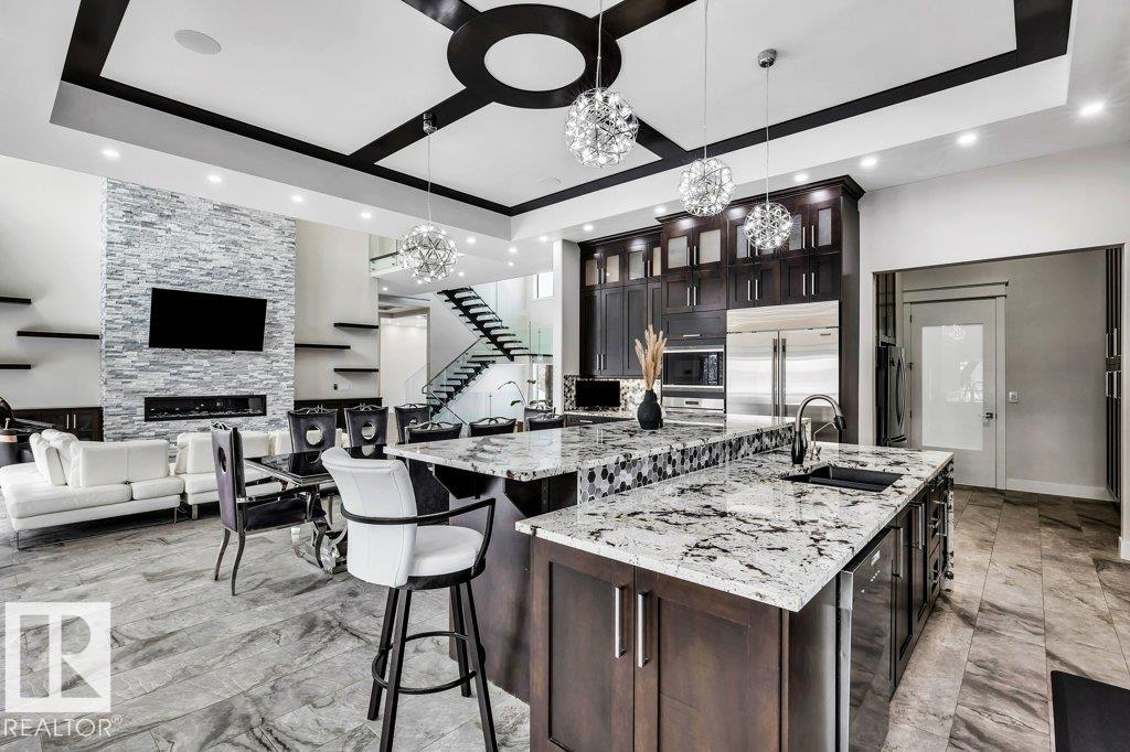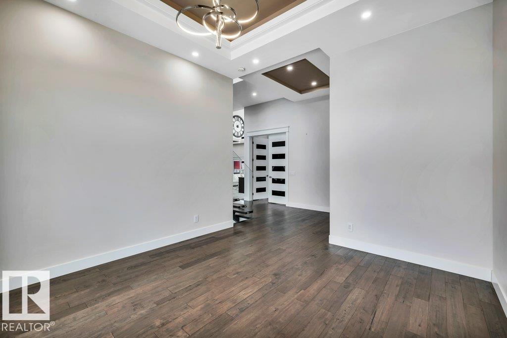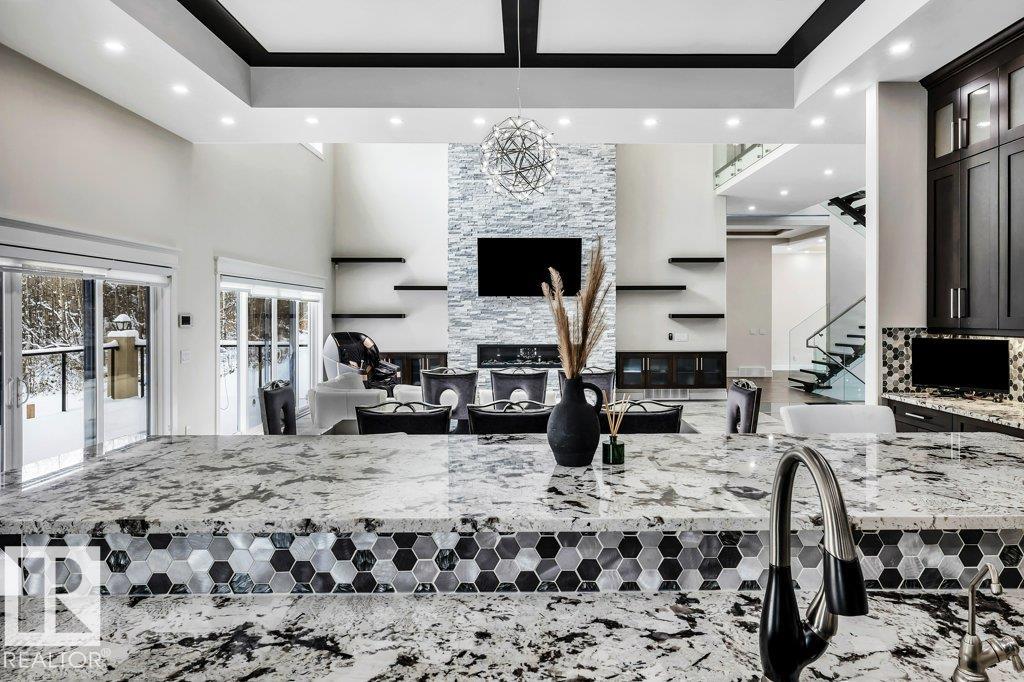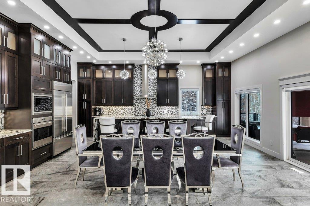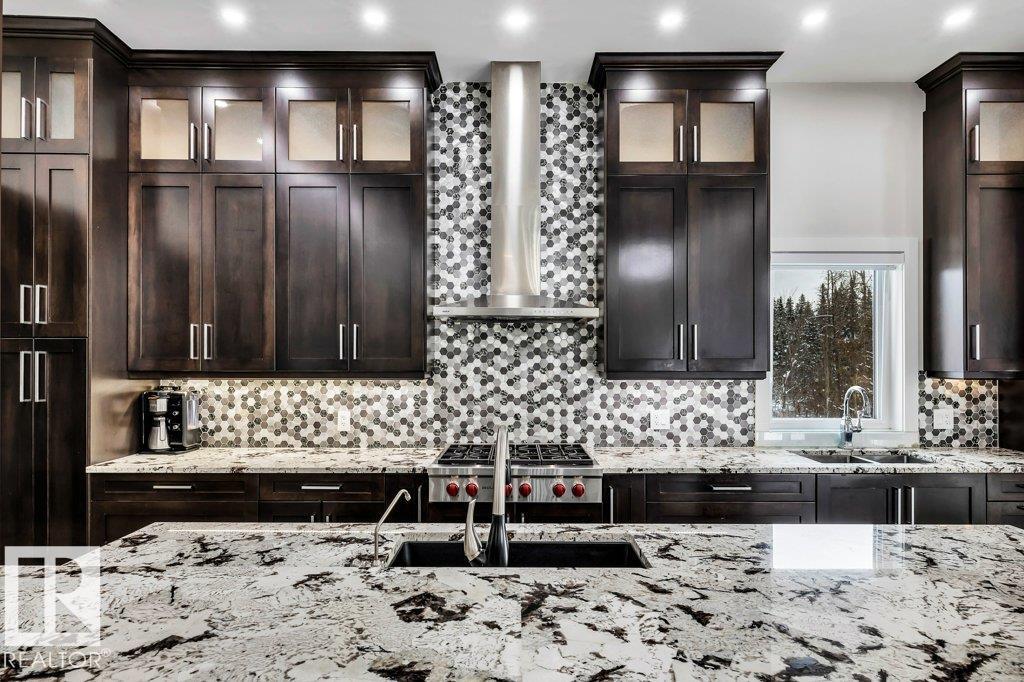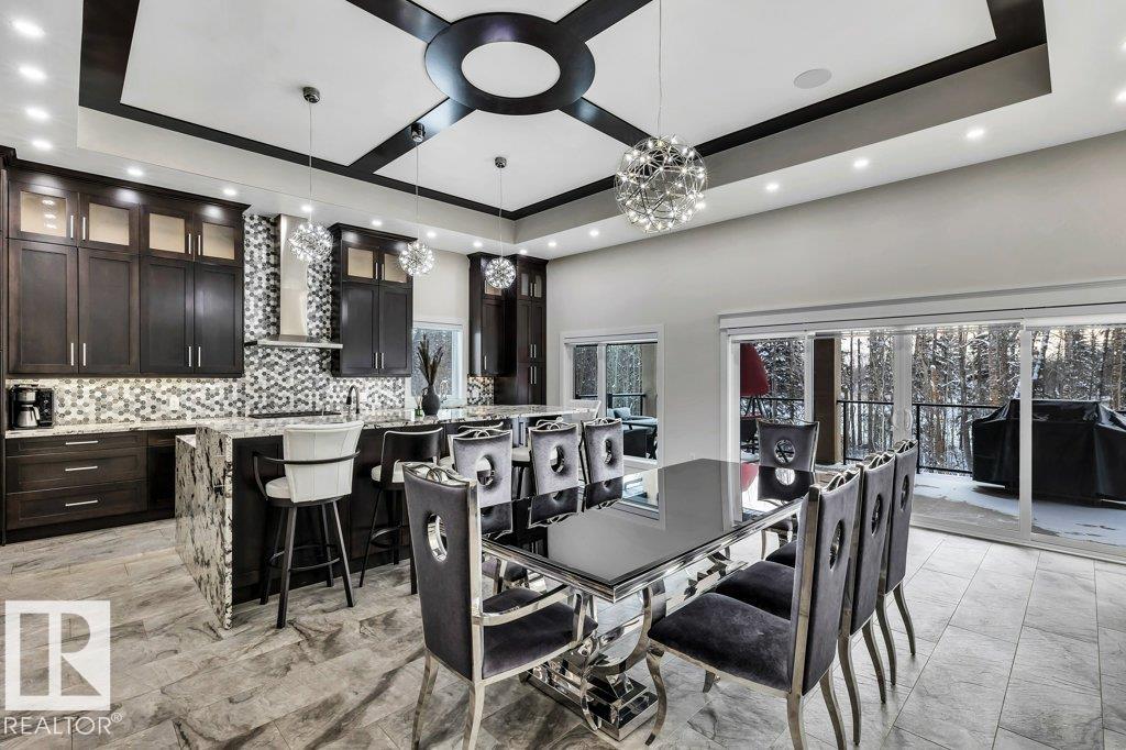 This STUNNING CUSTOM-BUILT MANSION boasts 5667+2780 sqft of living space, 5+1 bdrms, 9 baths, FULLY finished WALKOUT bsmnt & 5GATT, all situated on over 2.1 acres minutes Sherwood Park. One-of-a-kind glass floor welcomes you at the foyer leading to the main floor w/ IN-FLOOR HEAT, vaulted ceilings & exquisite details! Floor to ceiling quartz feature wall w/ fireplace in the adjacent family rm! Enjoy your dream ISLAND KITCHEN w/ WOLF appliances, granite counters & maple cabinets. ENJOY THE GREEN VIEW & the HUGE TREE-LINED backyard. The main floor is completed w/ the formal living rm, FIRST MASTER w/ ensuite, laundry & 2 pce bath. The modern glass & wood staircase brings you to the upper level w/ SECOND MASTER feat stunning 6 pce ensuite. 3 add bdrms each w/ their own ensuite & WIC & 2nd laundry finish the upper level. The WALKOUT BASEMENT w/ IN-FLOOR HEAT holds 1 bdrm w/ ensuite, flex rm, theatre, bar, 2 pce bath & HUGE rec space. NEWLY REPLACED SEPTIC TANK MOTOR, WELL SYSTEM & WATER SOFTENER from 2023!