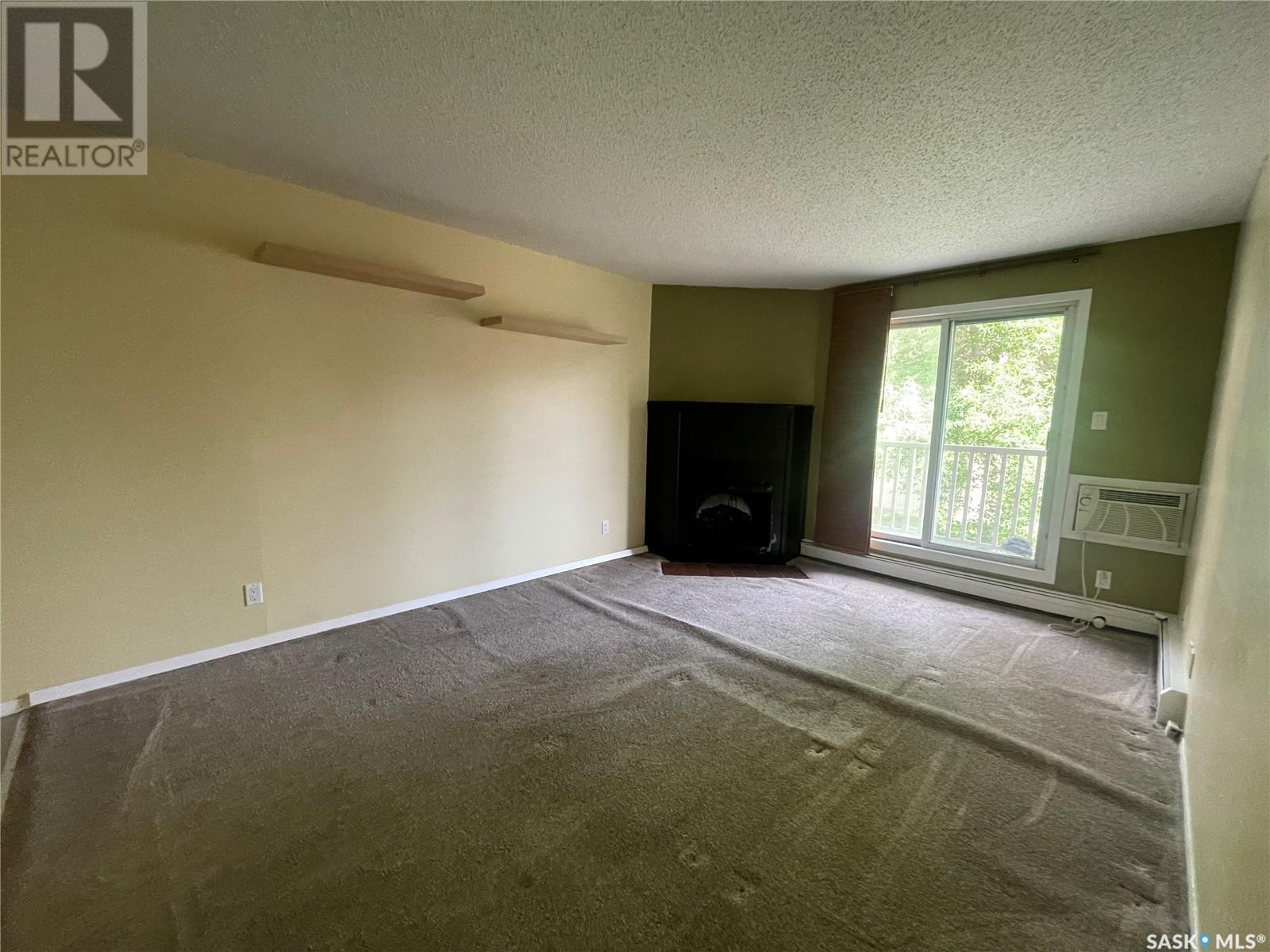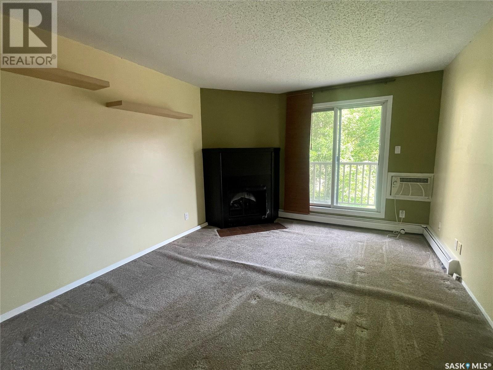 This condo features 2 bedrooms, 1 bathroom, large balcony with storage green space views. Updates over the years include vinyl tile in kitchen and bathroom, updated bathroom, carpets, wall air-conditioning unit, washer and dryer and more. This unit includes one electrified surface parking stall conveniently located near the front entrance doors. Additional stall may be available to rent. All appliances and window coverings included. Close to all amenities, shopping, grocery and transit. Buyer/Buyer's agent to verify all measurements. Call to book a showing today. (id:22211)