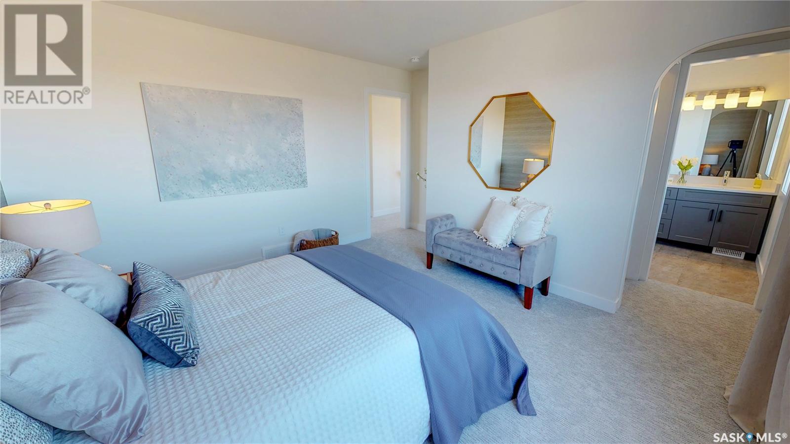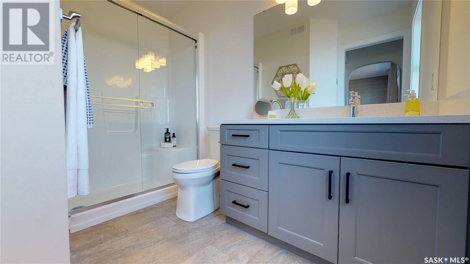 The Lincoln. This open concept 2 Storey, 1,530 Sq.Ft. home with 3 Beds and 2.5 Baths is one of our most popular floor plans. The Lincoln Suite home offers the option of developing a legal basement suite of 504 Sq. Ft. with 1 Bed, 1 Bath and separate laundry. The main floor hosts a kitchen that boasts modern cabinetry, an eat-at island, and a large pantry. As well as the main floor laundry room, and a 2pc bathroom Enjoy the upgraded finish package with 4" flat baseboards and 3" flat casings that is throughout your new home. The second floor brings you to the spacious master bedroom, with a walk-in closet and en-suite, USB plug-ins and TV cables are in each bedroom. Other upgrades included a nest Thermostat that helps you keep make sure that you can be as energy-efficient as possible. This home features an upgraded craftsman exterior and a double attached garage. Basement suite development not included in price. All North Prairie homes are covered under the Saskatchewan New Home Warranty program. PST and GST included in purchase price with rebate to builder. Pictures may not be exact representations of the unit, used for reference purposes only. (id:22211)