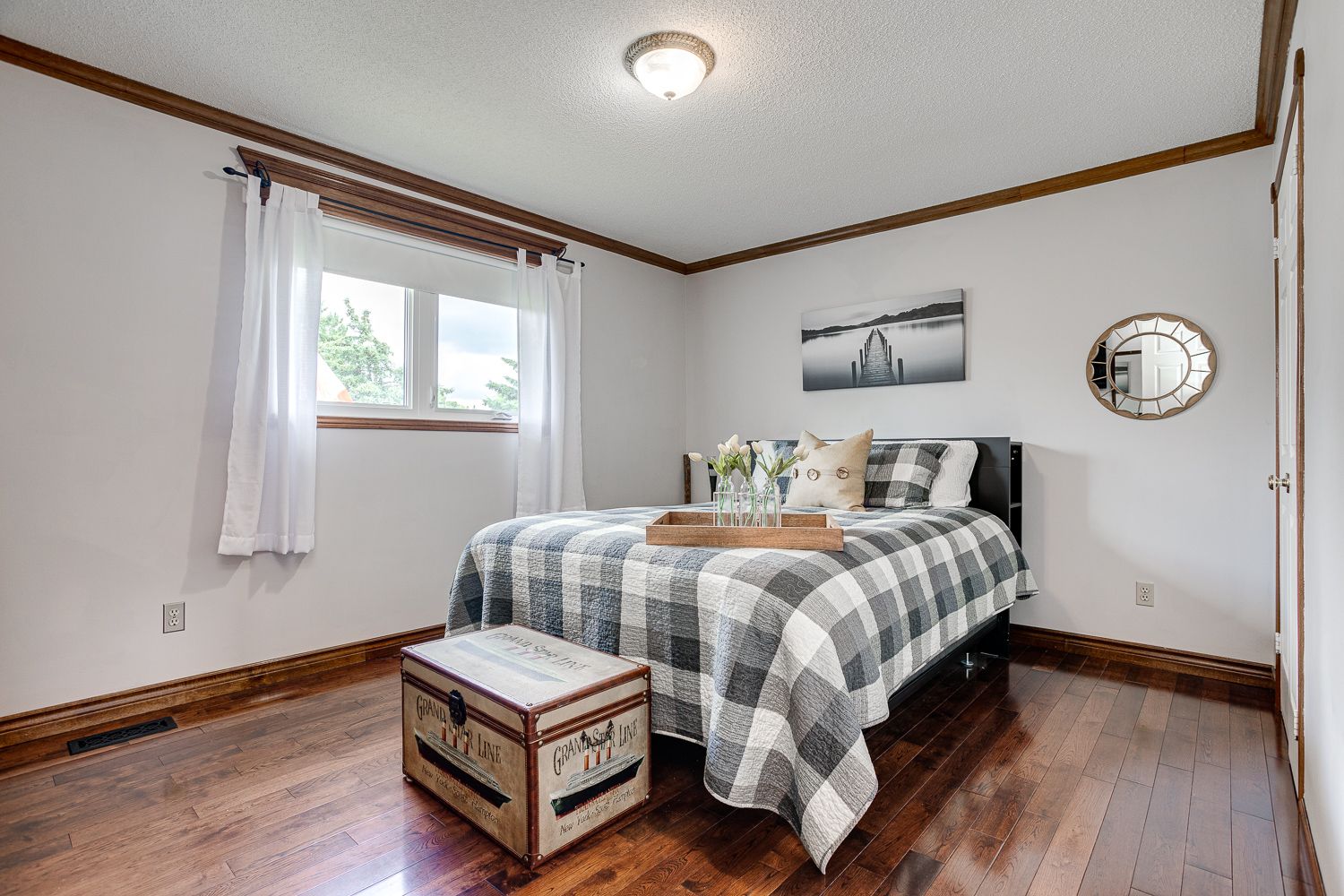 Exceptional 3 Bedroom all brick in town bungalow! Short walk to Stores, shops, restaurants and pubs of Port Perry! Enjoy the parks, marina and walking trails along lake Scugog!. This family sized home offers all the bells and whistles including large living room with hardwood floor, gas fireplace, bay window and open to dining area with W/out to deck and rear yard. Spacious work-in Kitchen with granite counters and tile flooring. 3 large bedrooms with hardwood flooring and excellent closet space. Large bright lower level Rec room laminate flooring, lower level updated 4 pcs bathroom with heated floor, direct entry into the home from 20x18 insulated double garage. Multiple updated features include: furnace and A/C, water softener, Nest outdoor security camera, thermostat and door bell, california shutters, tile and hardwood flooring, garburator ,windows and doors, oversized paved driveway with parking for 6 cars, huge lower level workshop or studio area, fenced and hedged rear yard!This property shows an absolute "10" and is turn key ready for its new owner!