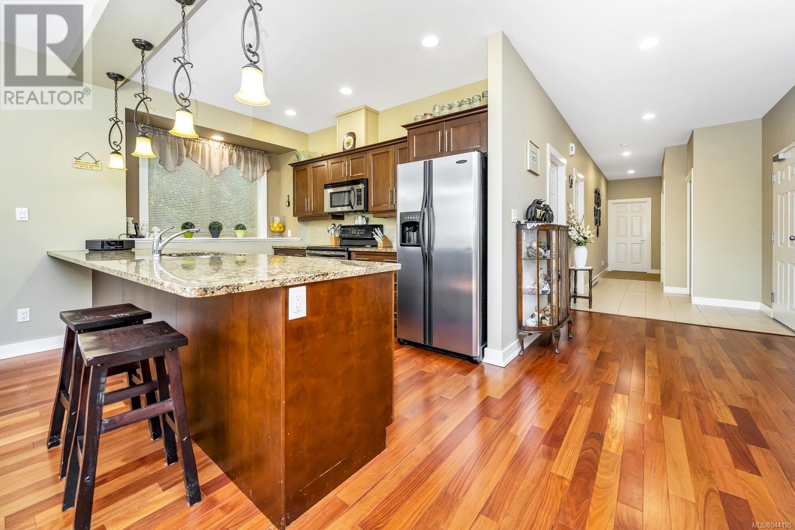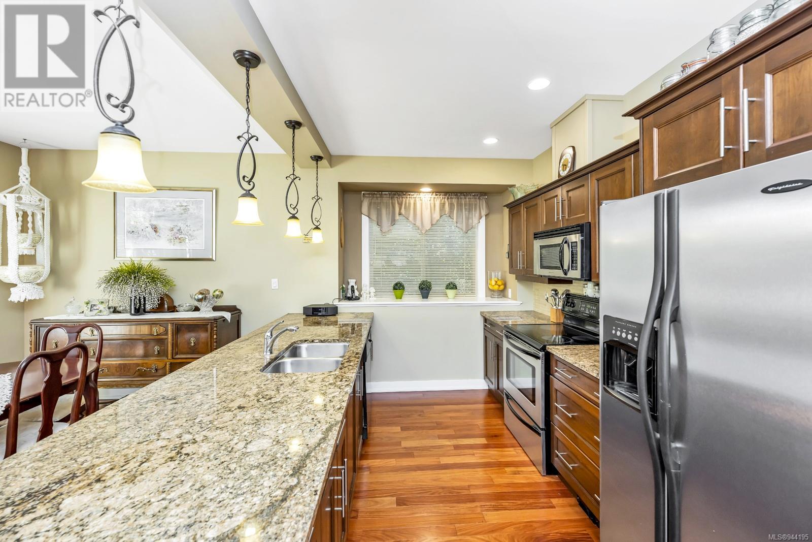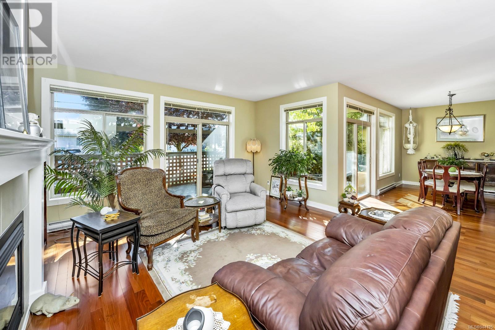 This LUXURY 3 BEDROOM/2BATHROOM, ONE LEVEL RANCHER style TOWNHOME in beautiful Sidney is available for a quick occupancy! Absolutely immaculate home with an open concept floorplan, sure to please. Beautiful kitchen w/granite eating bar open to the dining area...large living room w/cosy gas fireplace & pleasant garden patio views. Primary bdrm has a full ensuite offering a soaker tub, separate shower, heated floors. 9 ft ceilings, hardwood floors. Plenty of natural light from the oversized windows & two sets of sliders to access the large private patios... yes, 2 patio spaces surrounded by lush mature garden for absolute privacy! Attached single car garage plus a 2nd parking spot designated by strata! Spacious rooms & wide hallways make this unit wheelchair friendly. Bylaws allow for 1 dog or 1 cat, nat.gas BBQ, Rentals allowed. A high-end residence, located in a small strata complex- so much to offer! *all sqft approx-buyer verify if important- taken from floorplan & Strata plan. (id:22211)