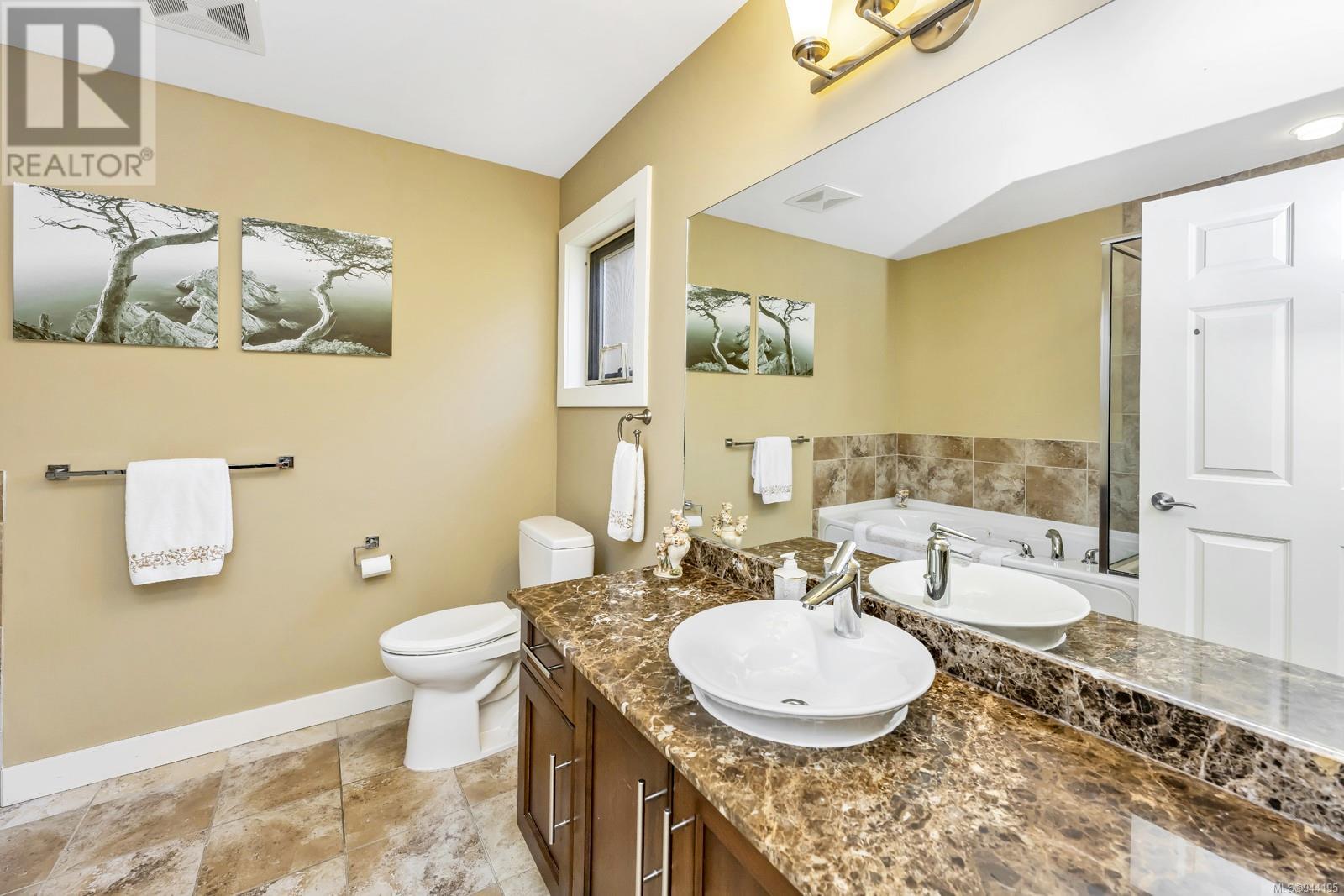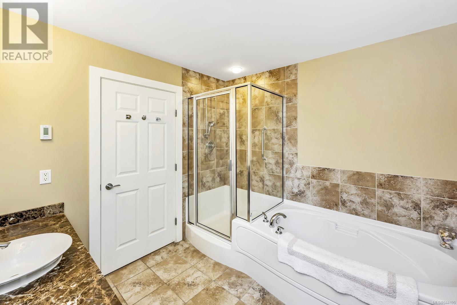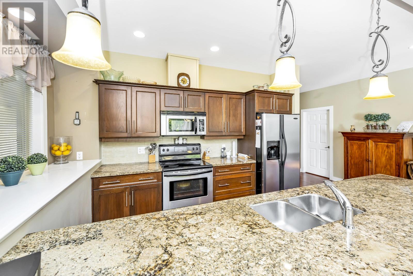 This LUXURY 3 BEDROOM/2BATHROOM, ONE LEVEL RANCHER style TOWNHOME in beautiful Sidney is available for a quick occupancy! Absolutely immaculate home with an open concept floorplan, sure to please. Beautiful kitchen w/granite eating bar open to the dining area...large living room w/cosy gas fireplace & pleasant garden patio views. Primary bdrm has a full ensuite offering a soaker tub, separate shower, heated floors. 9 ft ceilings, hardwood floors. Plenty of natural light from the oversized windows & two sets of sliders to access the large private patios... yes, 2 patio spaces surrounded by lush mature garden for absolute privacy! Attached single car garage plus a 2nd parking spot designated by strata! Spacious rooms & wide hallways make this unit wheelchair friendly. Bylaws allow for 1 dog or 1 cat, nat.gas BBQ, Rentals allowed. A high-end residence, located in a small strata complex- so much to offer! *all sqft approx-buyer verify if important- taken from floorplan & Strata plan. (id:22211)