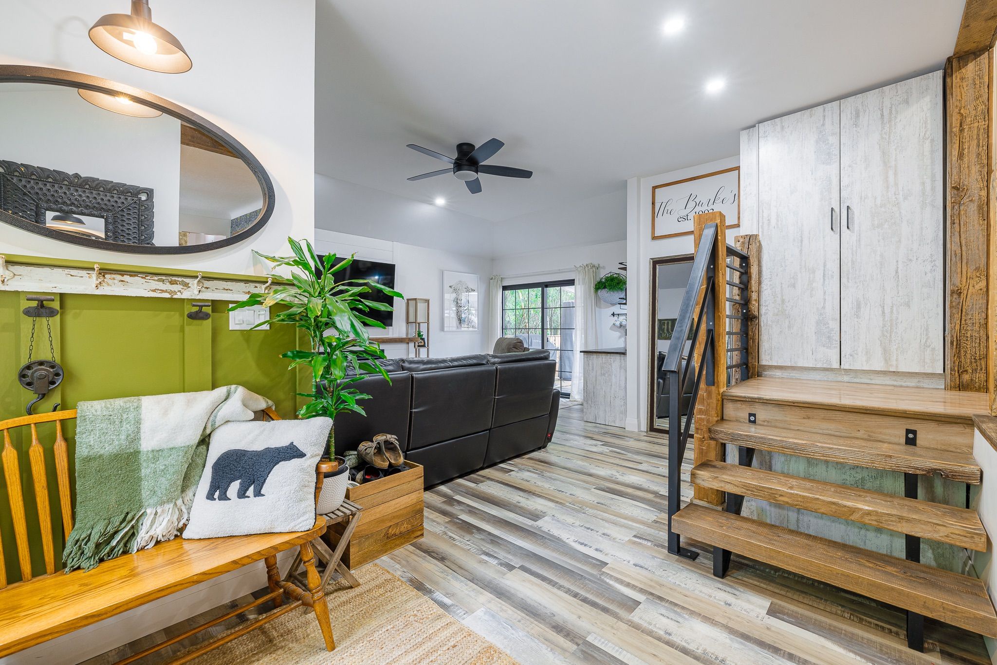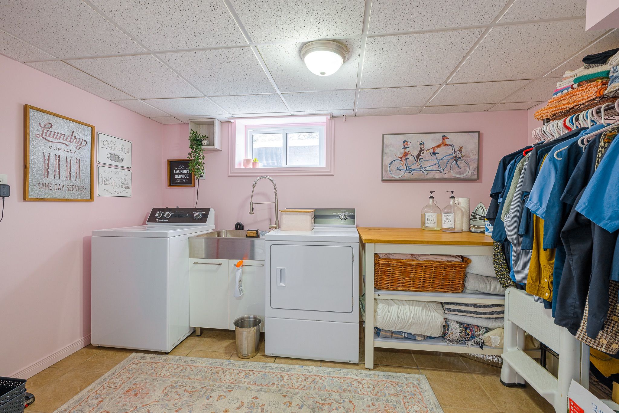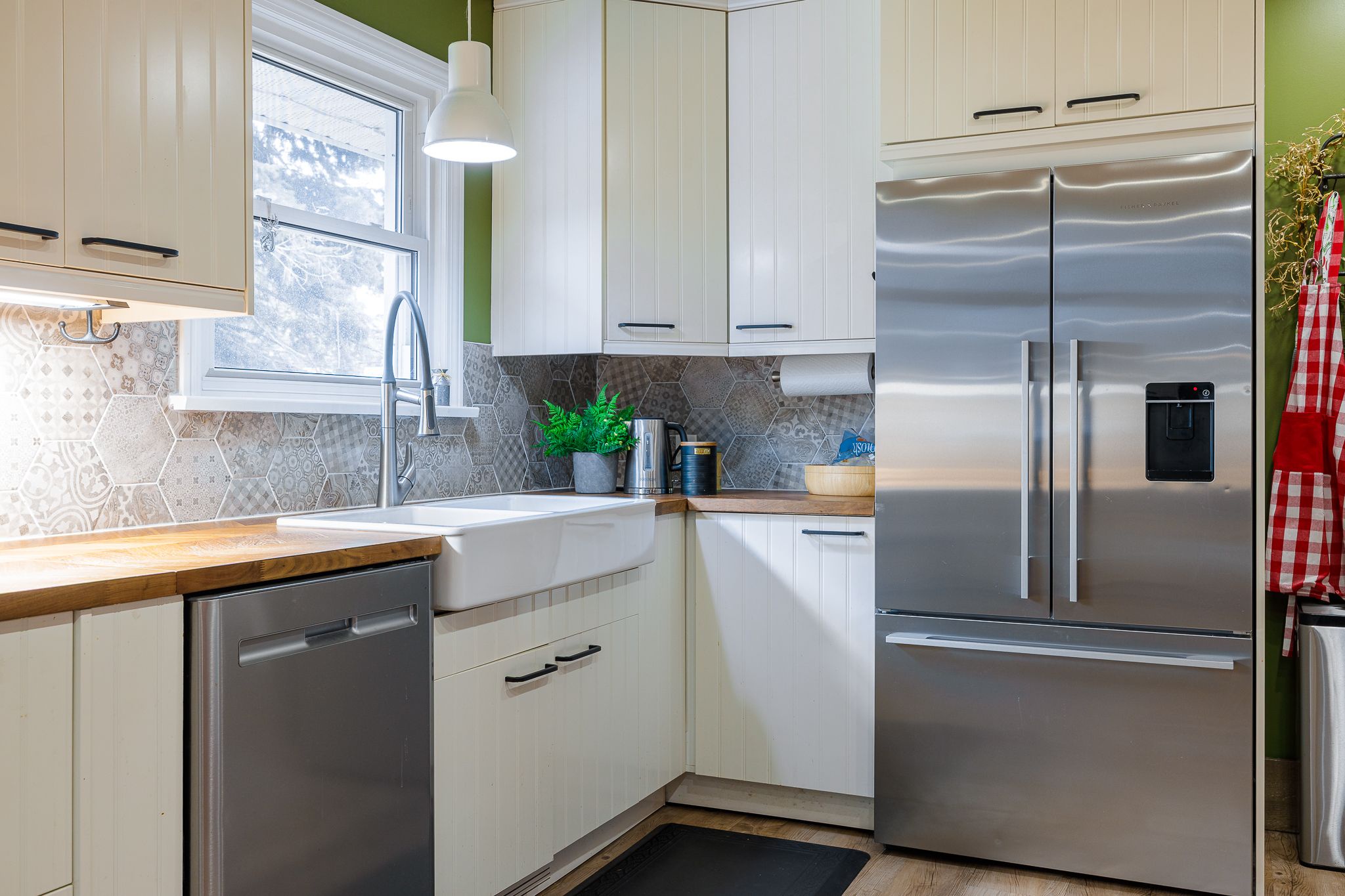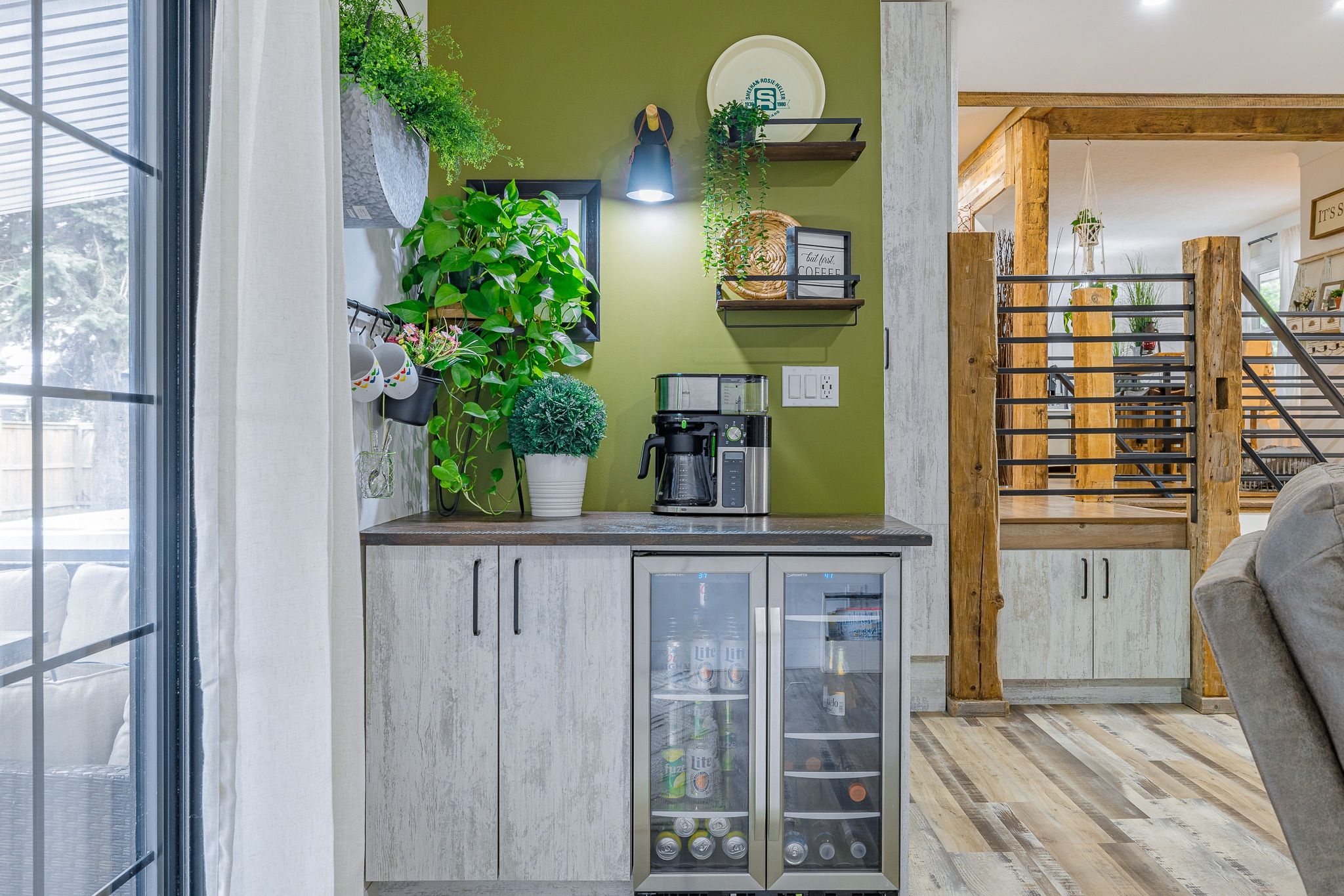 This unique corner lot bungalow, set on a charming tree-lined street, features a unique living space. The former garage has been converted into a living space featuring 13+ foot ceilings. Fully updated in 2020, this home offers a blend of comfort and style. Enjoy evenings in the hot tub or host gatherings on the private covered deck, with a spacious, fully fenced backyard. The property includes two large sheds for storage and is conveniently located near grocery stores, shopping, and outdoor activities!