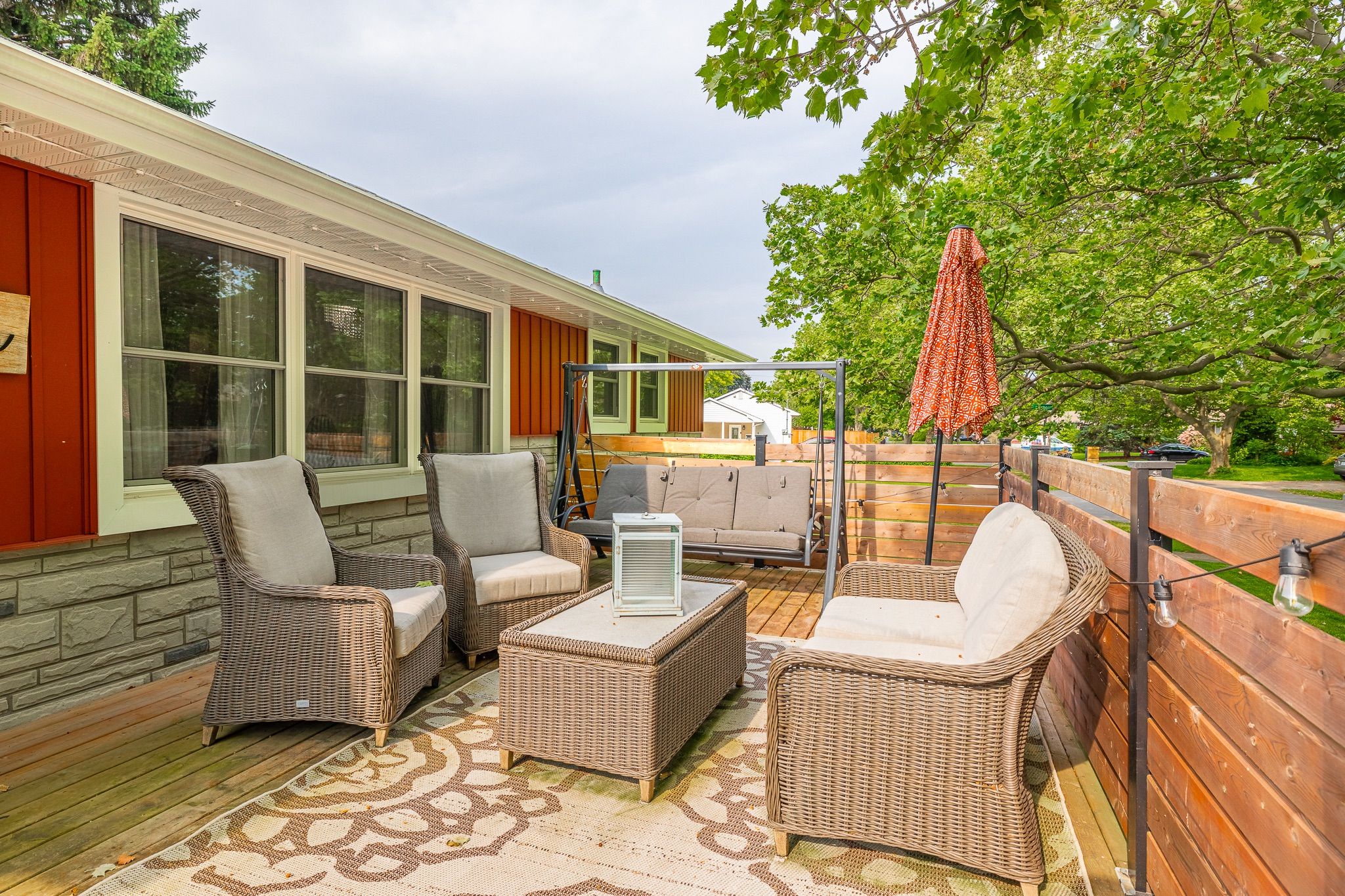 這棟獨特的轉角平房坐落於一條綠樹成蔭的迷人街道,擁有別具一格的生活空間。原車庫被改造成挑高達13英尺的起居區。2020年全面翻新的住宅完美融合了舒適與格調,您可在按摩浴缸享受夜晚時光,或在帶頂私人露台招待賓客,搭配寬敞的全圍欄後院。物業內含兩間大型儲物棚,且地理位置便利,鄰近雜貨店、購物區及戶外活動場所!