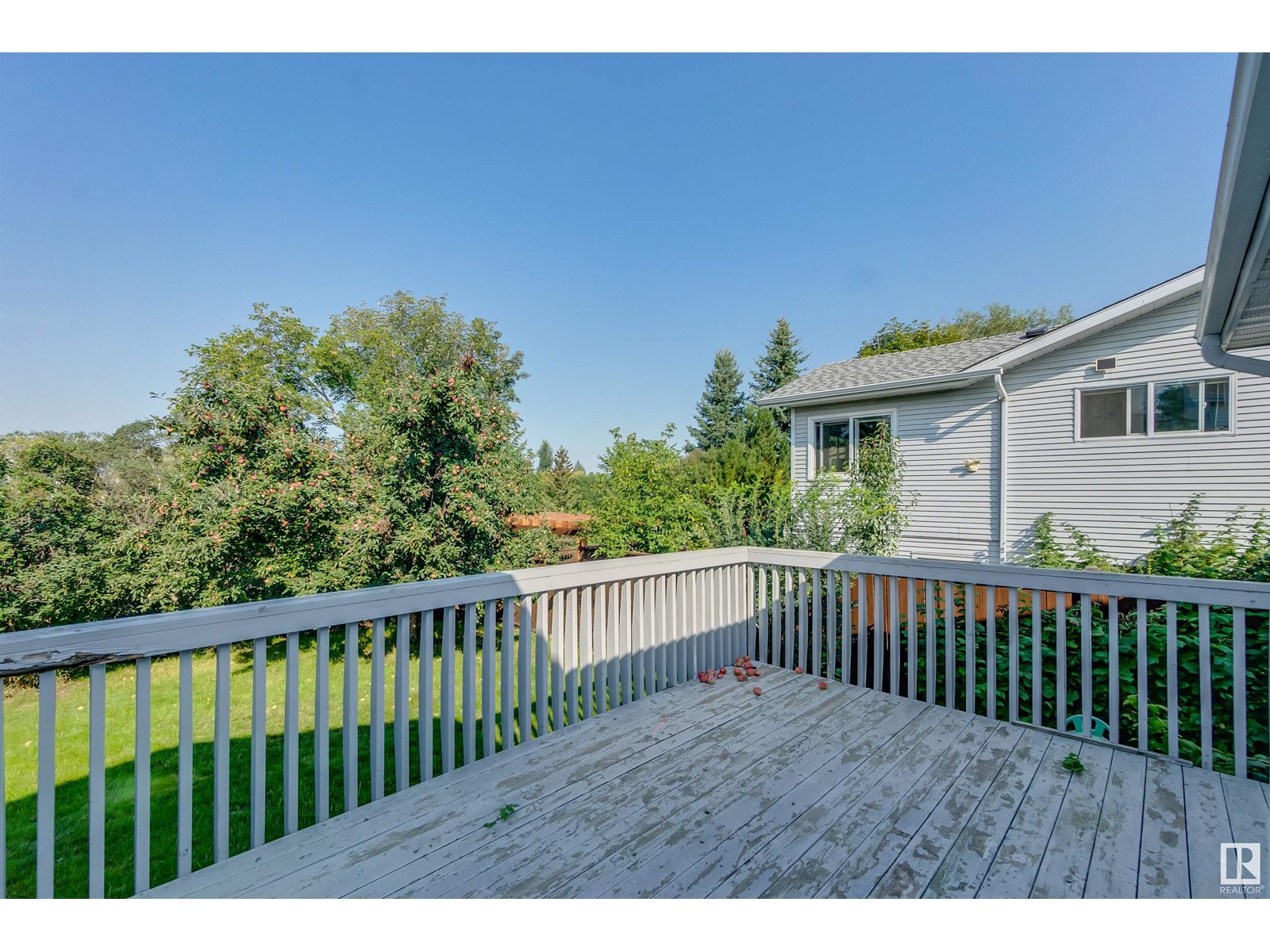 AMAZING LOCATION!!! One of the best streets in Stony Plain, this beautiful 4 level split is sure to please! Backing onto the creek, parks and Ecole Meridian Heights you'll love the privacy you have in this location! Walk through the front door to the open floor plan with large living room and a great dining room with tons of space to expand to host your family and your friends! You'll love the function in the kitchen with the island offering tons of prep space. Head upstairs to the large master bedroom with lots of room for your furniture! There's even a cheater door into the 4pc bathroom. 2nd bedroom is a great size for kids, guests or a home office. Fully finished 3rd level features a great family room space with fireplace. There's a 3rd bedroom and a 3pc bathroom complete with laundry. Basement level is unfinished and ready for whatever uses you can dream up!! The west facing back yard has a great deck, the perfect spot to enjoy a glass of wine in the evening. Lots of trees, plus easy access to trails! (id:22211)