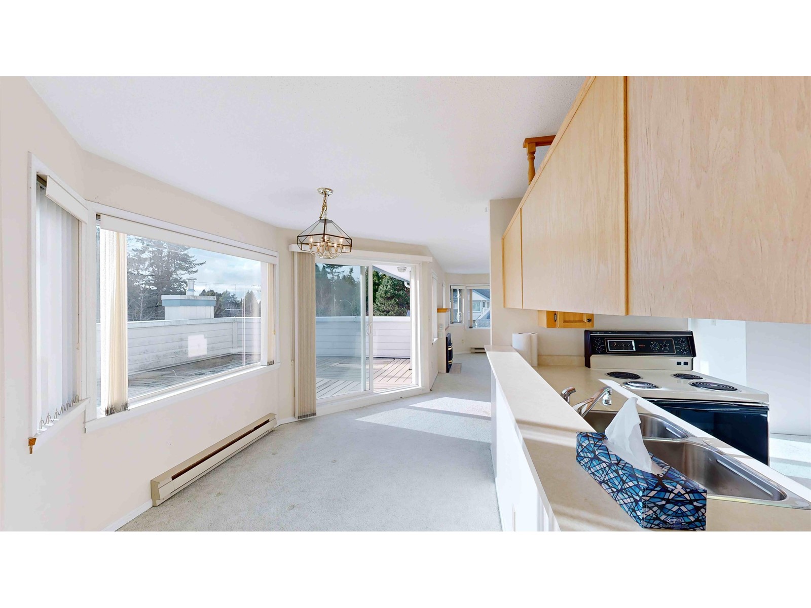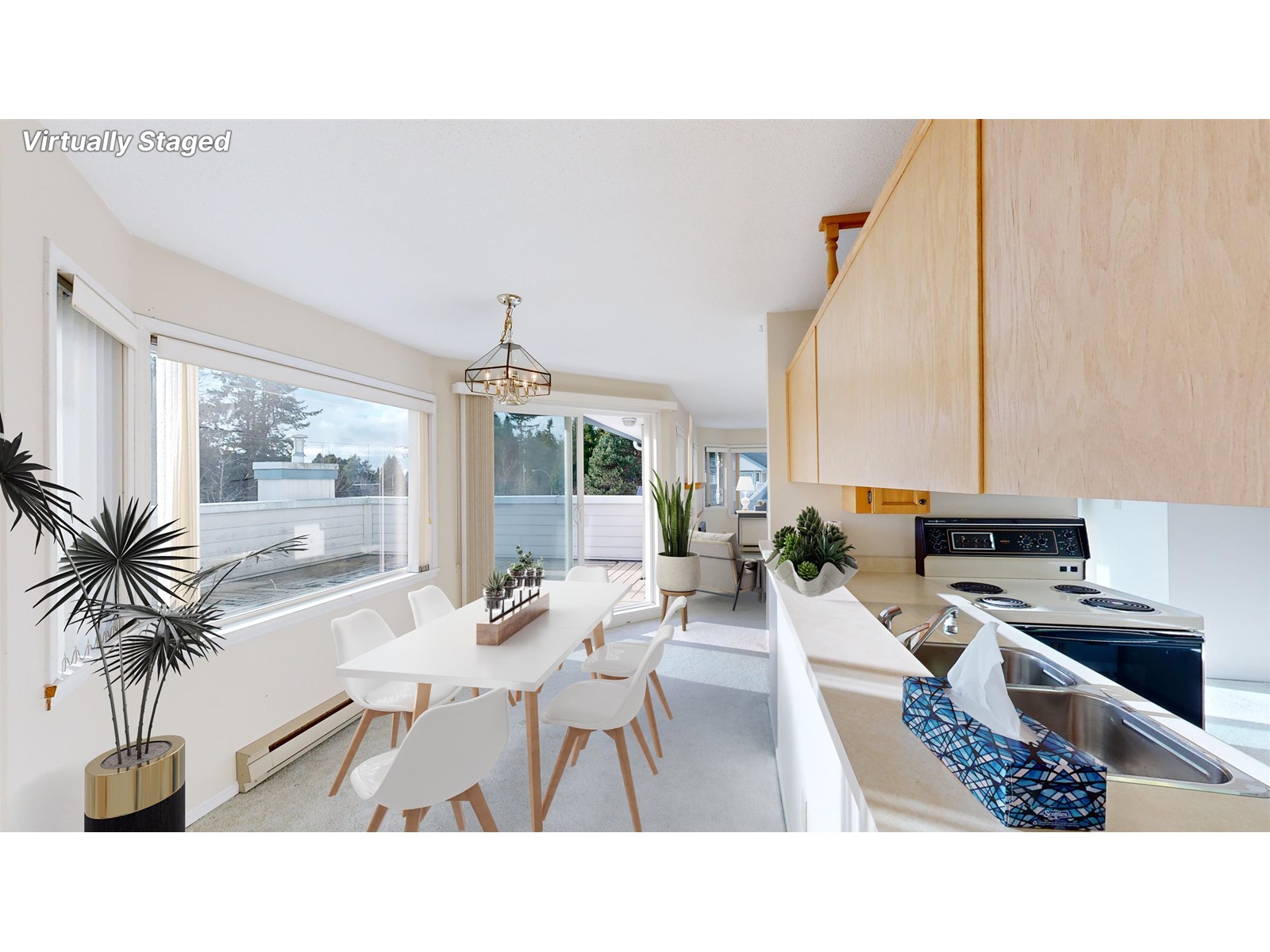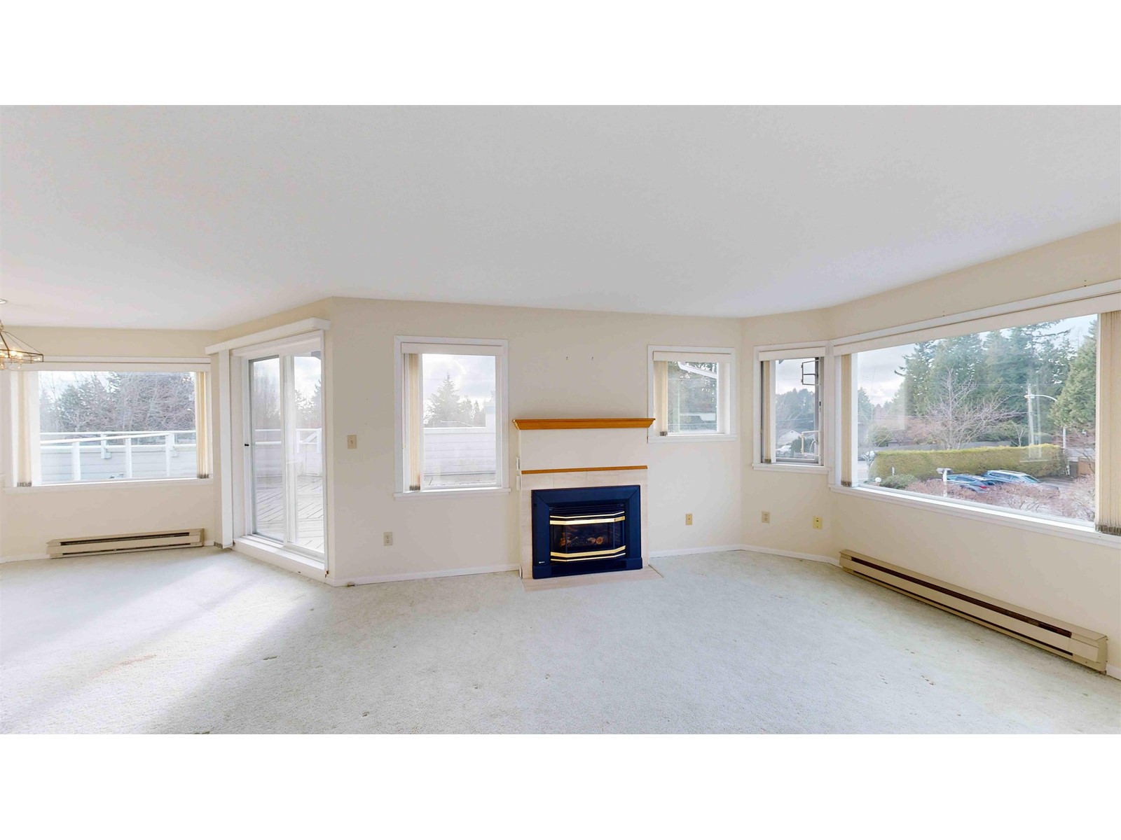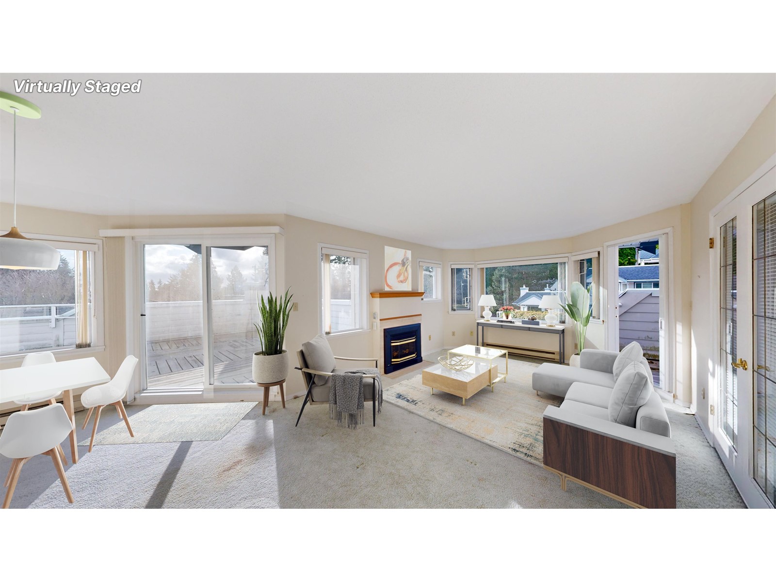 Welcome to White Rock Village! This South Facing 2 Bedroom , 2 Bathroom unit is extremely generous in natural light. Bright and Sunny South facing corner unit with LARGE sunny deck to enjoy! Lots of large windows, open and spacious floor plan. Natural gas fireplace. Entire Strata has replaced with new doors, new windows, new roof, new Hardi-Board siding, and more! 1 Secure garage parking, 1 Storage locker. Fantastic location 5 minute drive to White Rock Beach, 10 minute drive to Crescent Beach. Transit on street out front. Ocean park and White Rock Central minutes away and available for all your restaurant and grocery needs! **This Building is 55+** Note** 2nd Bedroom has no closet. Pictures with furniture have been Virtually Staged.** (id:22211)