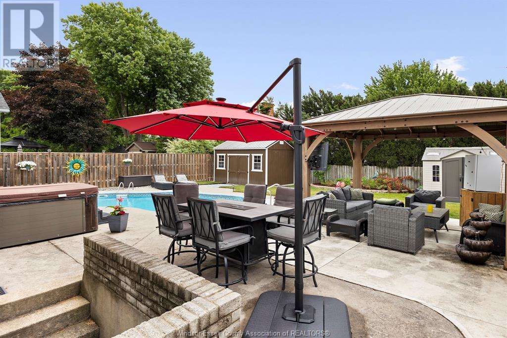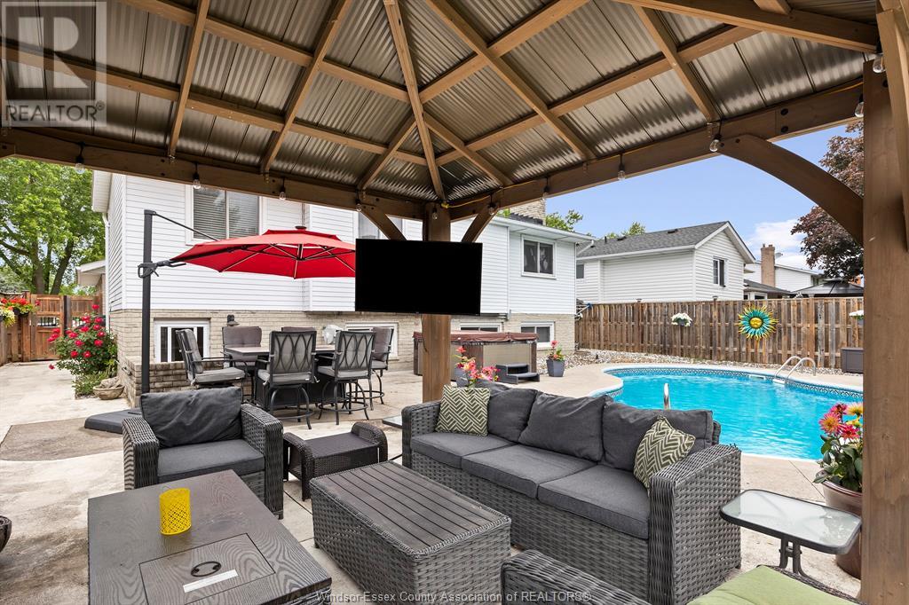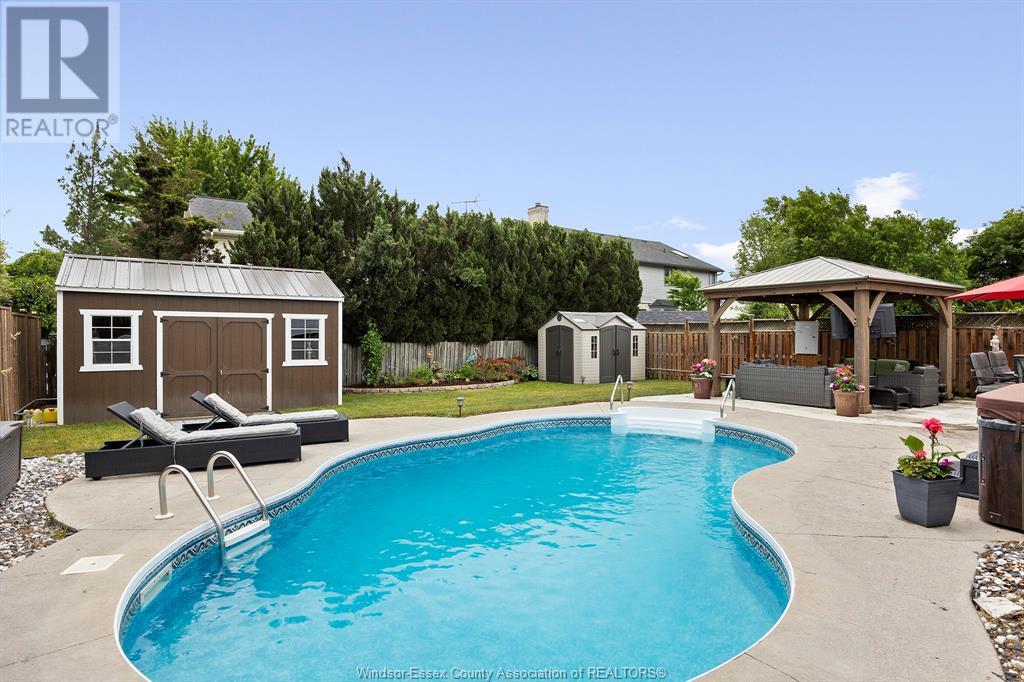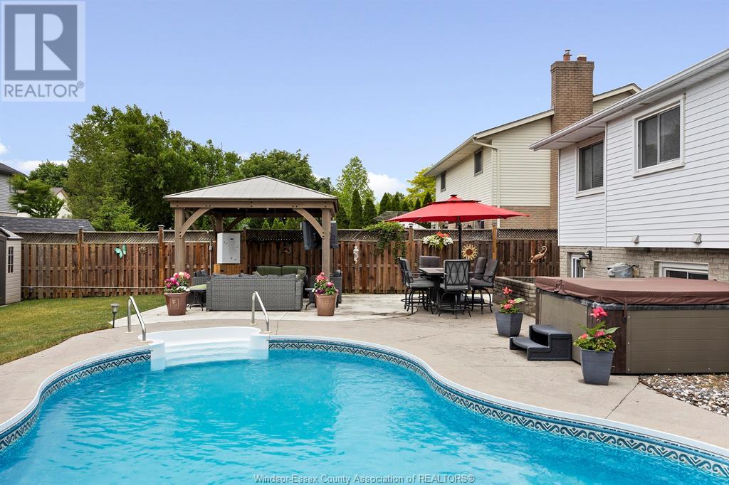 Stunning 4-level home located in Tecumseh awaits you! This spacious gem features 3 bedrooms and 2.5 baths, perfect for comfortable living. Step inside to discover a delightful open-concept floor plan, creating a seamless flow between the living spaces. The kitchen has been tastefully updated, boasting modern appliances and sleek finishes, making it a dream for any aspiring chef. Convenience is key with an attached garage, providing shelter for your vehicle and extra storage space. But the true highlight of this property lies in the rear yard, designed for entertaining and relaxation. A fenced area ensures privacy while enjoying the inground pool, where you can cool off on hot summer days. A gazebo (including electrical access) offers a shaded retreat and a patio provides a charming space for outdoor dining or lounging. Additionally a large storage shed w/electrical allows for easy organization of your outdoor essentials, in ground sprinkler and more. (id:22211)