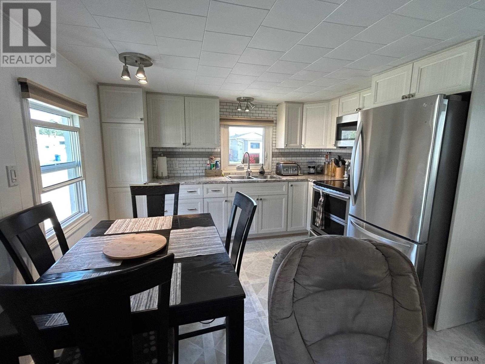 Well maintained, updated 4 bedroom mobile home. Backing onto woods and trails, this 1040 sqft mobile home has had many upgrades over the years. Kitchen, roof, furnace, siding and more. Bright, open main living area. Large front entry porch. Generous size bath with laundry. 14 x 14 wired shop at rear with a second shed to store the seasonal gear. Parking for 2, green house inc. (id:22211)