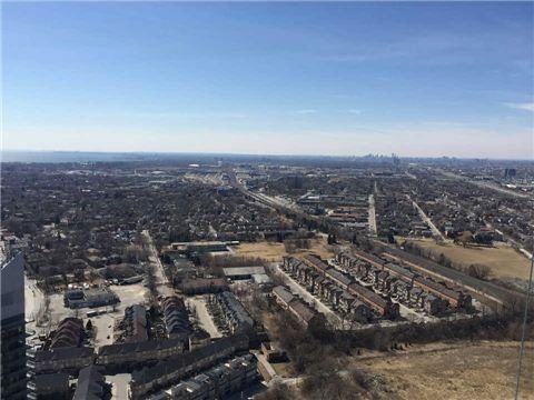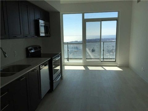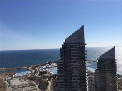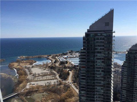 Bright 1 Br Unit On 44th Floor @Westlake Condos! 513 Sq Ft With Clear City & Lake View! Open Concept Kitchen W Quartz Counters! High Ceiling! Floor To Ceiling Windows! Laminate Floors Throughout! Access To 24 Hr Metro, Shoppers Drug Mart & Starbuck! Td Bank, Scotia Bank, Restaurants Are All At Base Of The Building In Westlake Village! Steps To Ttc, Lake, Close To Highways (Qew & 427), Ontario Place, Downtown And Both Airports! Excellent Amenities!