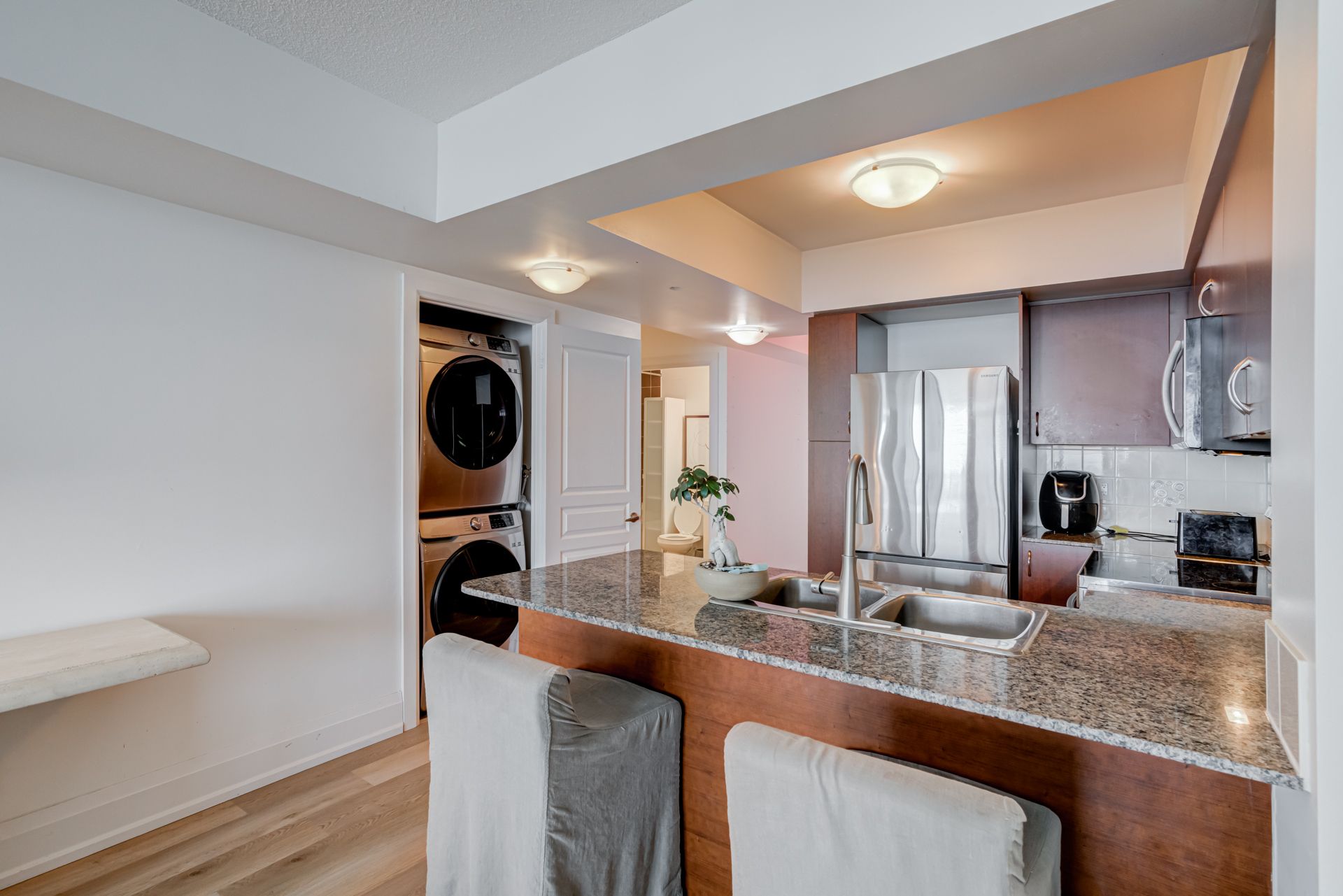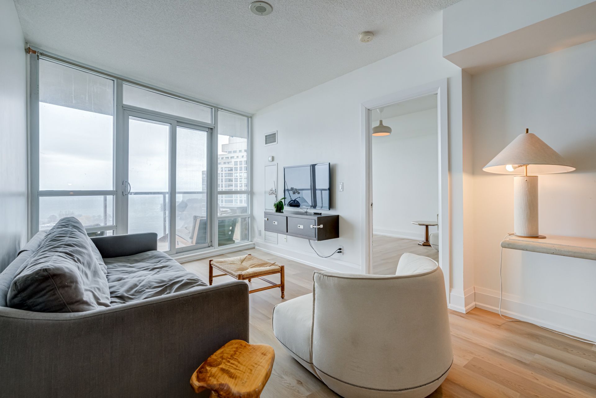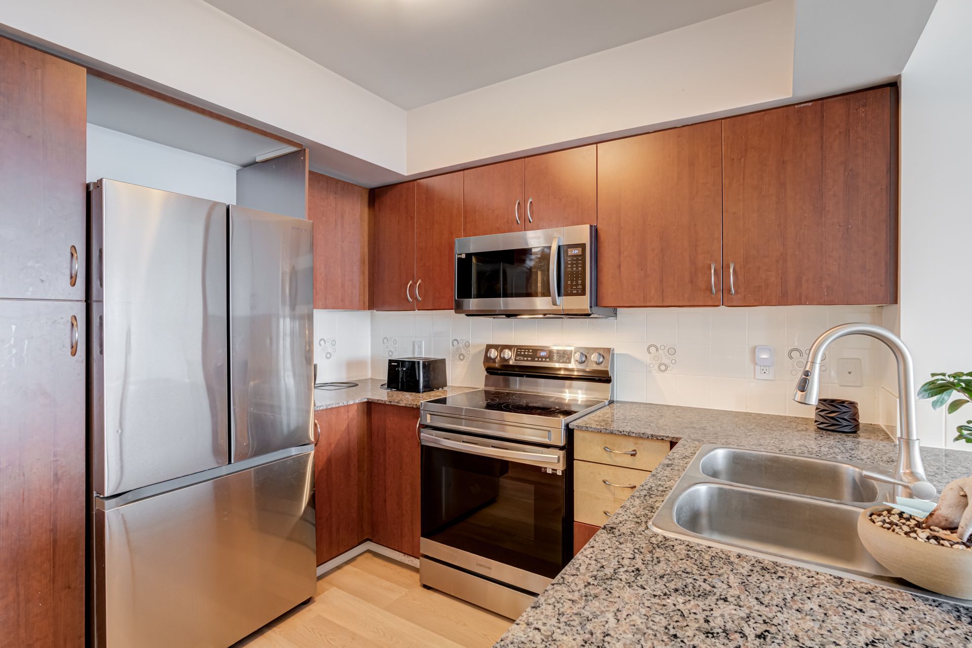 Bright & Spacious 1+Den Condo With 1 Bath In A Highly Sought-After Location! Functional Layout With Open Concept Living/Dining Area & Floor-To-Ceiling Windows Offering Breathtaking Views. Walk Out To A Beautiful Balcony With Gorgeous Lake & Sky Line Views- Perfect For Morning Coffee Or Evening Sunsets. Spacious Kitchen With 1 Year Old Stainless Steel Appliances & Ample Cabinet Space. Custom California Closets In Principle Bedroom & Front Hall. Large Den Perfect For Home Office Or Guest Space. Conveniently Located Steps To Transit, Shops, Restaurants, & The Waterfront. Enjoy Urban Living At Its Finest! Landlord Will Replace Damaged Kitchen Drawer Fronts.