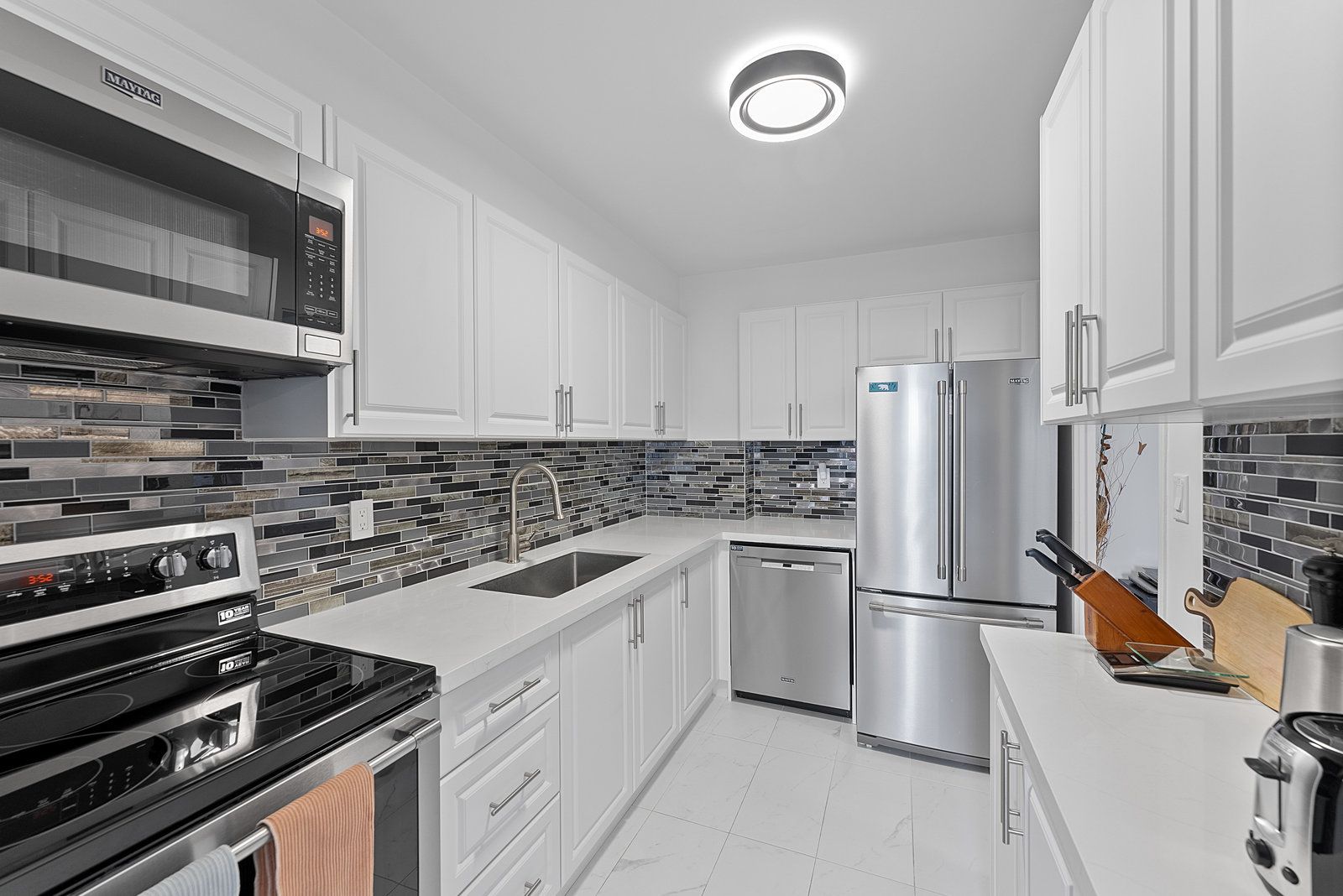 Welcome to this stunning, FULLY renovated 2-bedroom + den condo at 3 Massey Square! This bright and spacious unit includes an enclosed balcony that doubles as a solarium, perfect for relaxing or entertaining. The modern kitchen boasts sleek stainless steel appliances, and a stylish backsplash. Designed with ample storage in mind, the condo includes large closets throughtout and a spacious in-unit locker. Enjoy the convenience of ensuite laundry, making day-to-day chores effortless. The den adds flexibility to the layout and can be used as a home office or a dedicated dining room to suit any lifestyle. Outdated AC window unit has been removed for a cleaner, modern look. A convenient wall plug-in AC unit is now used, and with all utilities included in the maintenance fees, you can enjoy worry-free comfort without concern for energy usage! An exclusive Parking spot is available for rent with the building. The building is equipped with premium amenities including a huge private Recreation Centre with a gym, indoor swimming pool, sauna, tennis, squash and basketball courts, and 24-hour security service. This condo is situated just steps from schools, daycare, clinics, Victoria Park Subway Station, parks, shopping plazas, grocery stores, pharmacies, libraries, and more, this location offers unmatched accessibility. Only 20 minutes from downtown Toronto don't miss this incredible opportunity! LINK to Condo Amenities : https://www.crescenttownclub.com/facilities