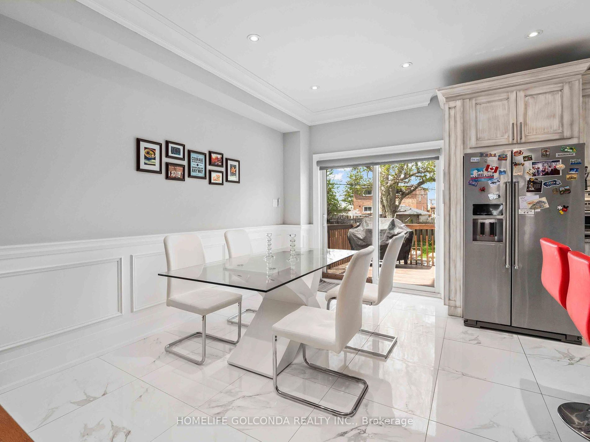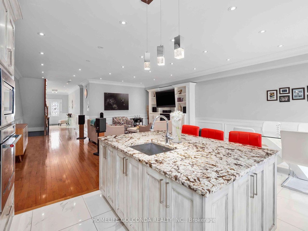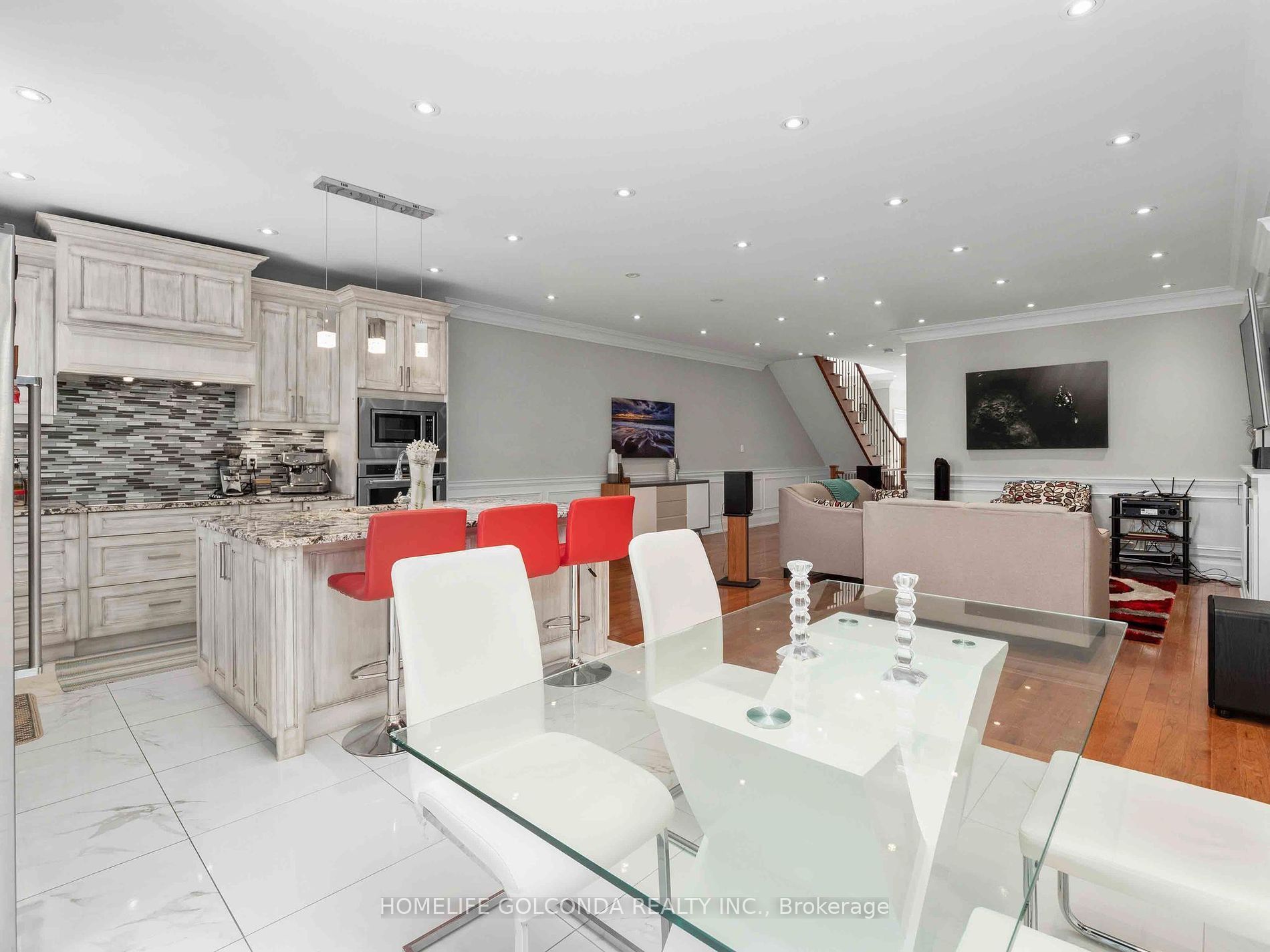 Welcome Custom Built-Home Stunning Superior Craftmanship and Quality Finishes Throughout. 2 Storey, 9 ft. Ceiling Over 3000Sq.Ft living space as per layout, Family Residence in BirchClift Community. Modern Bright Skylight over Iron Pickets Staircase, Cozy open concept Living/Family Room W/Gas Fireplace, B/I Entertaining Wall unit looking to Modern Kitchen, Highend Cabinet with Granite Counter Top and Breakfast Island, S/S Kitchen Aids B/I appliances. Under Cabinet Lighting. Master Bedroom with B/I Closet With High-end Finish Vanity/Wainscoting, Plaster Molding, Skylight Spa Jacuzzi, and frameless Shower Bath Ensuite. Professional Finished 2 Bedrooms Wider Walk-up Finished Basement W 4pc Bath, R/I Kitchen (possible Inlaw Basement Apartment), Nice Deck with Interlocking Patio Backyard So Convenient to Toronto Financial District Easy Access to Subways, TTC, Schools, 24Hrs TTC, Library, Shopping. Buyer to verify all information and Measurements/Taxes...Jacuzzi, Cvac System, 200Amp Electrical Panel, Lots Of Pot Lights,Central Ac, Kitchen Aid S/S Appliances. Samsung Washer & Dryer. Cook Top Oven, Hot Water Tank Own, Gas Fireplace. Big Wide Walk Up Basement, Shed. Garage Door Opener