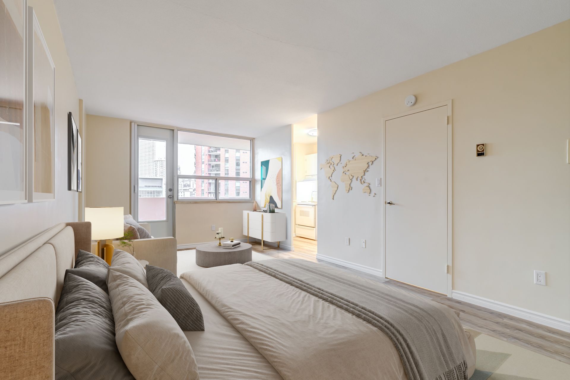 歡迎來到位於40 Homewood Ave #1011,這是一個絕佳的機會,以40萬美元不到的價格擁有一個可愛的單身公寓,位置優越! 交通便利,靠近眾多理想的地點:曆史悠久的Cabbagetown社區、Yonge & College、Church & Wellesley、Toronto Metropolitan University等。步行至U of T、Eaton Centre和Yonge & Dundas Square。 方便抵達TTC(靠近College路面電車,步行一段路程即可到達College地鐵站)。 該公寓已重新粉刷,並配有新的乙烯基地板、獨立的廚房、可通往擁有城市景觀的巨大西向陽台,以及完整的四件式浴室。 擁有大量的儲物空間,包括兩個大型衣櫃,外加一個儲物櫃。 管理費包括所有水電費,大樓提供充足的優質設施:禮賓服務、巨大的室內遊泳池、健身房、帶台球的派對室、會議室、帶燒烤設施的戶外露台、圖書館、洗衣房、客房套房和訪客停車場。 可以從管理處租用地下停車位,每月100美元(詳情請谘詢經紀人)。 戶型圖已附上。 公寓是未裝修的(部分照片中添加了虛擬裝修)。