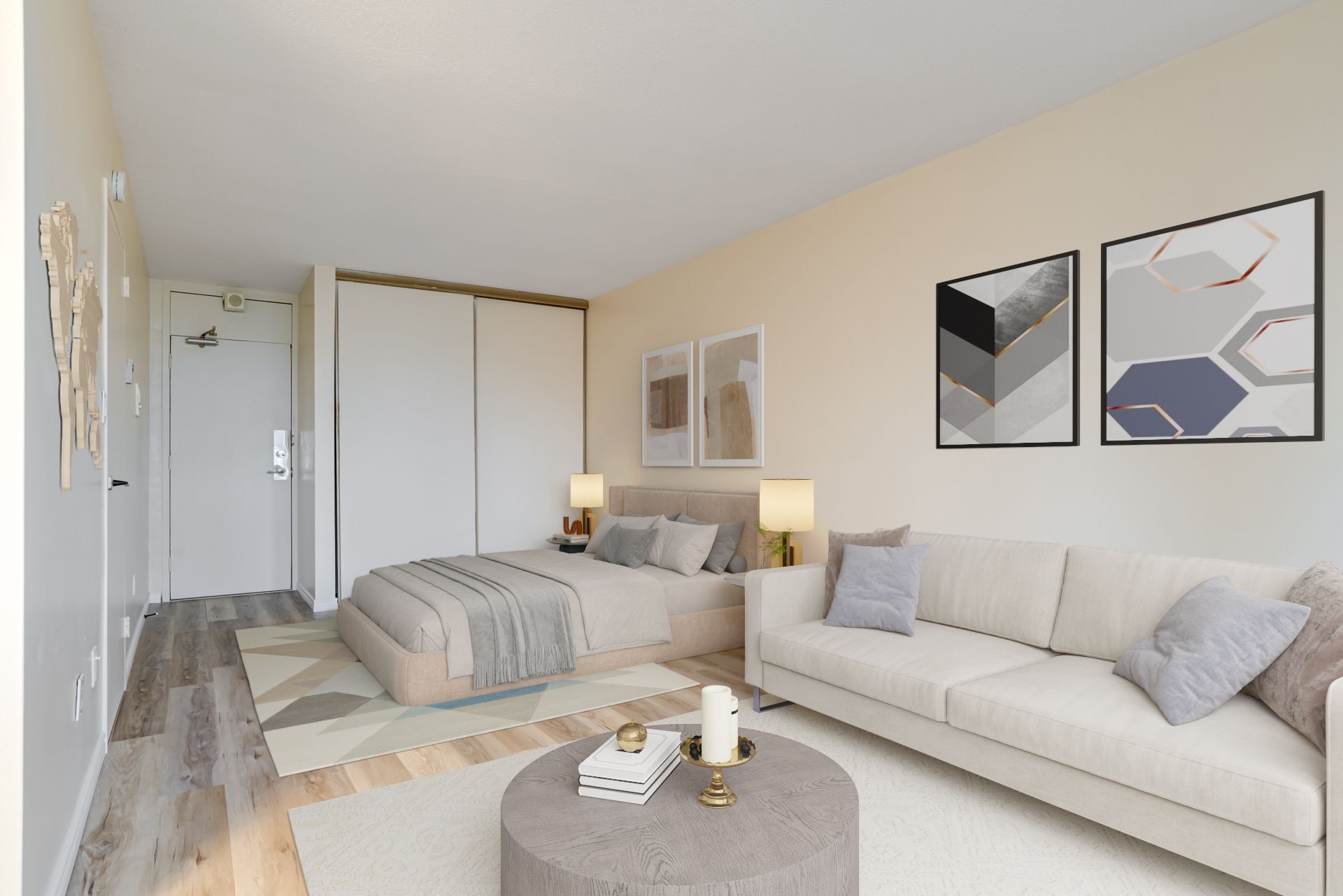 Welcome to #1011 at 40 Homewood Ave, an excellent opportunity to own a cute studio condo in a great location for less than $400K! Situated conveniently close to a number of desirable spots: historic Cabbagetown neighbourhood, Yonge & College, Church & Wellesley, Toronto Metropolitan University, and more. Stroll to U of T, Eaton Centre, and Yonge & Dundas Square. Easy access to TTC (just steps to the College streetcar and a short walk to the College subway station). The unit has been freshly painted and features new vinyl flooring, separate kitchen, walkout to huge west-facing balcony with city views, and full 4-piece bath. Enjoy oodles of storage, with two large closets PLUS a locker. Maintenance fees include all utilities and the building offers plenty of excellent amenities: concierge, huge indoor pool, gym, party room with billiards, meeting room, outdoor terrace with BBQ's, library, laundry room, guest suites, and visitor parking. Potential to rent an underground parking spot from management for $100 per month (speak to listing agent for details). Floor plan is attached. Unit is unfurnished (virtual staging has been added to some of the photos).