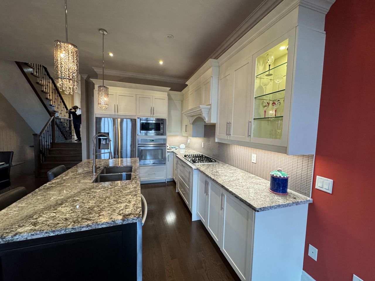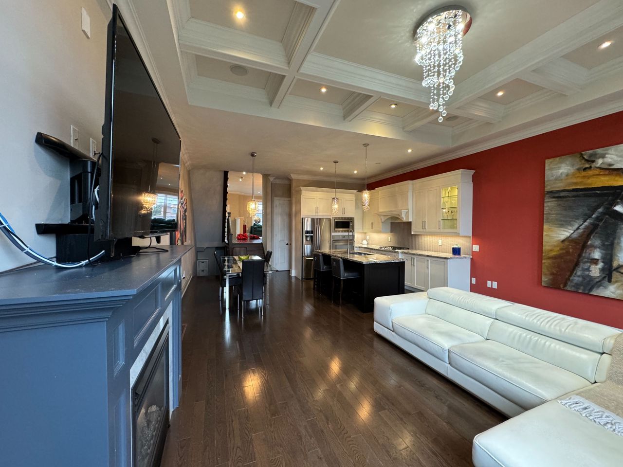Custom home, on a large lot situated on a dead-end street (quiet living, low traffic for children). Open concept on the main makes for an open, airy feel. Soaring 11.5 foot coffered ceilings in family room (built-in speakers). Family room (& master) face west for tons of natural light - sundrenched afternoons and sunset views from your deck. Chef's kitchen with 10 feet ceilings, large island and clean modern finishes. Master bedroom has 9-foot ceilings, with a 5 p censuite and a walk-in closet. House has been meticulously maintained. Restaurants/shops and library and the TTC bus/streetcar at the corner. GO station, Hwys, Park, trails, downtown all close by.Basement is fully finished with separate entrance. Has afull kitchen with stainless steel appliances and granite countertops (and a bathroom). Use the space to entertain, make it a CEO's office with all the amenities, Or a nanny suite