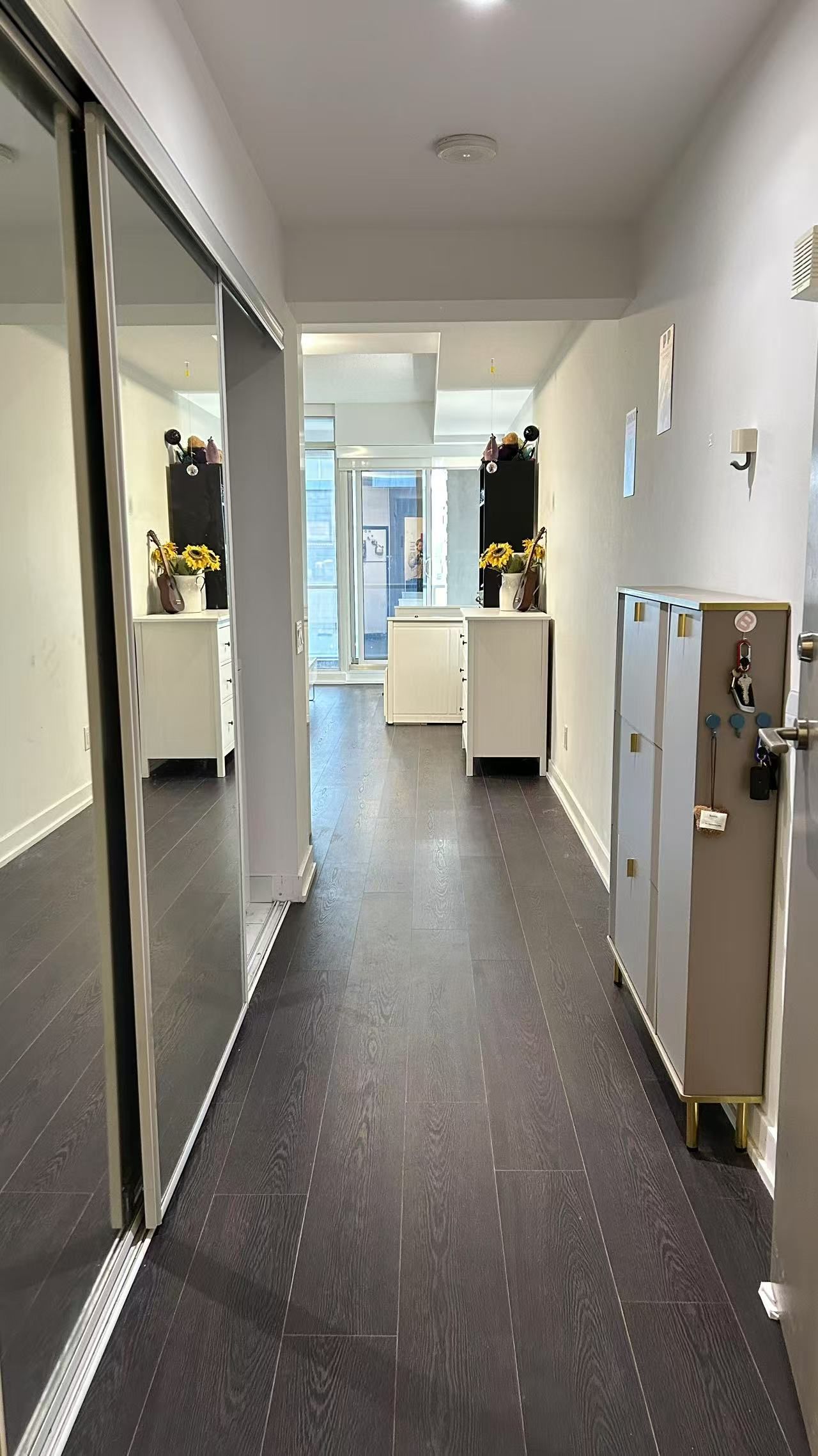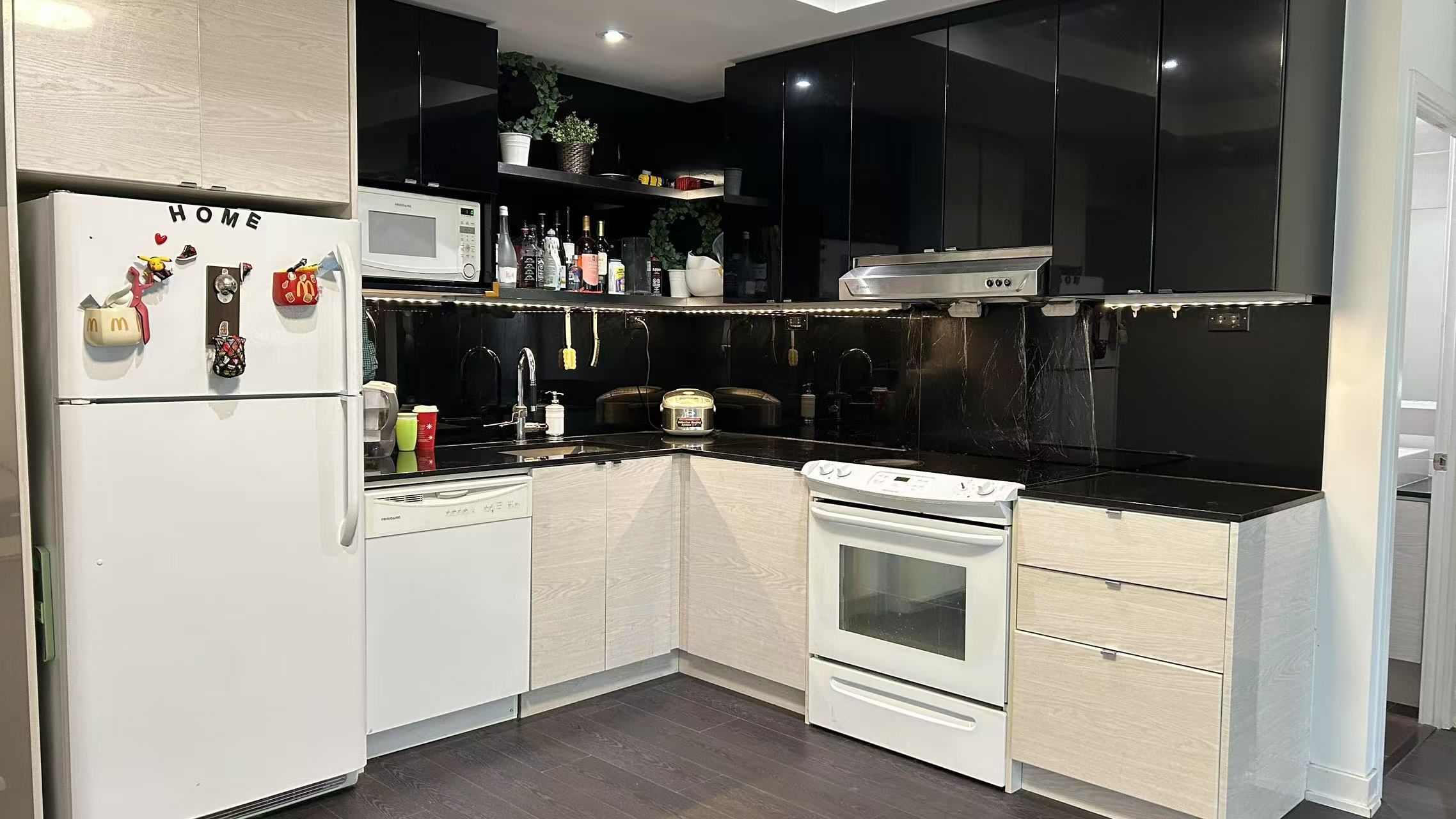 Live Large at Tango 2: Spacious 1-Bedroom + Huge Terrace! This exceptional one-bedroom condo offers a rare combination of generous interior space (675 sq ft) and a sprawling 183 sq ft private terrace an entertainer's dream! Located in the desirable Tango 2, this unique layout provides valuable extra square footage instead of a less functional den. The modern L-shaped kitchen is a chef's delight with granite countertops, a sleek backsplash, undermount lighting, and soft-close cabinets. Enjoy the elegance of 9-foot ceilings and the bright, energy-efficient LED pot lights. Benefit from two large closets, highly desirable tandem parking, and a convenient locker. Situated in a prime location near Leslie Subway Station, this unit offers both tranquility and urban convenience. Flexible closing terms are available. This outstanding property won't last long schedule your showing today!
